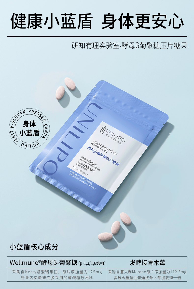 【经典版酵母β葡聚糖】 适合多种人群!丨UNILIPO研知有理小蓝盾酵母β-葡聚糖咀嚼片