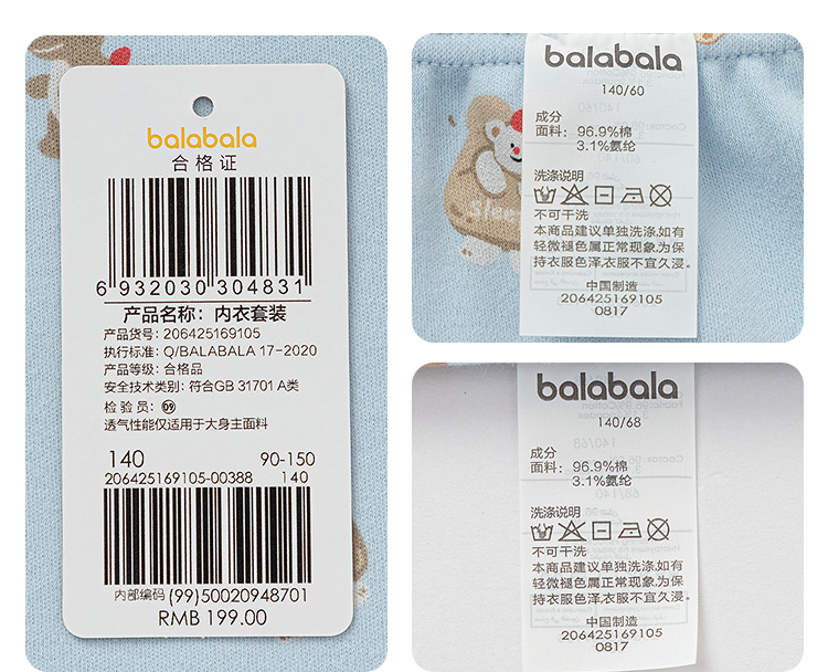 巴拉巴拉男童内衣套装儿童2件套新款童装2025冬保暖