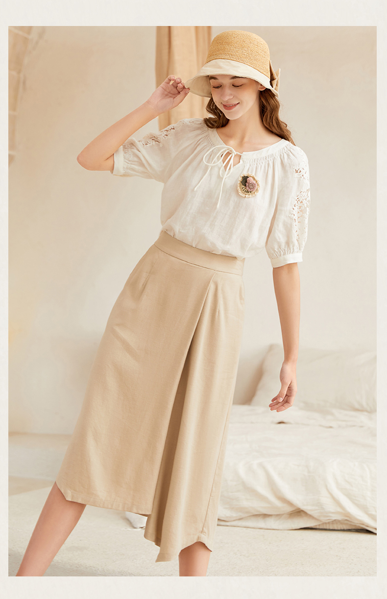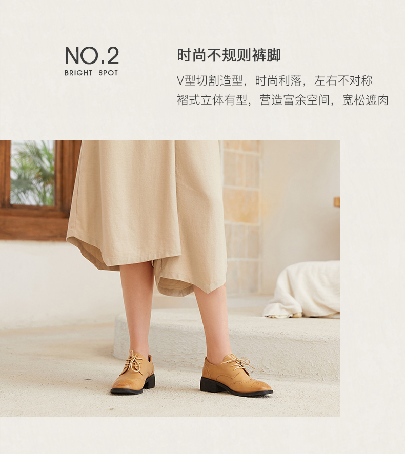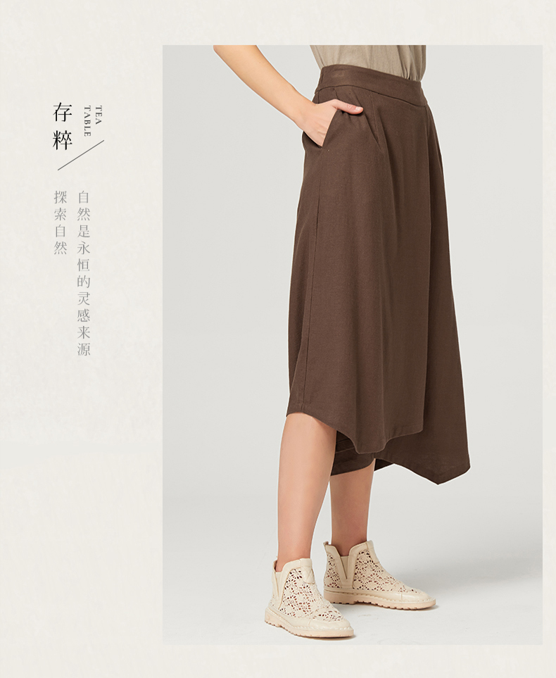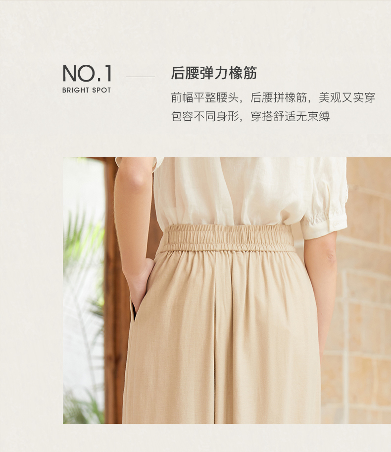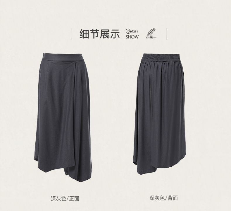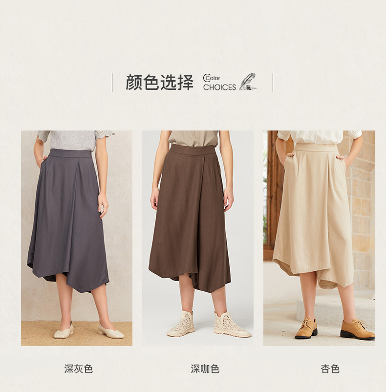 Famecoco范可儿慵懒风裤裙夏季女新款弹力松紧阔腿裤不规则F223GE002