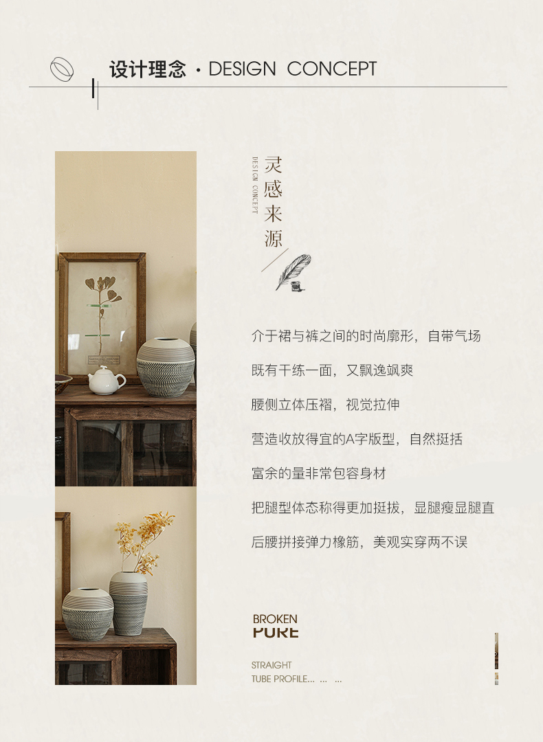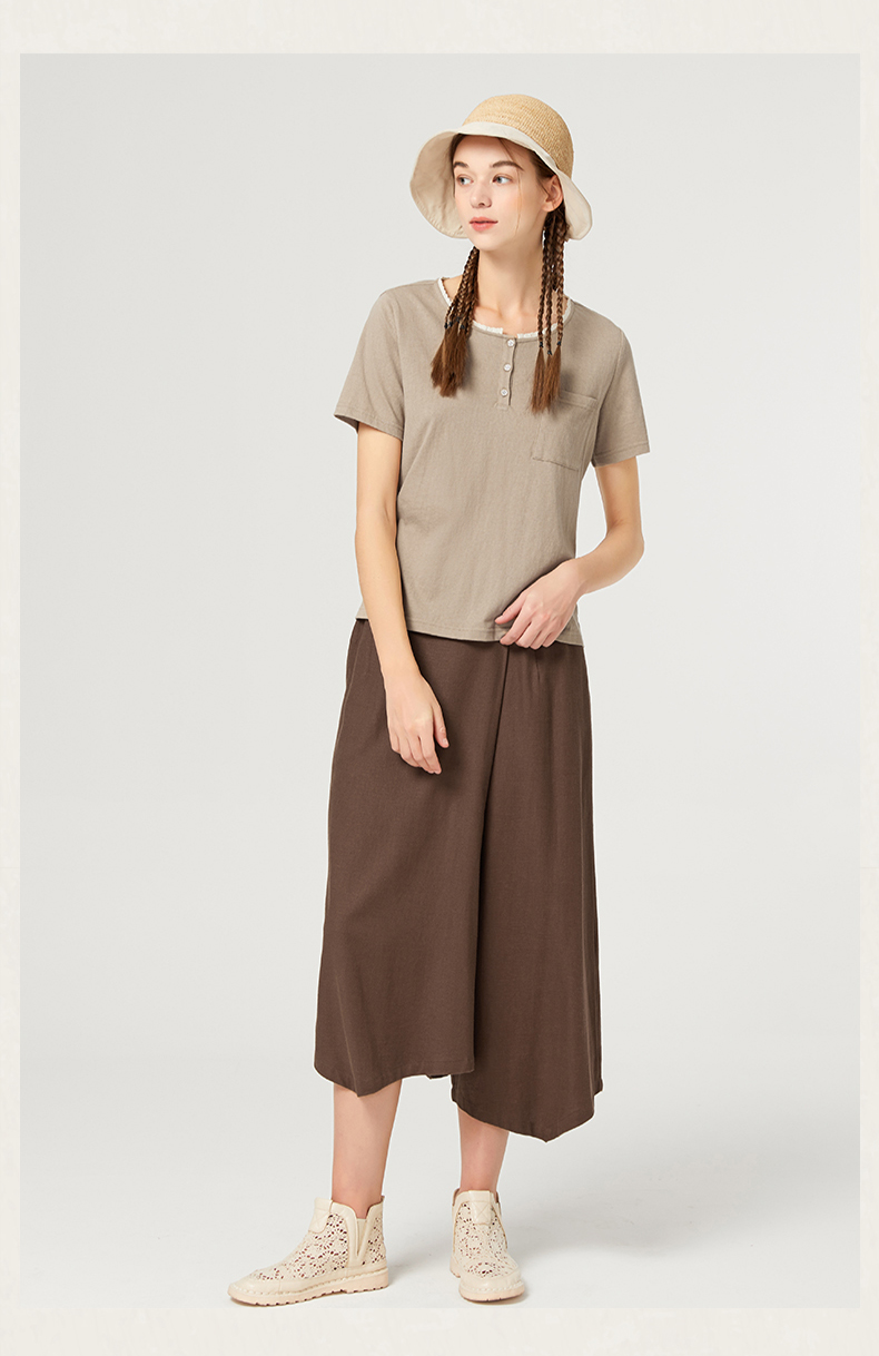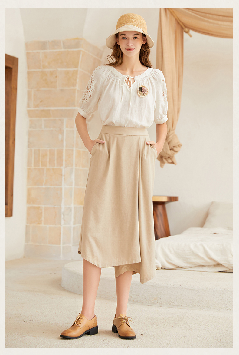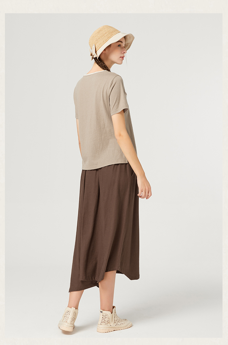 Famecoco范可儿慵懒风裤裙夏季女新款弹力松紧阔腿裤不规则F223GE002