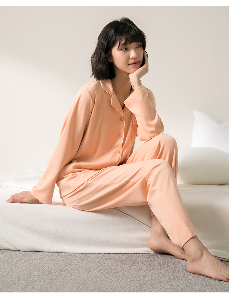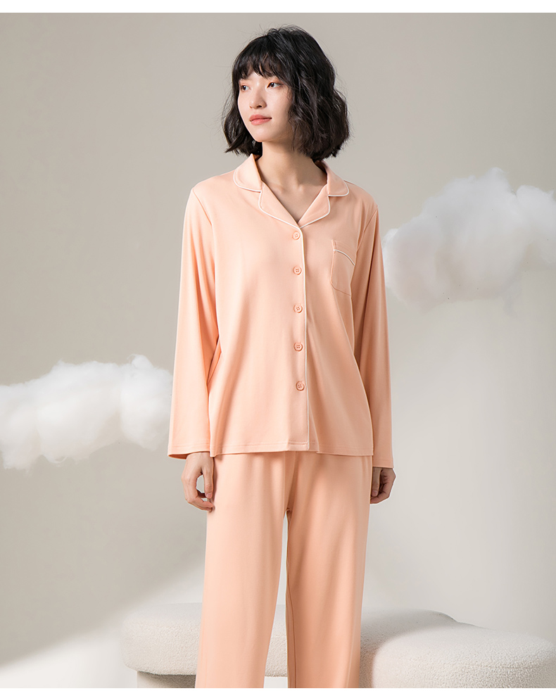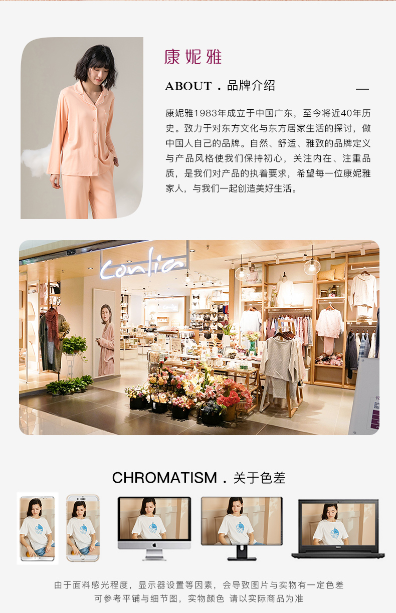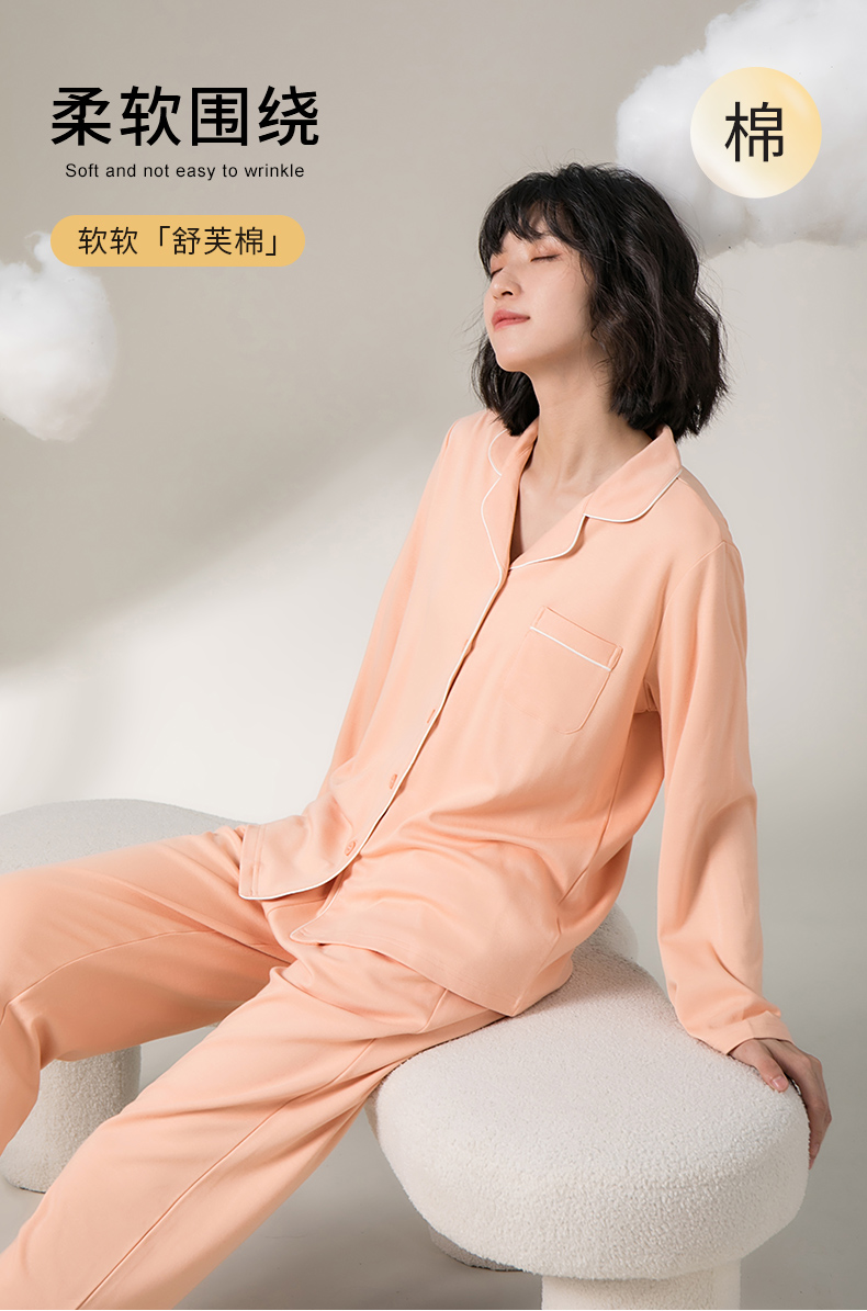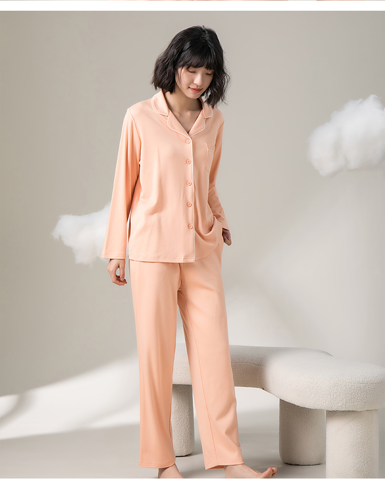【门店同款】康妮雅睡衣家居服 女式长袖长裤开襟套装