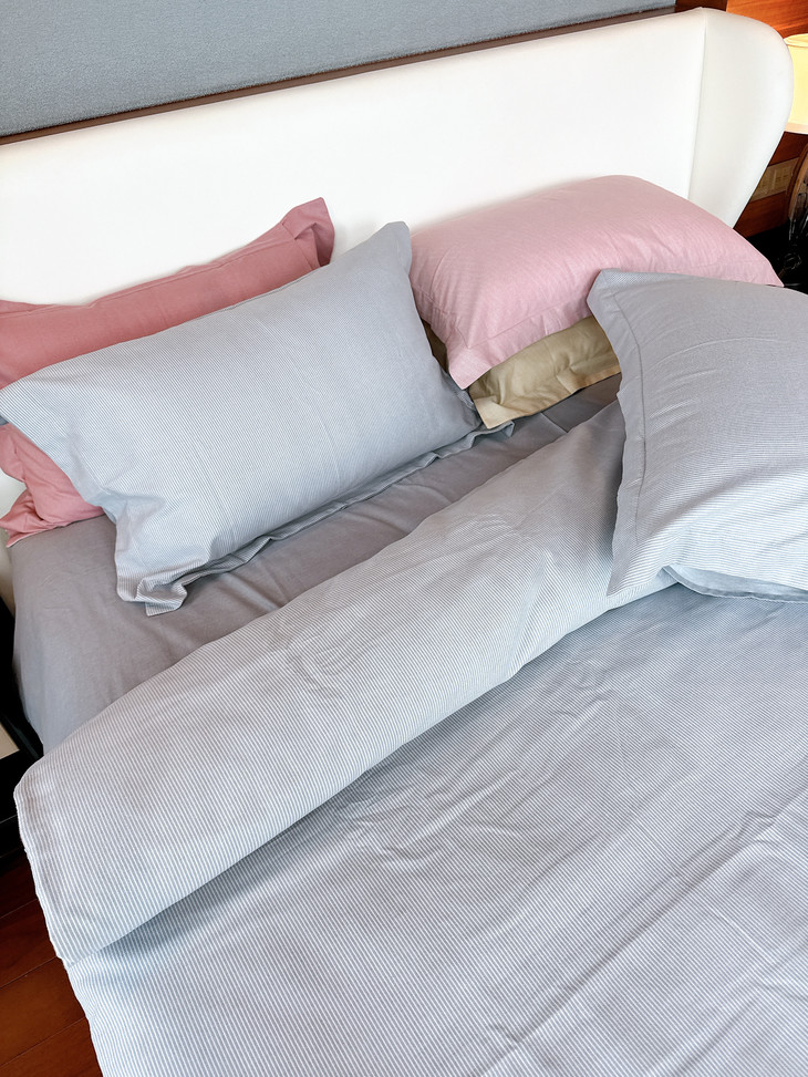 「灰色|烟灰色的静谧诗行」 是侘寂风的高级注脚,浅灰如雾霭漫过床沿,织就极简美学的静谧篇章 磨毛绒面泛着低调的高级光泽,铺展时像给卧室蒙上一层 “温柔的雾纱” 躺卧间尽是松弛的奢适,连思绪都在此处慢下来。