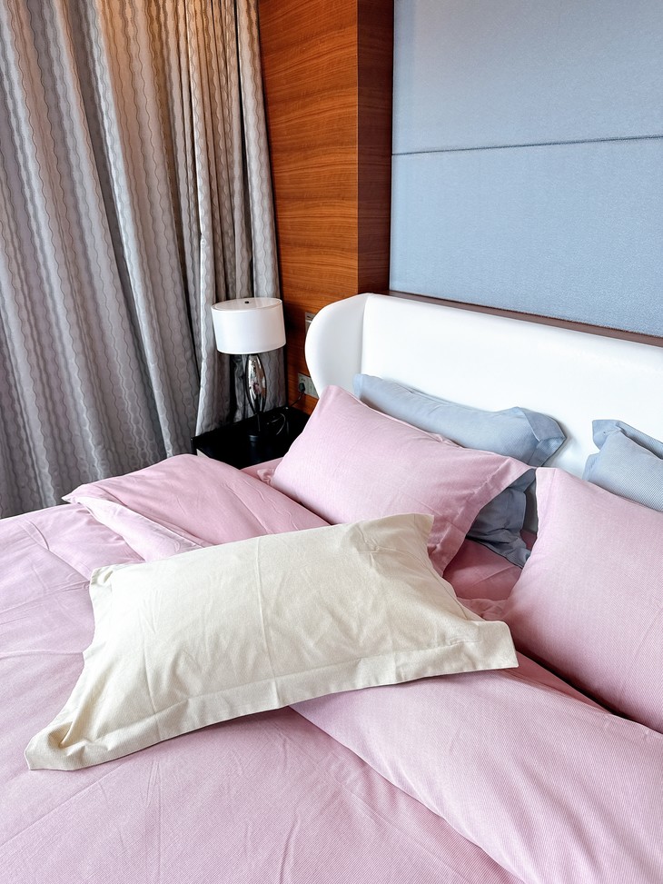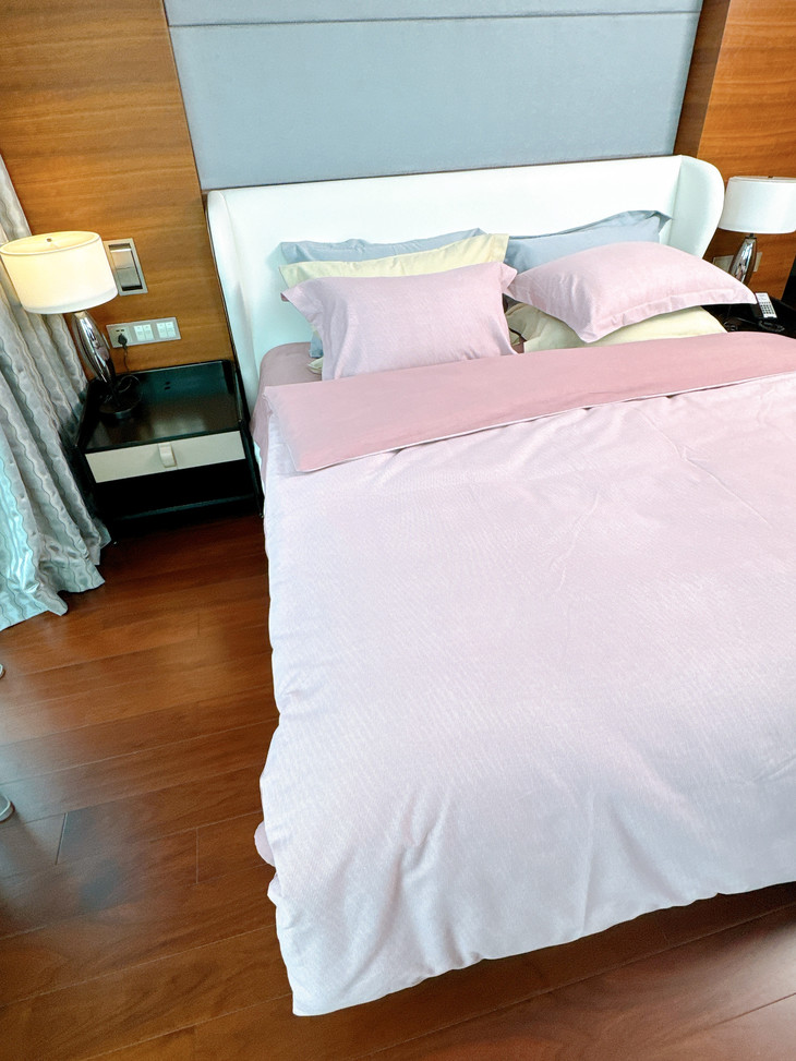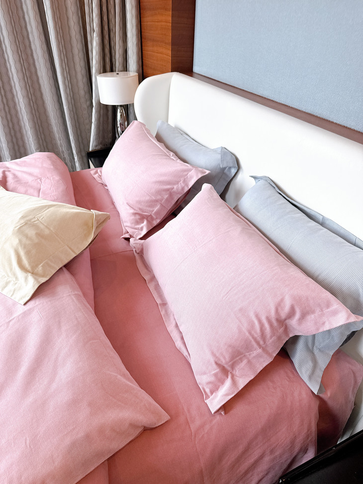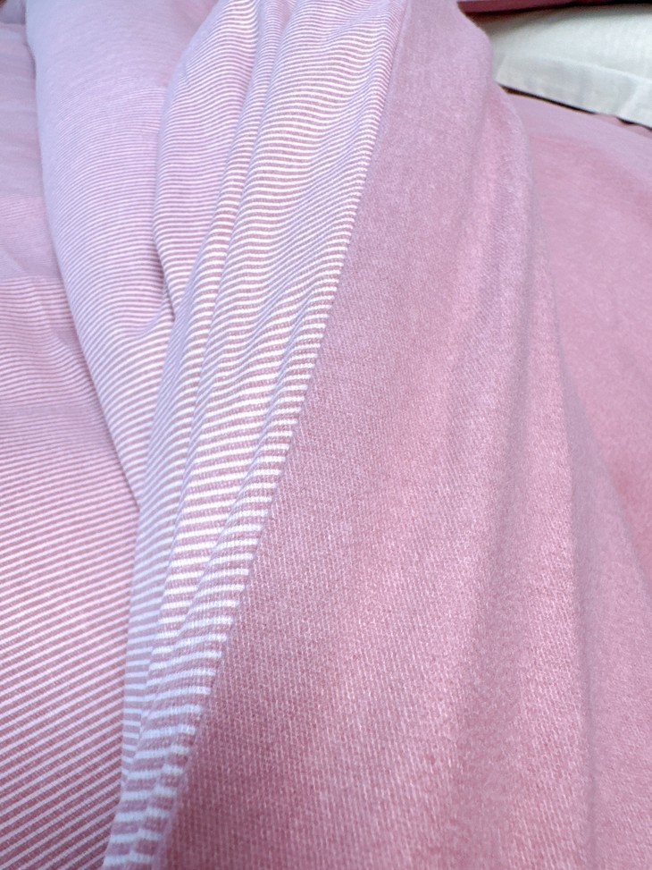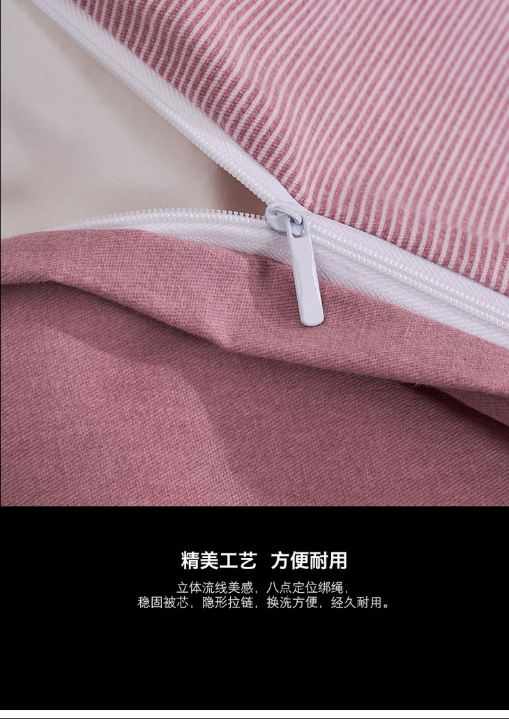 AB 版配色:一套解锁双重美学 配色设计更见高端家纺的巧思:采用仅见于奢品的 AB 版双面美学 —— 譬如正面是温柔的粉调条纹 翻折过来便是醇厚的深粉柔绒,花一套的钱,恰似拥有两套床品的浪漫。 想换风格时,只需轻轻翻面,卧室瞬间切换氛围,灵活适配不同心情 更有北欧风经典条纹点缀,简约线条里透着不彰自显的高级感,铺在床上便如给卧室镀了层雅致滤镜,格调瞬间拉满。