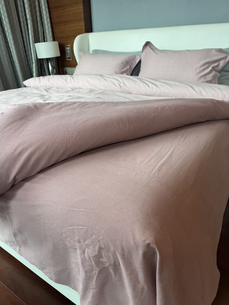 云绒纤维:藏于柔暖下的 “强韧风骨” 这抹暖而轻的云绒,非但没有 “娇弱质感”,反而天生带着超越棉纤维的强韧基因 —— 当它与经向长绒棉交织时,经纬线如精密咬合的匠心锁扣,织就了一层隐形的 “耐用结界”,让四件套的抗撕裂力、抗磨损性双双跃级 日常与床垫日夜摩擦,不见纤维勾丝起球; 经洗衣机反复翻滚洗护,织物肌理依旧完整如新,从无破洞、脱线的尴尬 就连收纳时也尽显 “省心本色”,无需费心熨烫打理,哪怕叠放数月,床单、被套展开的瞬间仍是平整挺括,不见半点顽固压痕,省去频繁整理的繁琐,让每一次使用都能直接享受到 “开箱即新” 的奢适,彻底告别 “好看不耐用” 的家居遗憾。
