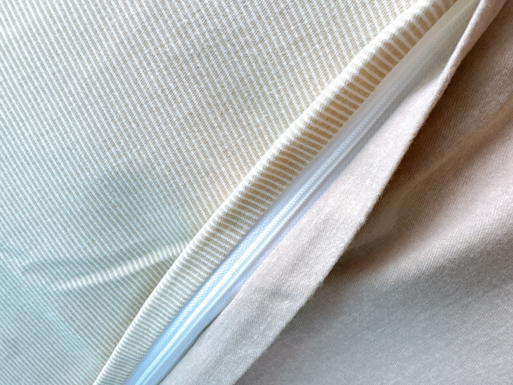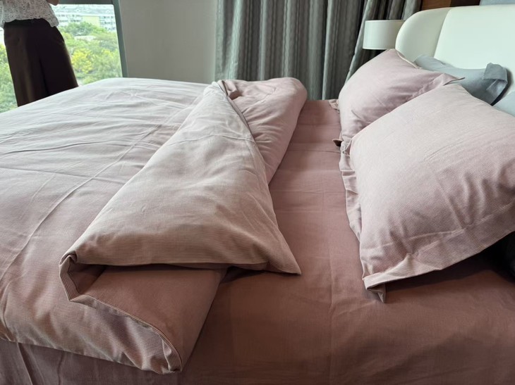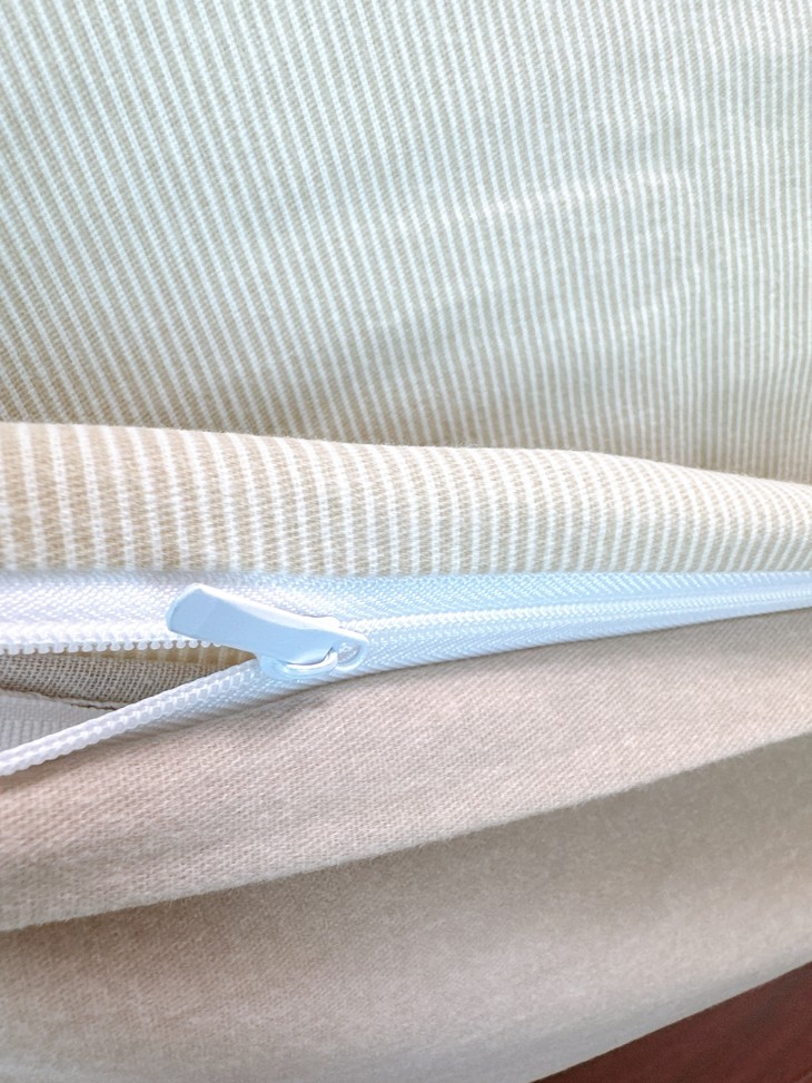 从细节到美学,每处设计都是奢适的私语 被尾拉链:告别 “与被芯较劲” 的窘迫 普通四件套 20cm 短拉链,套被芯时总需反复拉扯、费劲填塞,还易错位跑偏 而这款直接以 “被尾全幅拉链” 颠覆体验 —— 开口阔绰如柔缎帷幕 搭配丝滑易拉的精密链齿,无需双手腾挪,单手便能轻松将被芯妥帖归位 全程不见半点拉扯的狼狈,把 “套被芯” 从繁琐家务变成指尖的轻闲小事。