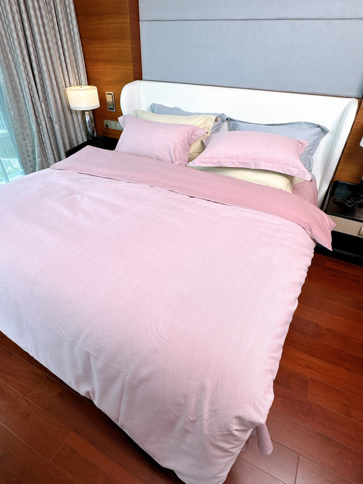 新疆长绒棉的天然纤维肌理间,藏着如蜂巢般细密却通畅的呼吸孔 —— 再配上经向高密织法勾勒出的规整透气脉络,仿佛给床品开了无数个 “隐形换气窗”,空气流通间满是自然清爽 夜里即便身染薄汗,纤维也会像温柔的海绵般将汗液悄悄吸纳,再顺着透气脉络缓缓散向空气里,绝不会像普通棉那样闷出黏腻的贴身感 就连梅雨季的潮湿水汽,也能被这层 “透气屏障” 稳稳隔绝,被窝始终保持着清润干爽的状态 它彻底打破了 “保暖必闷湿” 的家居痛点,让暖而不燥、柔而干爽的奢适体验,渗透进每一夜的睡眠里