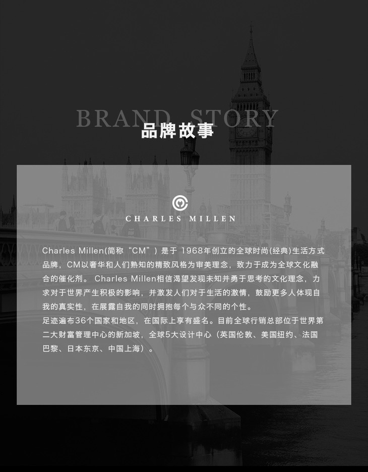 CM1968年立的全球时尚(经典)生活方式品牌,以奢华和人们熟知的精致风格为审美理念,致力于成为全球文化融合的催化剂。 足迹遍布36个国家和地区,在国际上享有盛名。 目前全球行销总部位于世界第二大财富管理中心的新加坡,全球5大设计中心(英国伦敦、美国约、法国巴黎、本东京、中国上海) 也是皇室御用品牌CHARLES MILLEN 查尔斯.米伦 Charles Millen 彰显了奢华生活方式的典范 从灵感和概念,到家居和生活产品的设计与呈现 Charles Millen倡导精致品味、优质与高雅 每个系列,无论是奢华的床上用品,都散发出永恒的优雅!