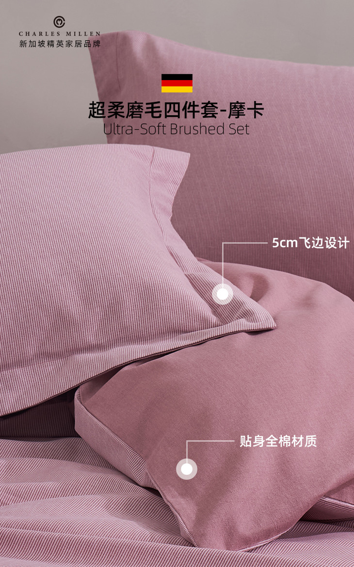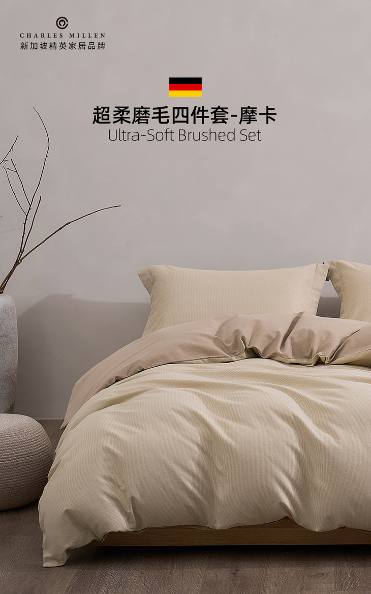 【CHARLES MILLEN 查尔斯 米伦超柔磨毛四件套】高岛屋同款・新加坡国礼品牌!✨ 🔥 专柜鎏金价 1980 元,今日奢享开团直降 !仅 199 元起入国礼级床品!