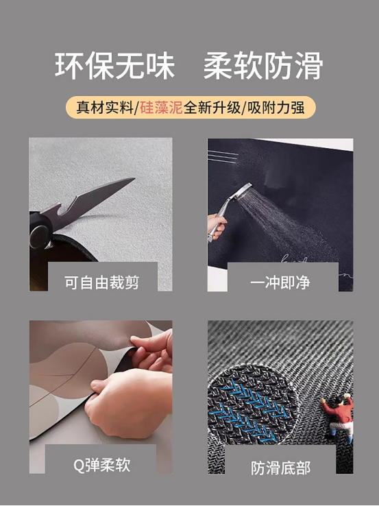 ✅吸水防滑材质,不仅环保健康,还拥有超强的吸水速干能力,让脚下的湿气瞬间消失 ✅出色的防滑性能,即使在湿滑的地面上也能稳固如初,让你安心踏步 ✅不仅美观大方,还能有效耐脏,日常清理轻松方便。 ✅无论是浴室、卫生间还是洗手台下,它都能完美契合,成为你生活中的贴心小伙伴