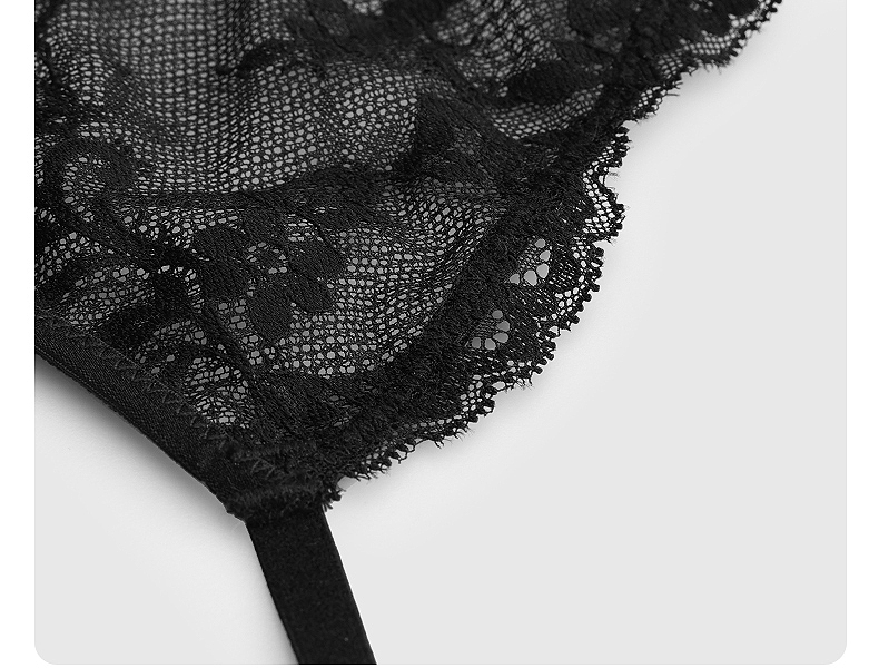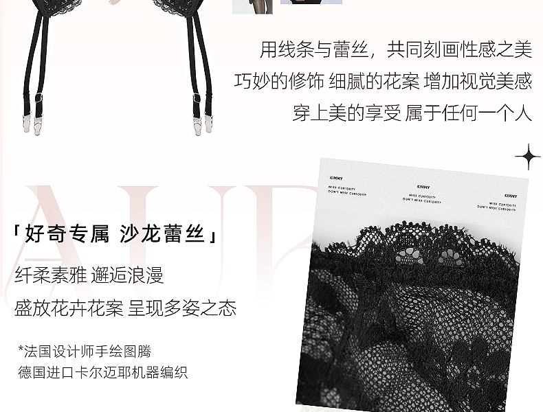 好奇蜜斯性感低腰吊袜带女透视法式超薄蕾丝简约可调节防滑扣夏 黑欧瑞