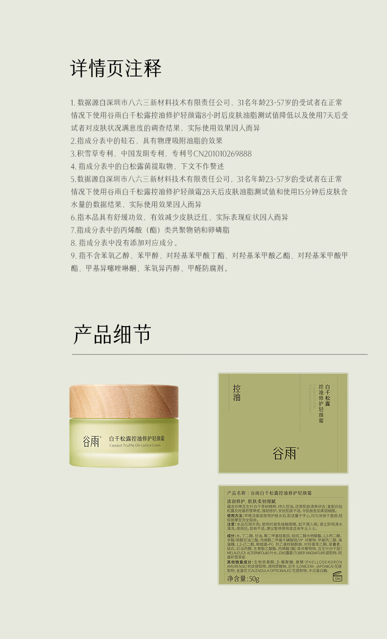谷雨-白千松露-控油修护轻颜霜50g 商品图6
