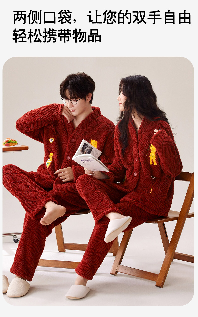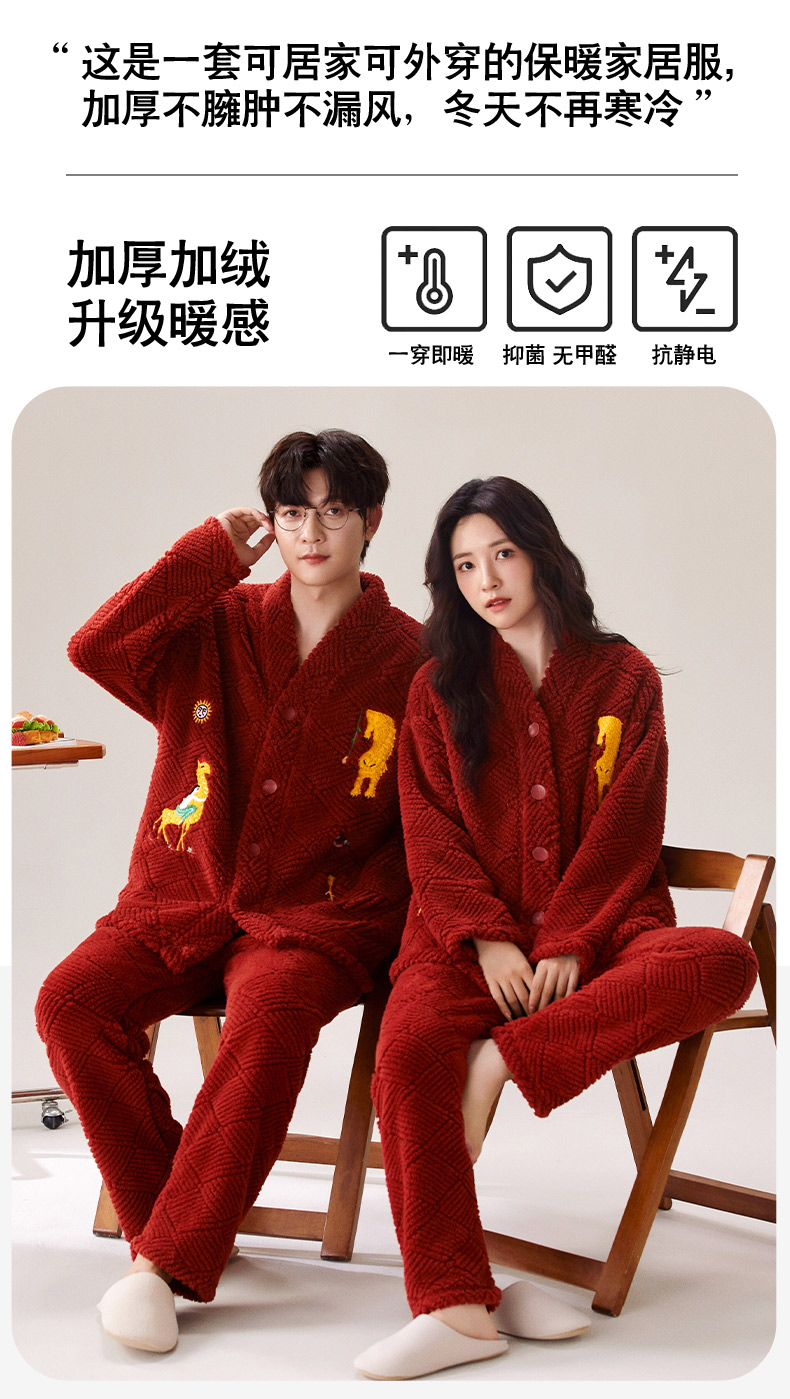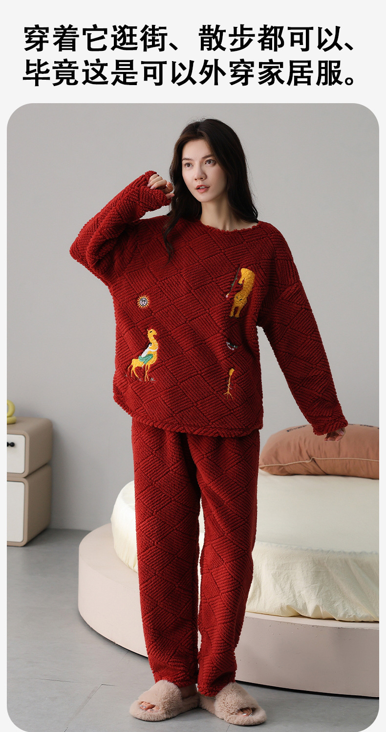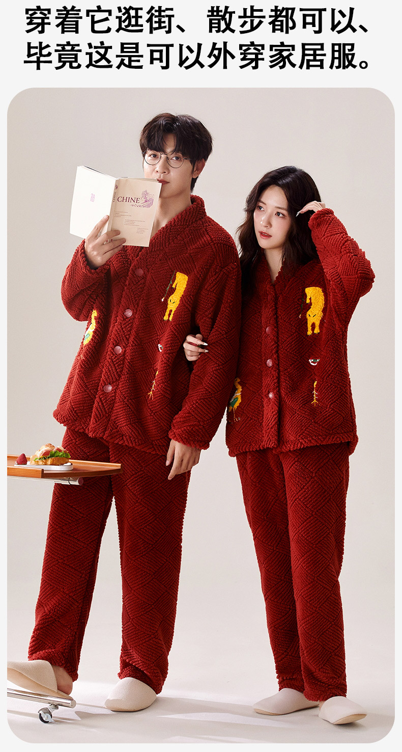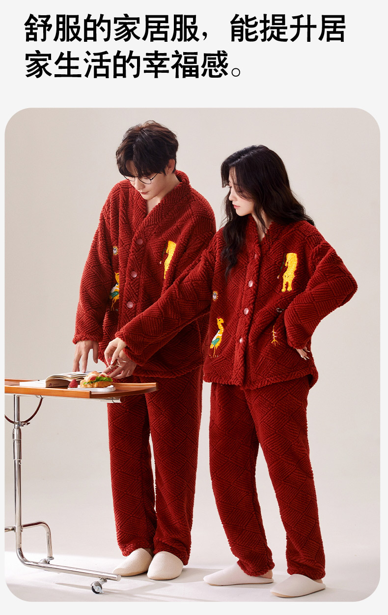 喜庆新年情侣男女珊瑚绒家居服 可外穿居家加厚保暖睡衣套装