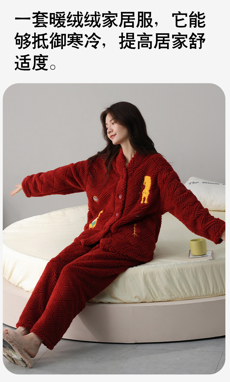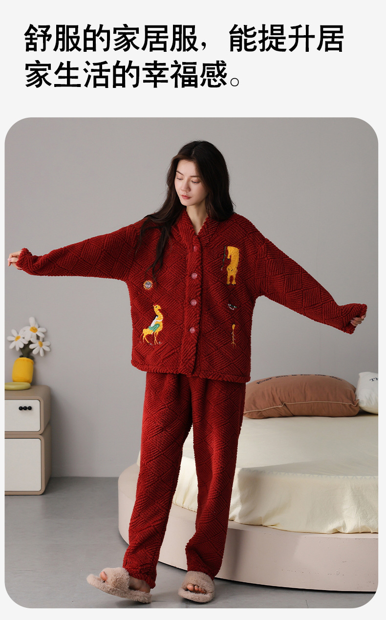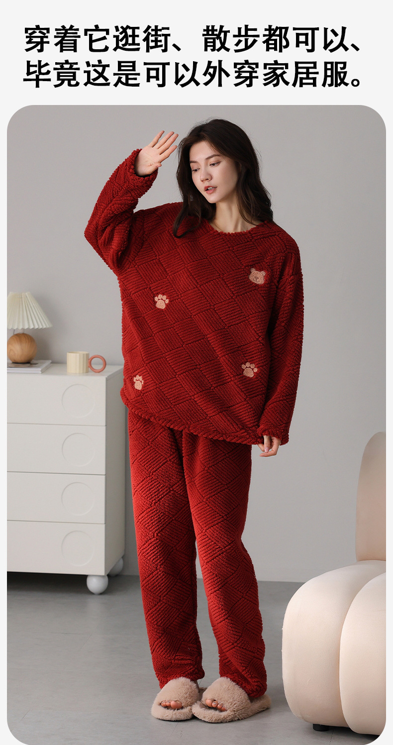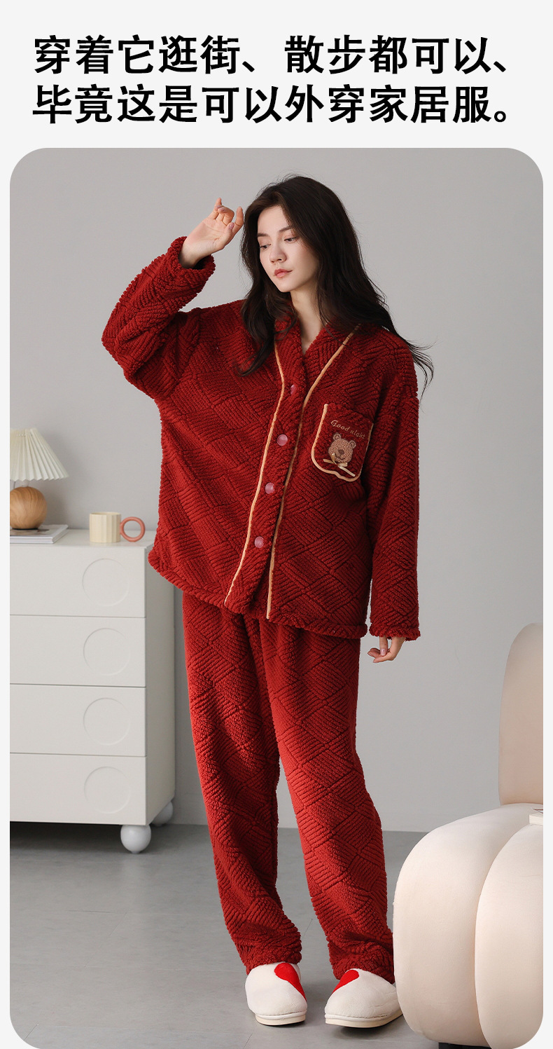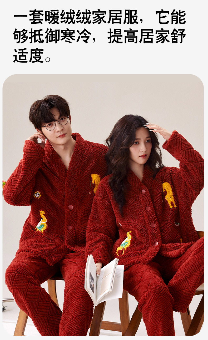 喜庆新年情侣男女珊瑚绒家居服 可外穿居家加厚保暖睡衣套装