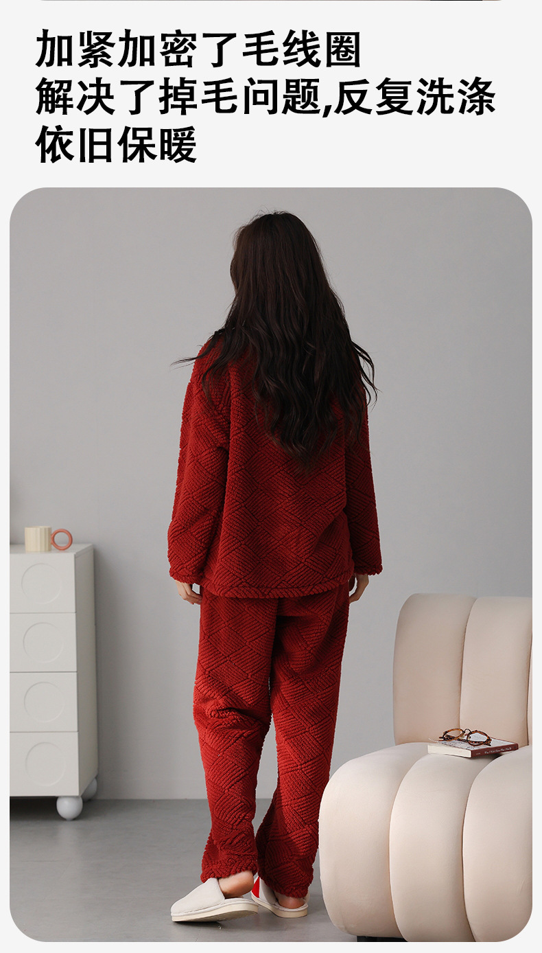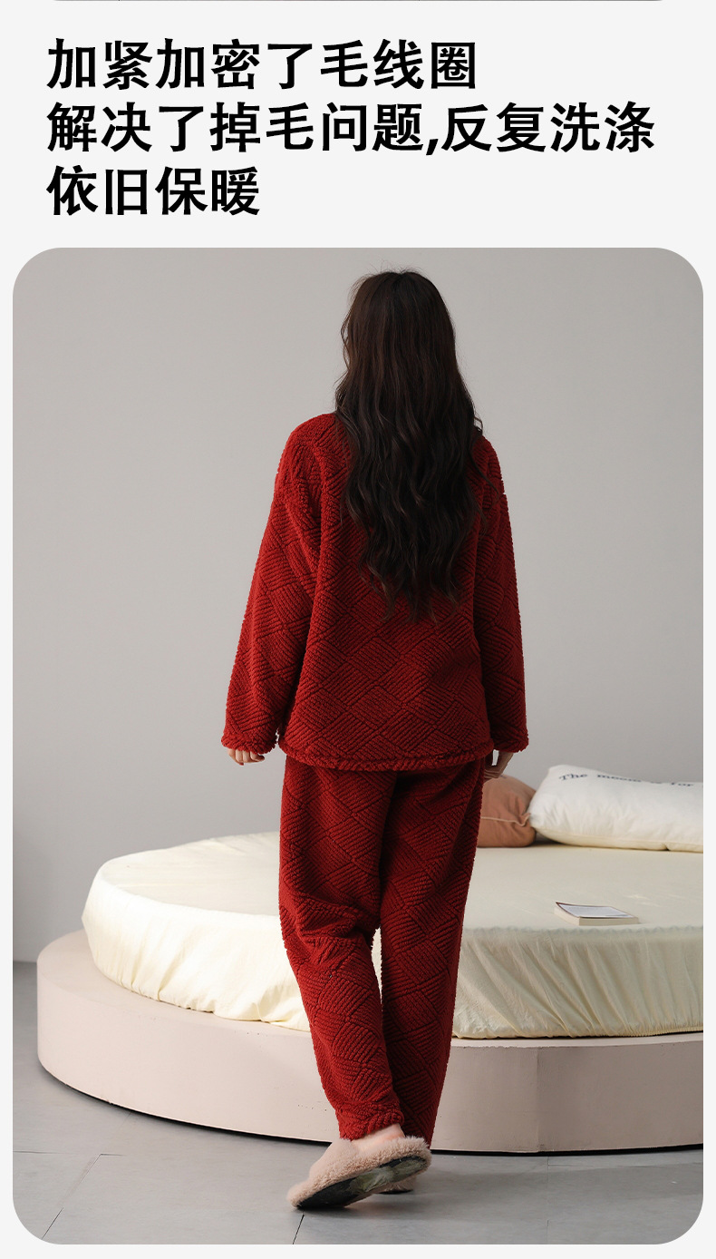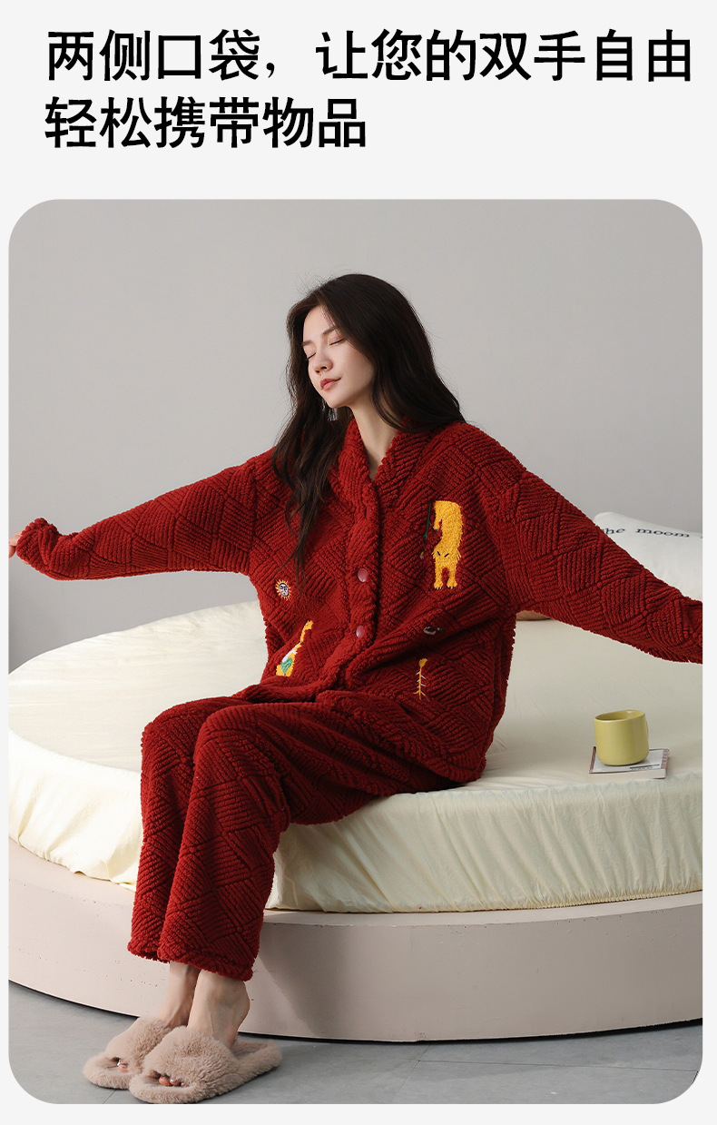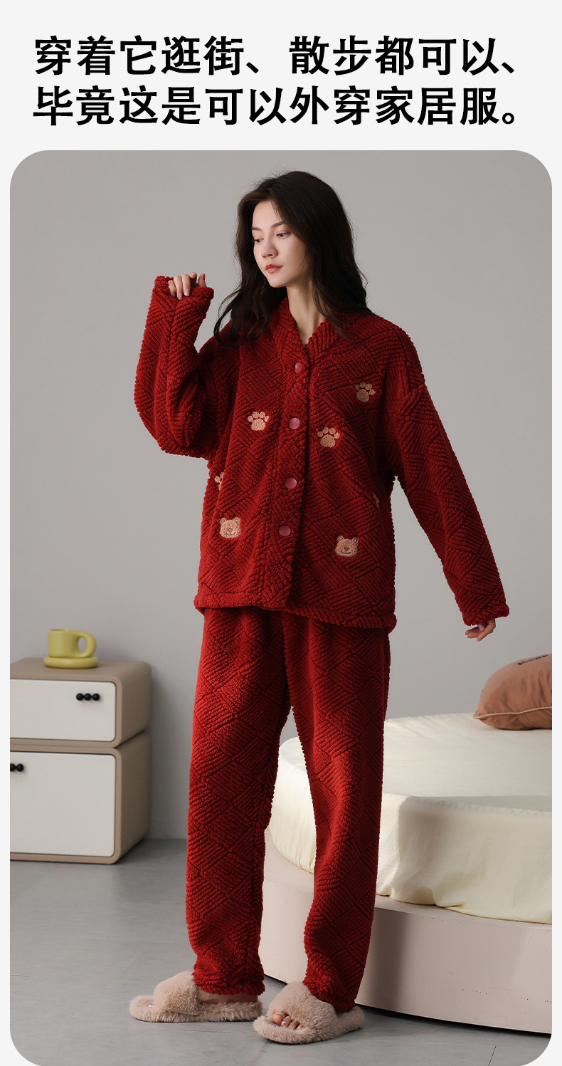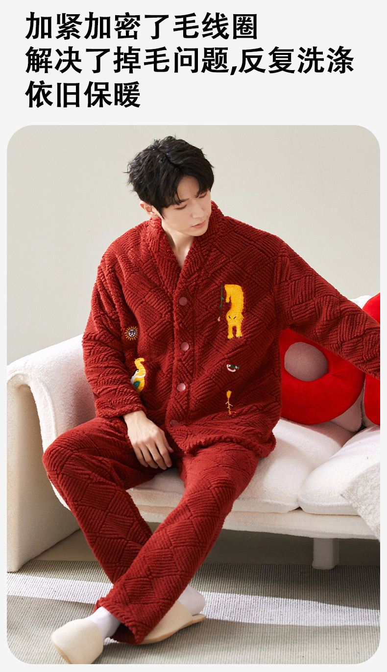 喜庆新年情侣男女珊瑚绒家居服 可外穿居家加厚保暖睡衣套装