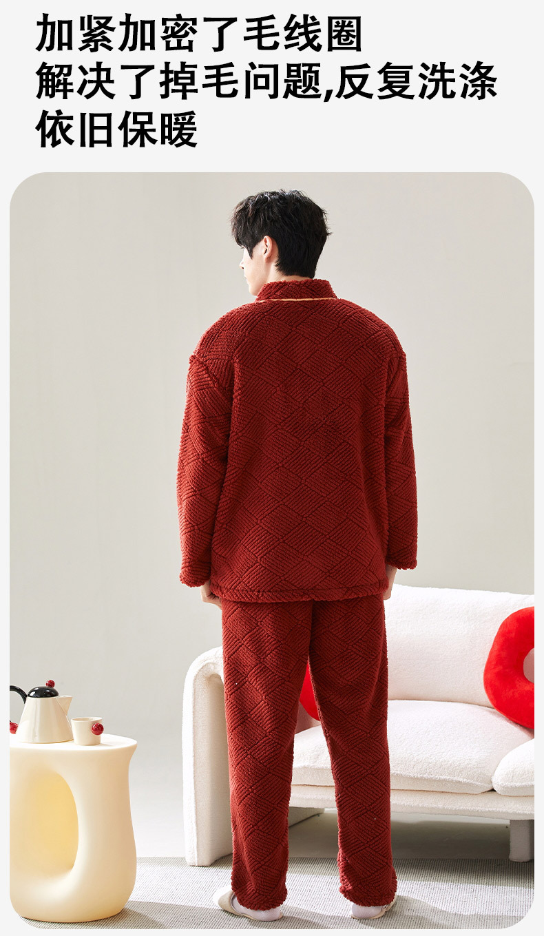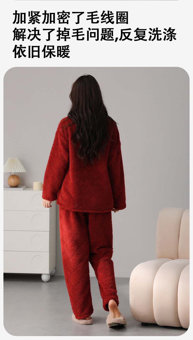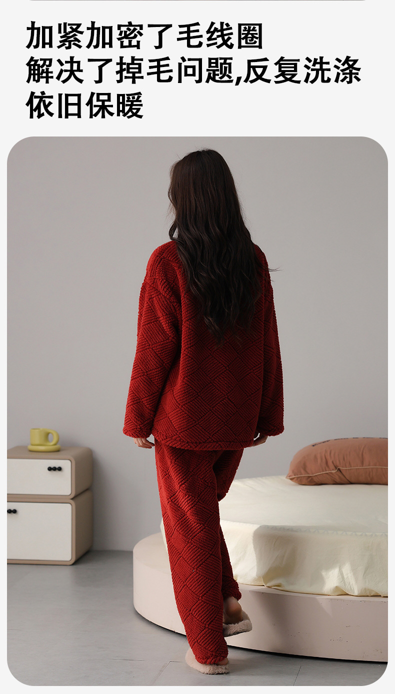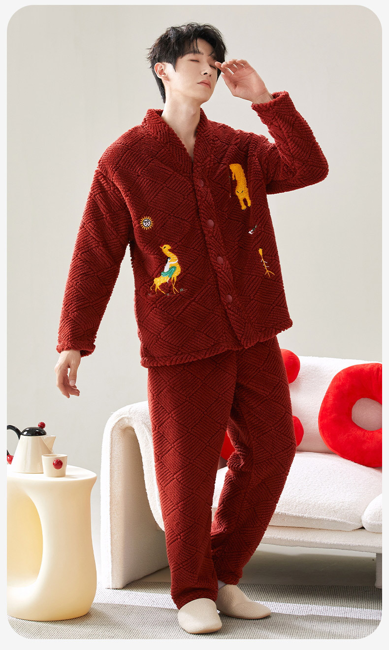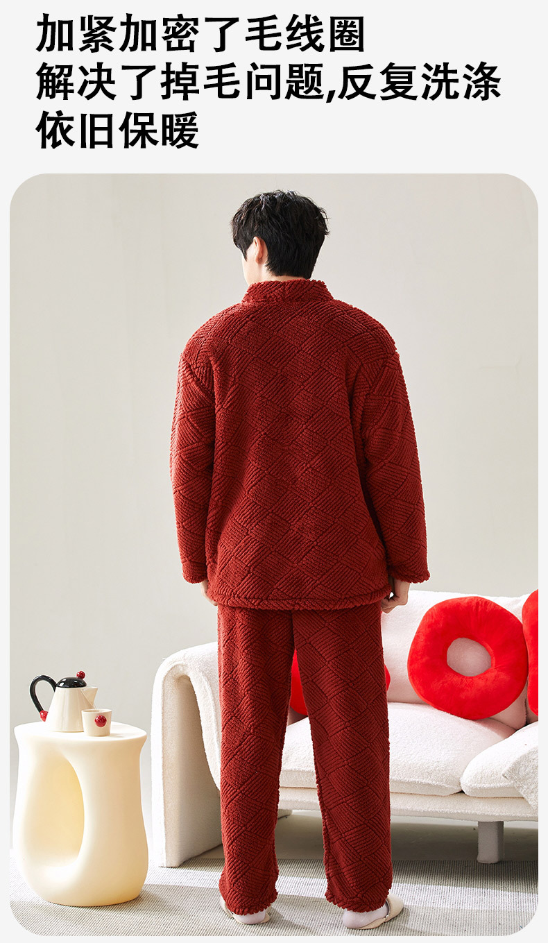 喜庆新年情侣男女珊瑚绒家居服 可外穿居家加厚保暖睡衣套装