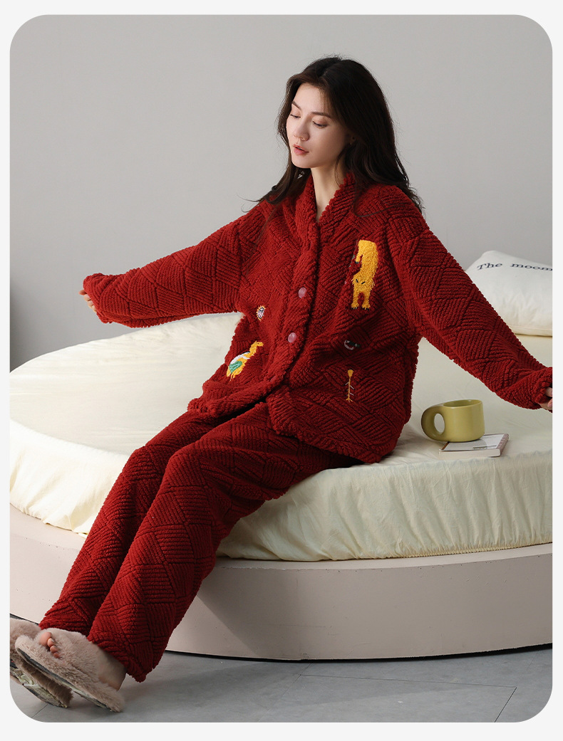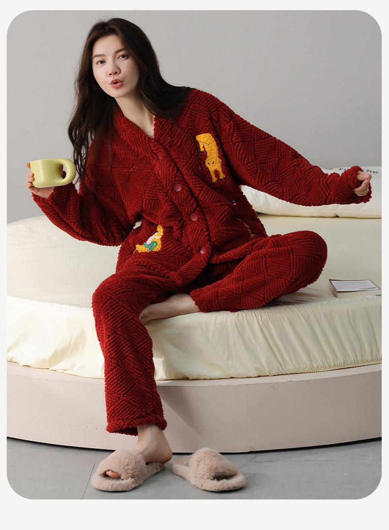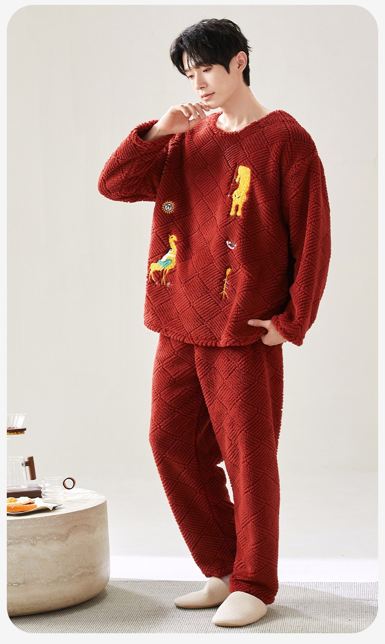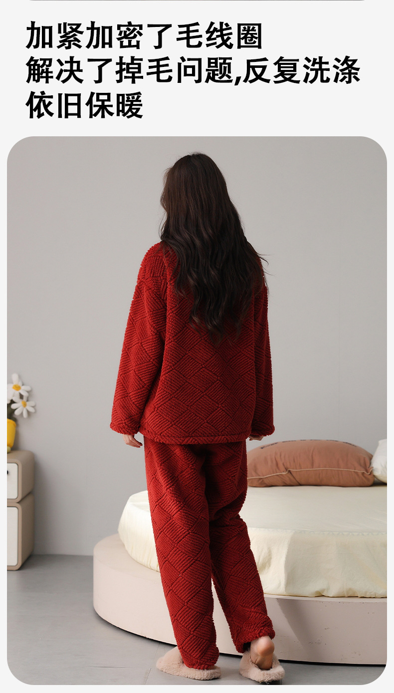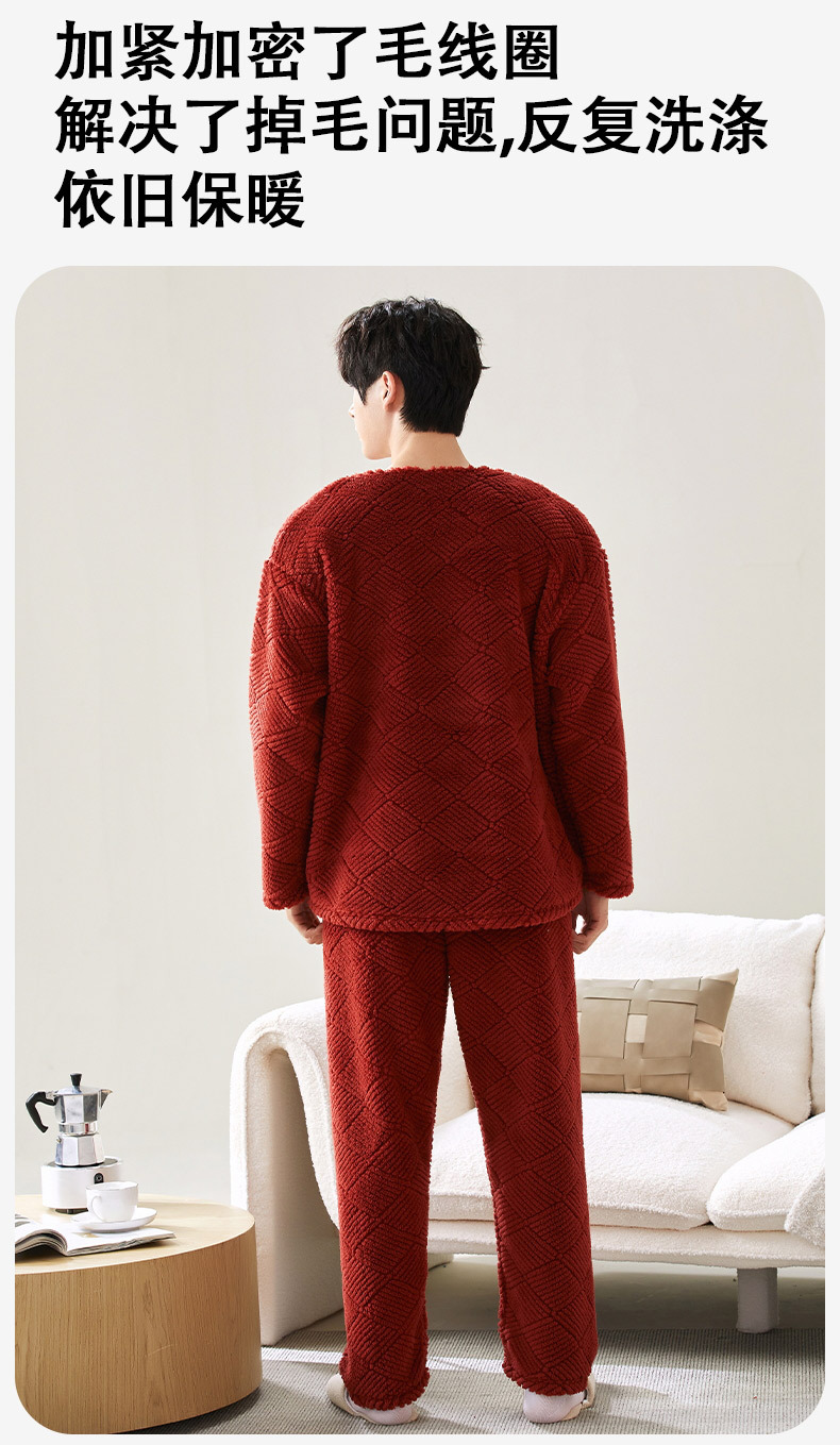 喜庆新年情侣男女珊瑚绒家居服 可外穿居家加厚保暖睡衣套装
