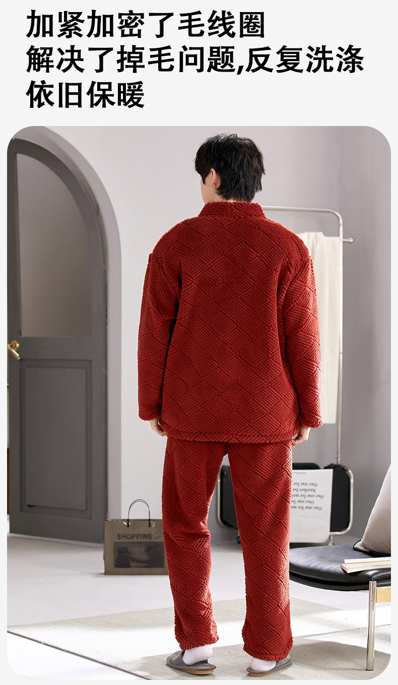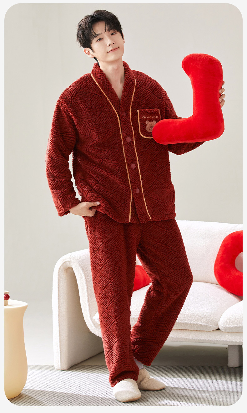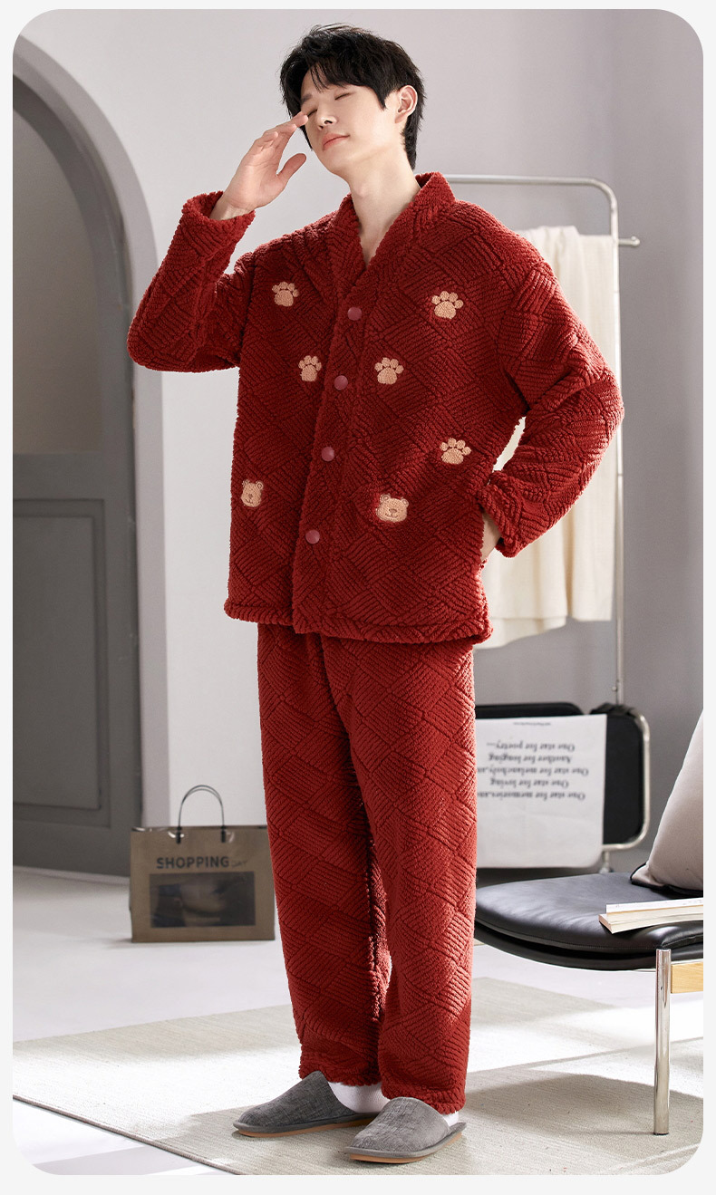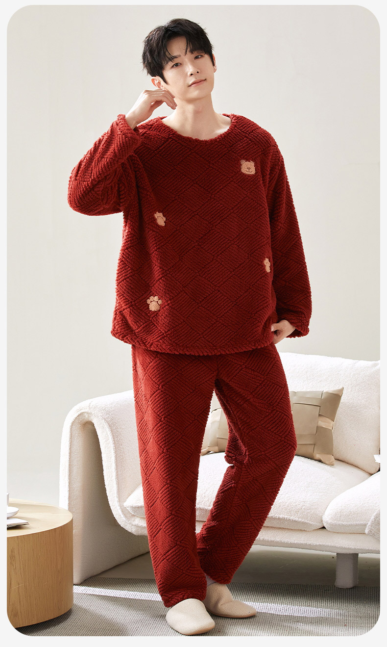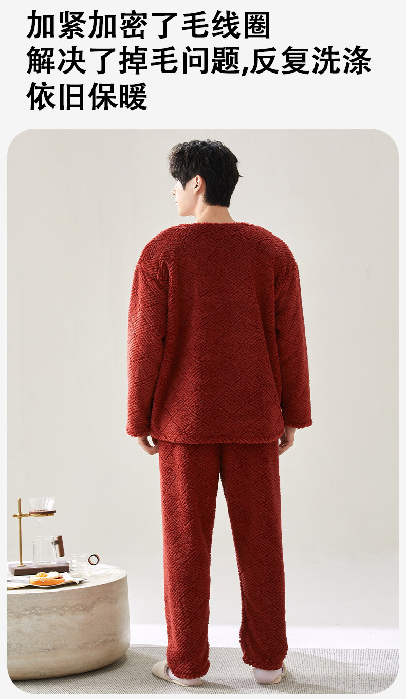 喜庆新年情侣男女珊瑚绒家居服 可外穿居家加厚保暖睡衣套装