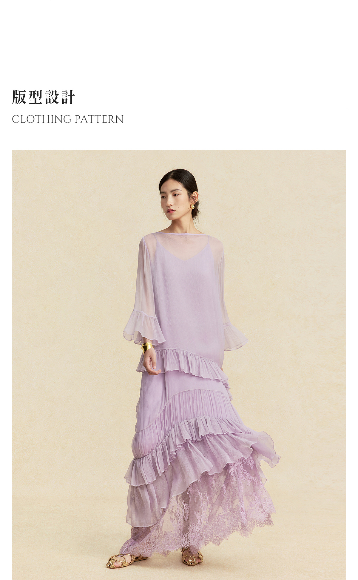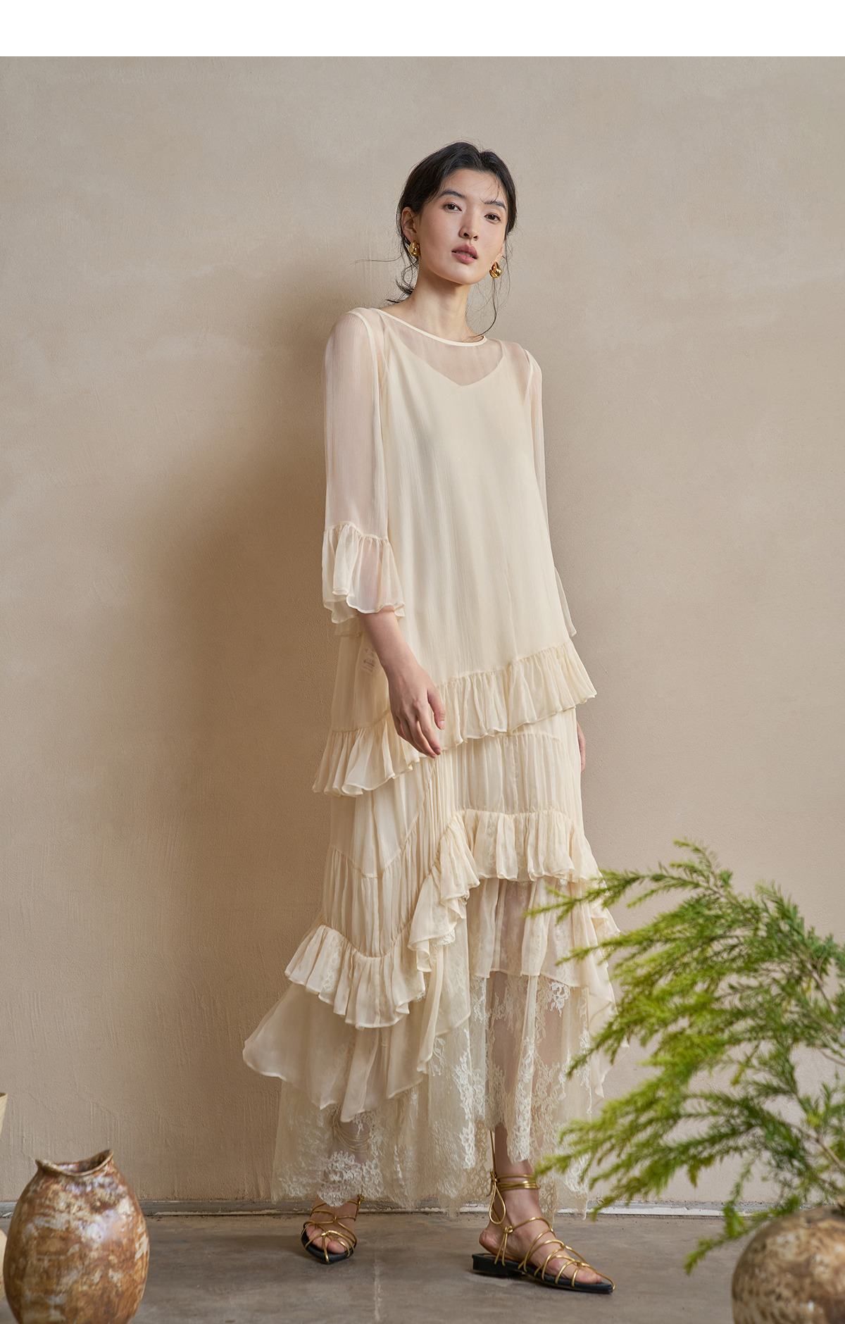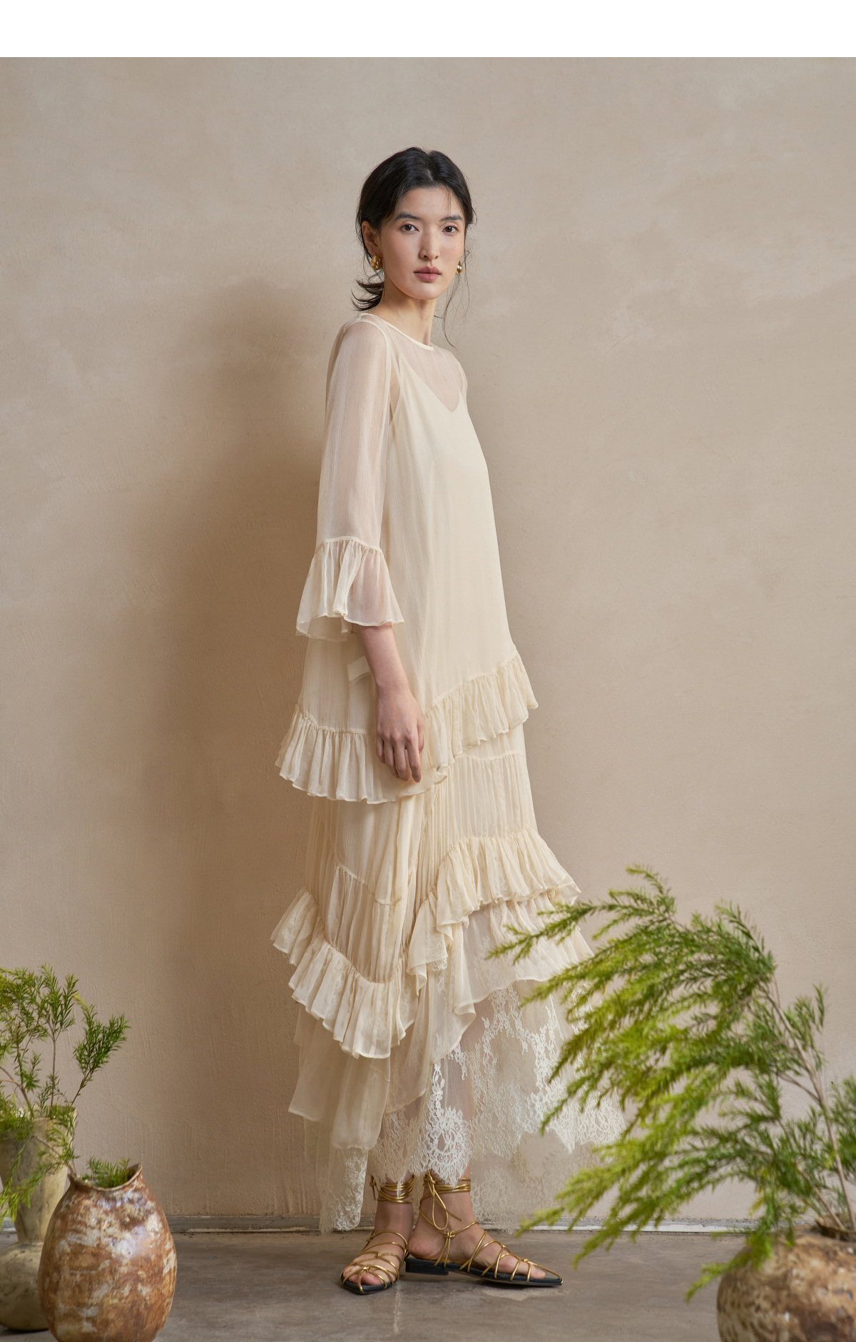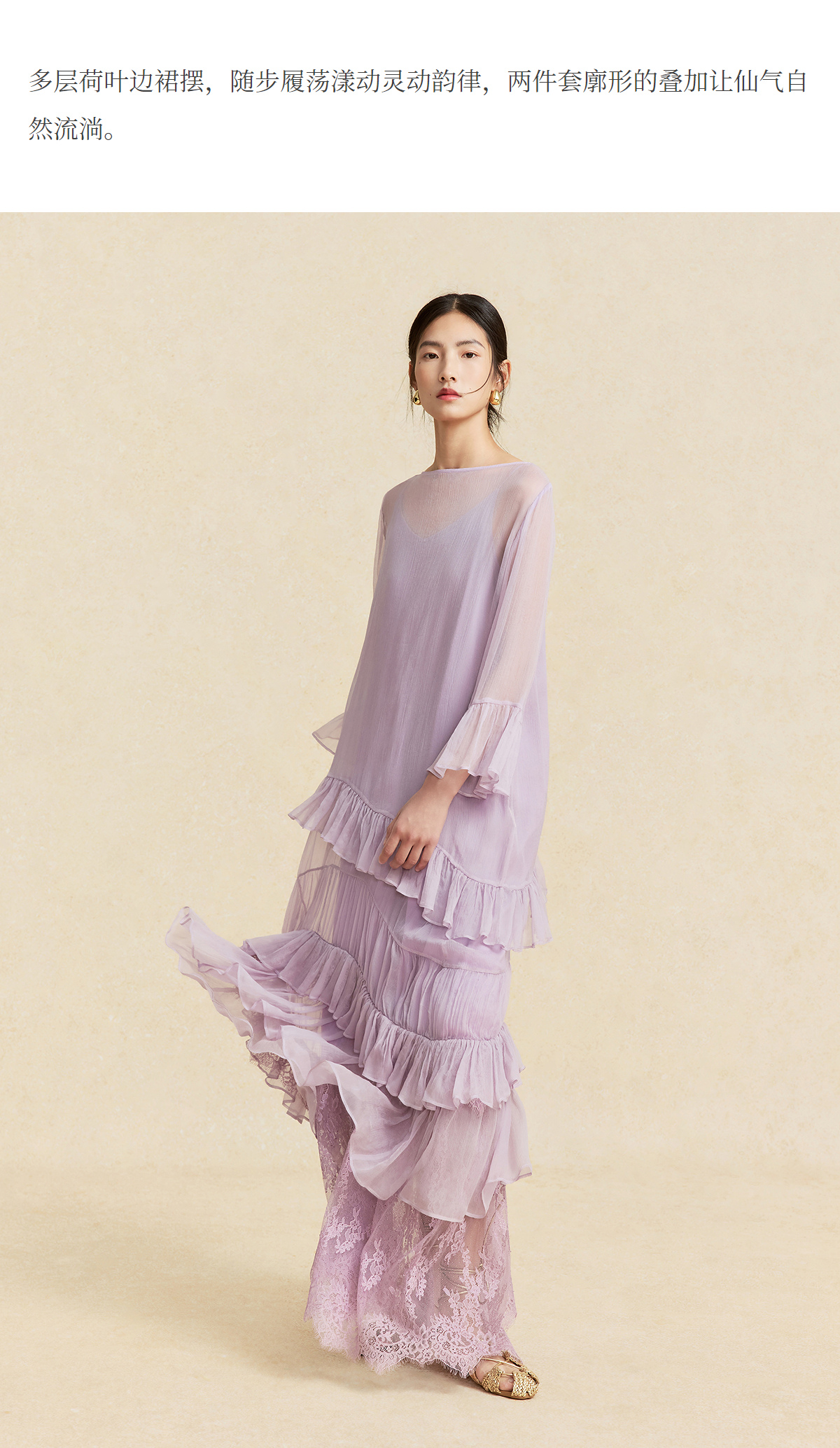 【林栖设计小店】叠叠清影|桑蚕丝荷叶边仙气2026春新款真丝连衣裙两件套1961176