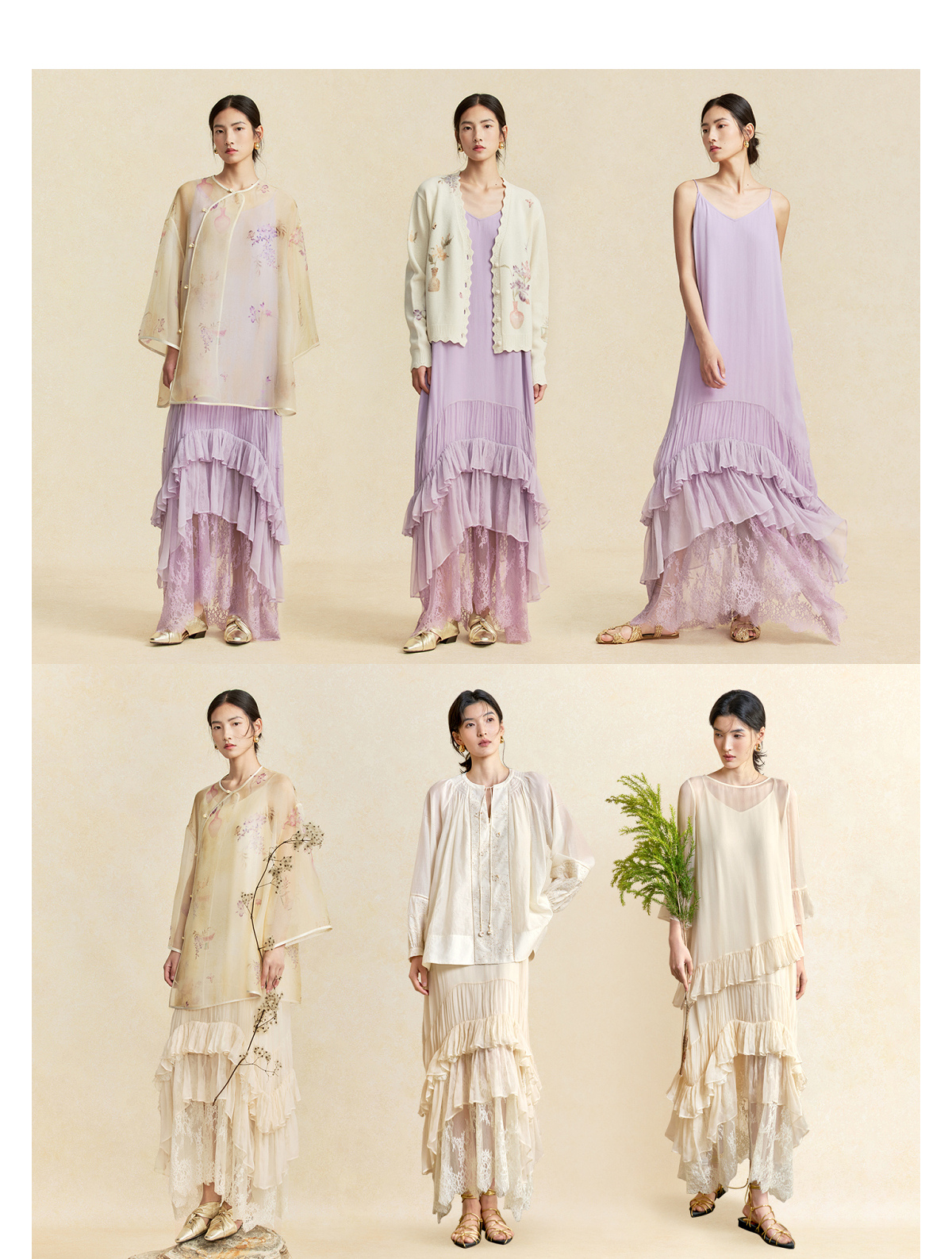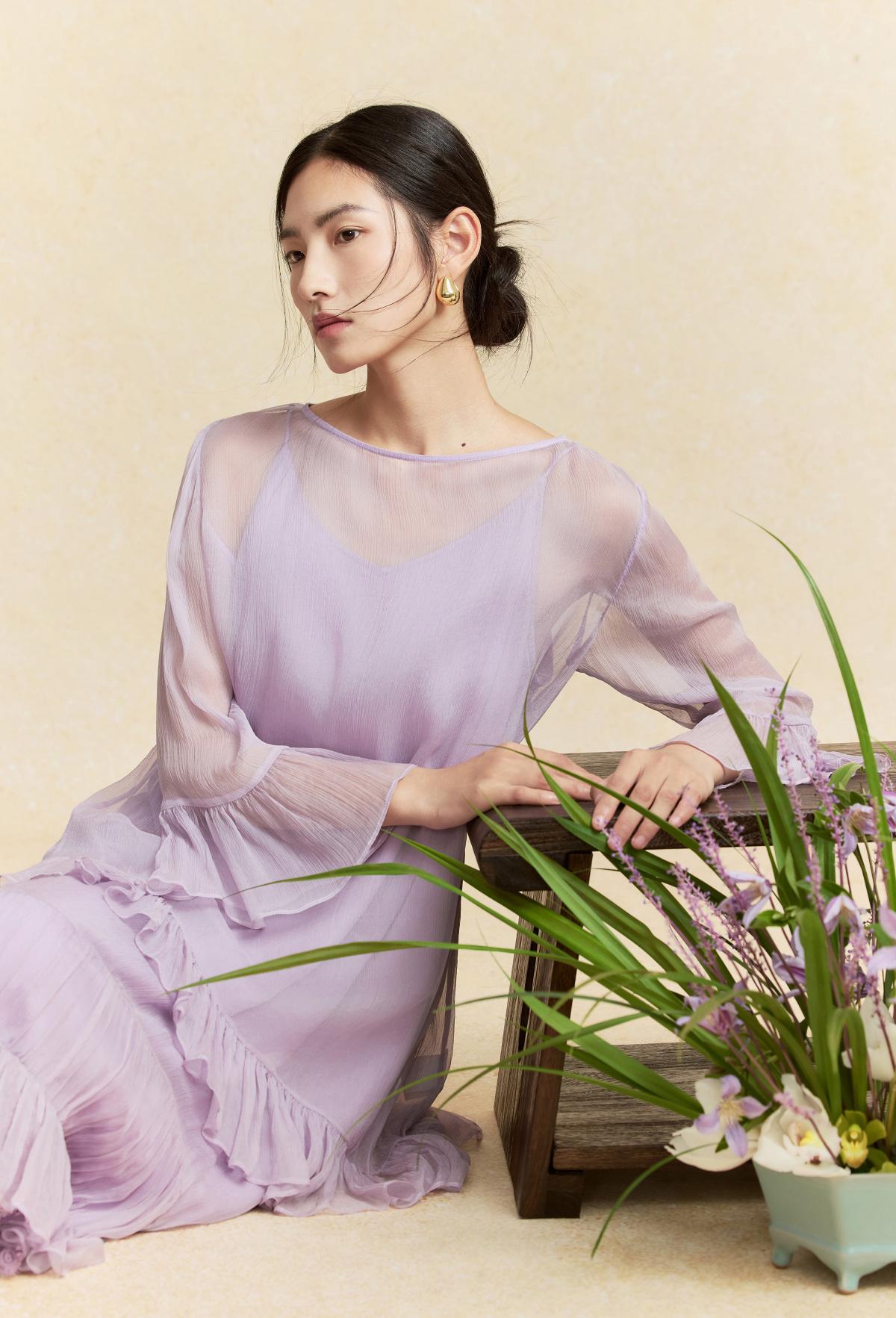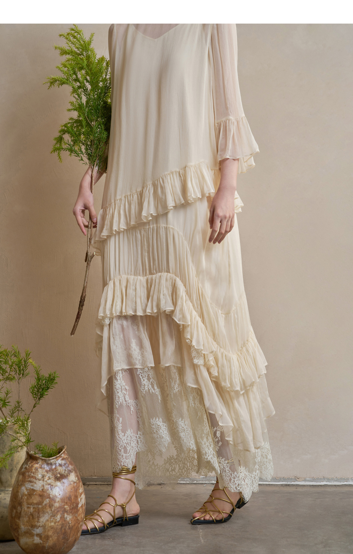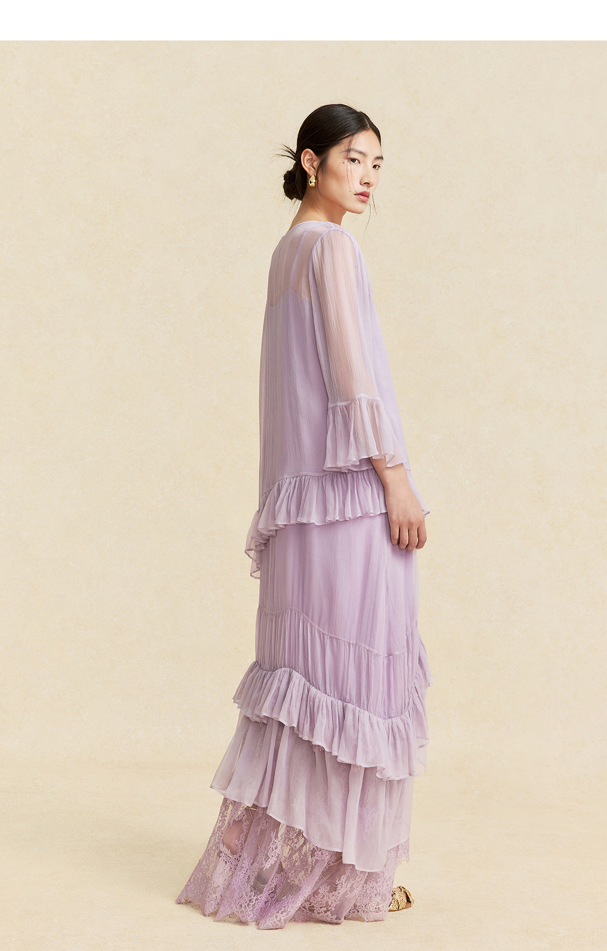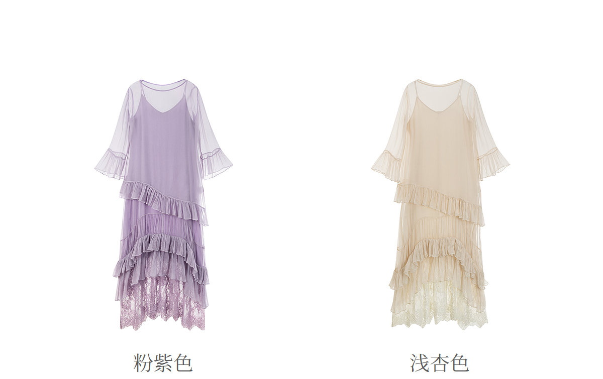 【林栖设计小店】叠叠清影|桑蚕丝荷叶边仙气2026春新款真丝连衣裙两件套1961176