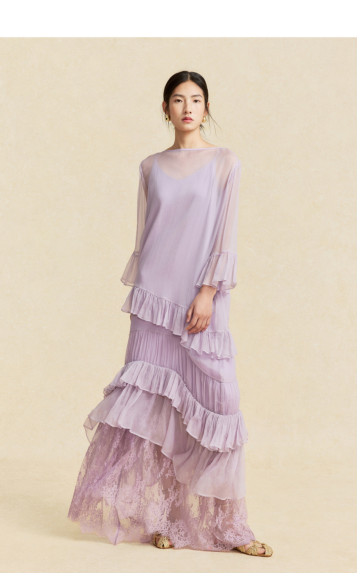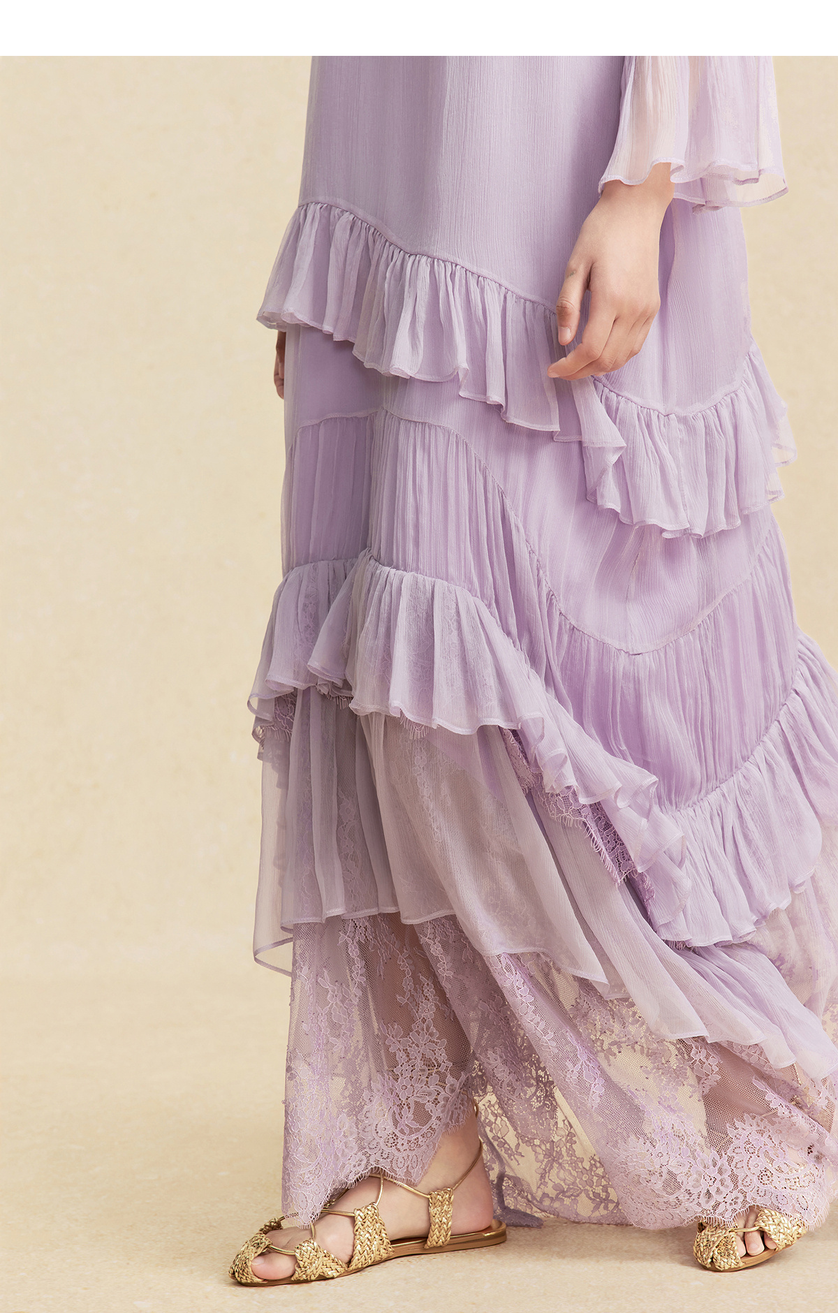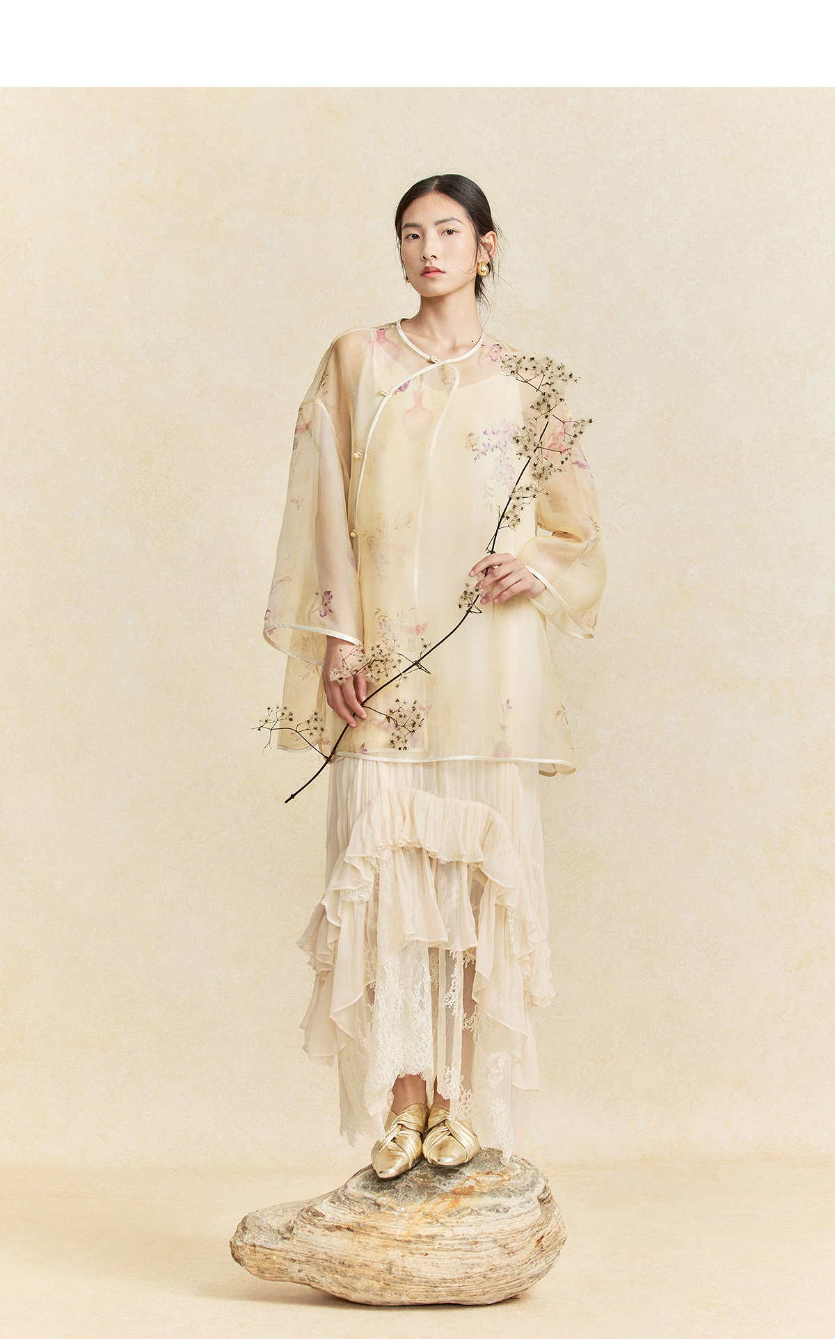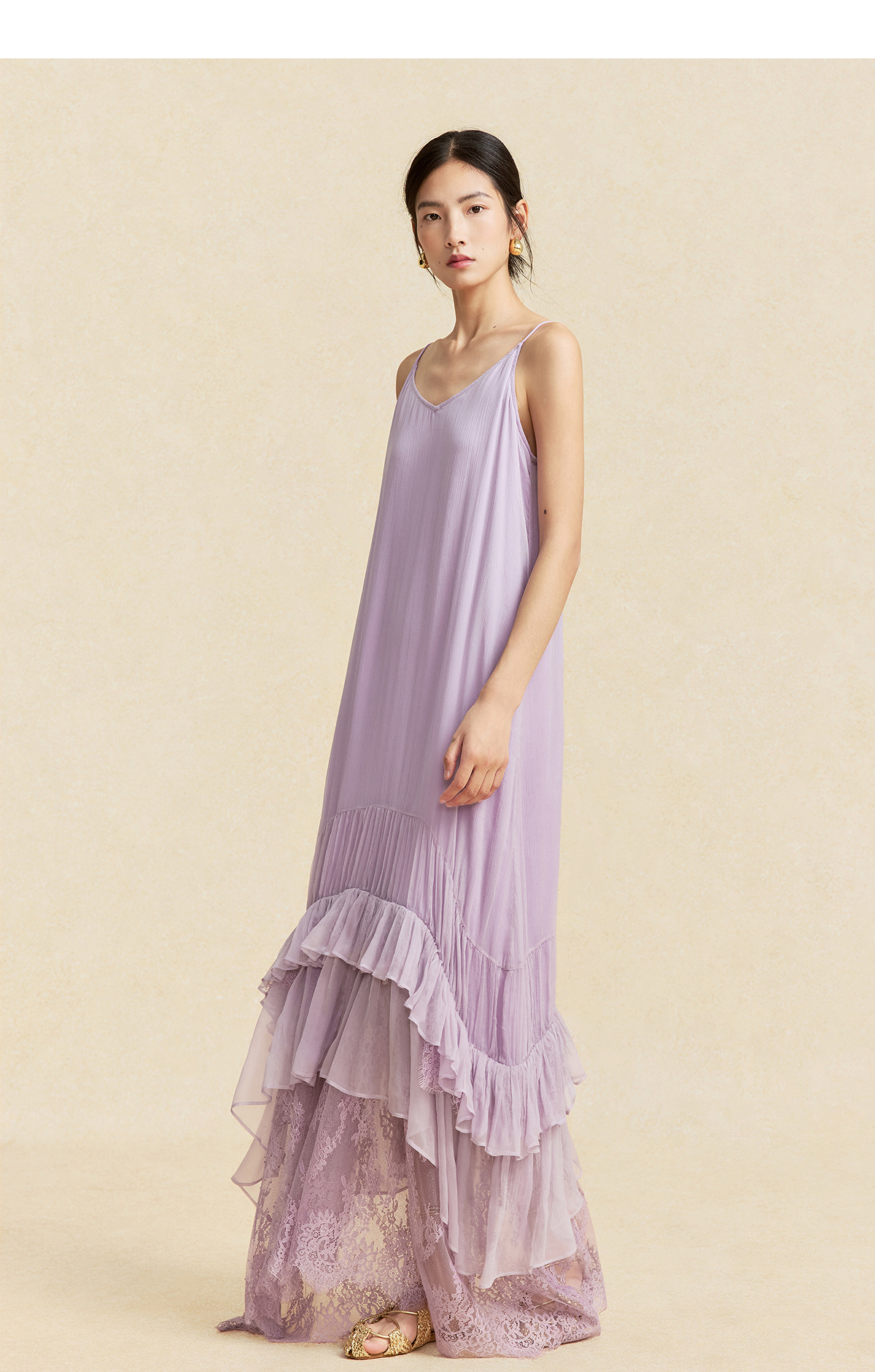 【林栖设计小店】叠叠清影|桑蚕丝荷叶边仙气2026春新款真丝连衣裙两件套1961176