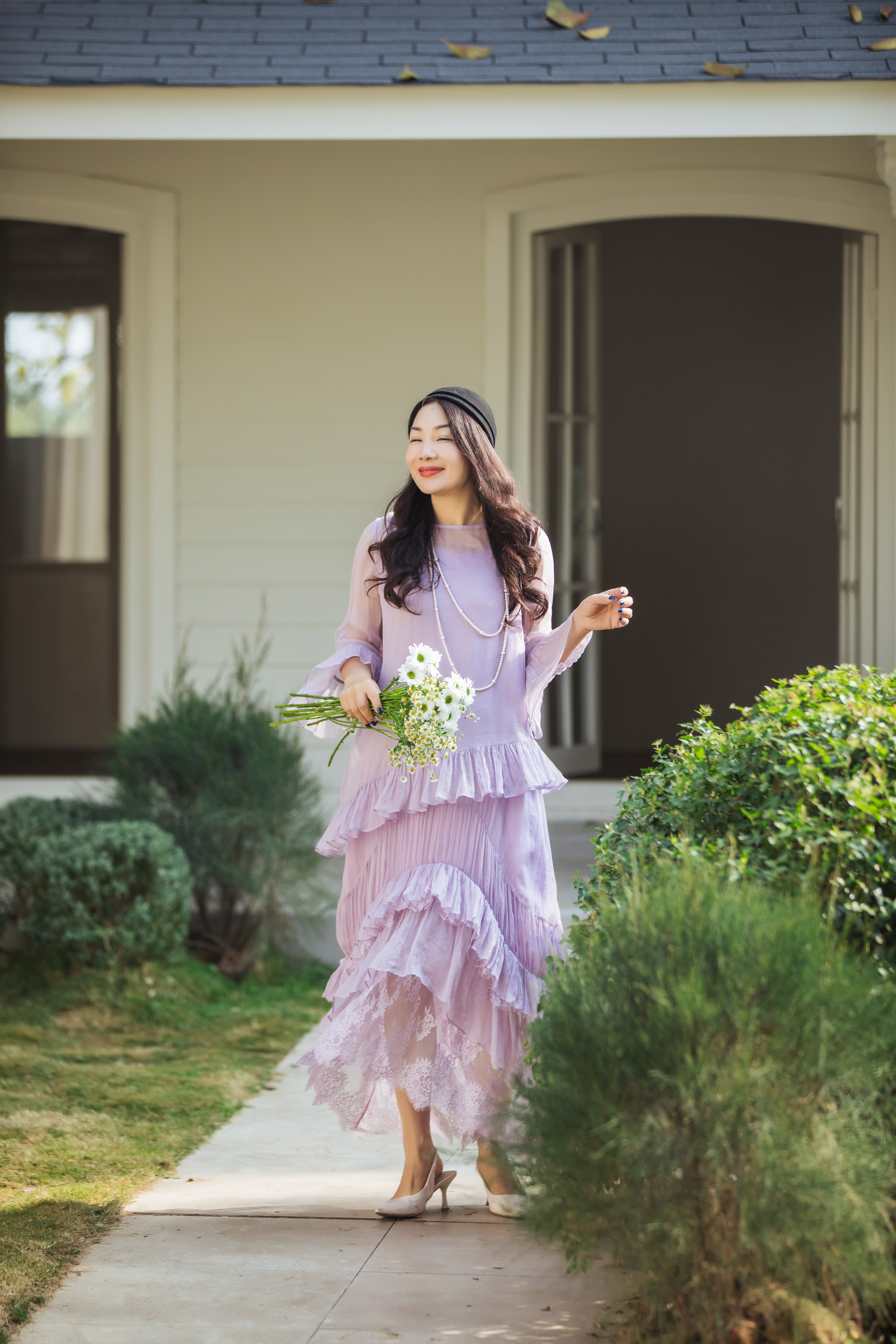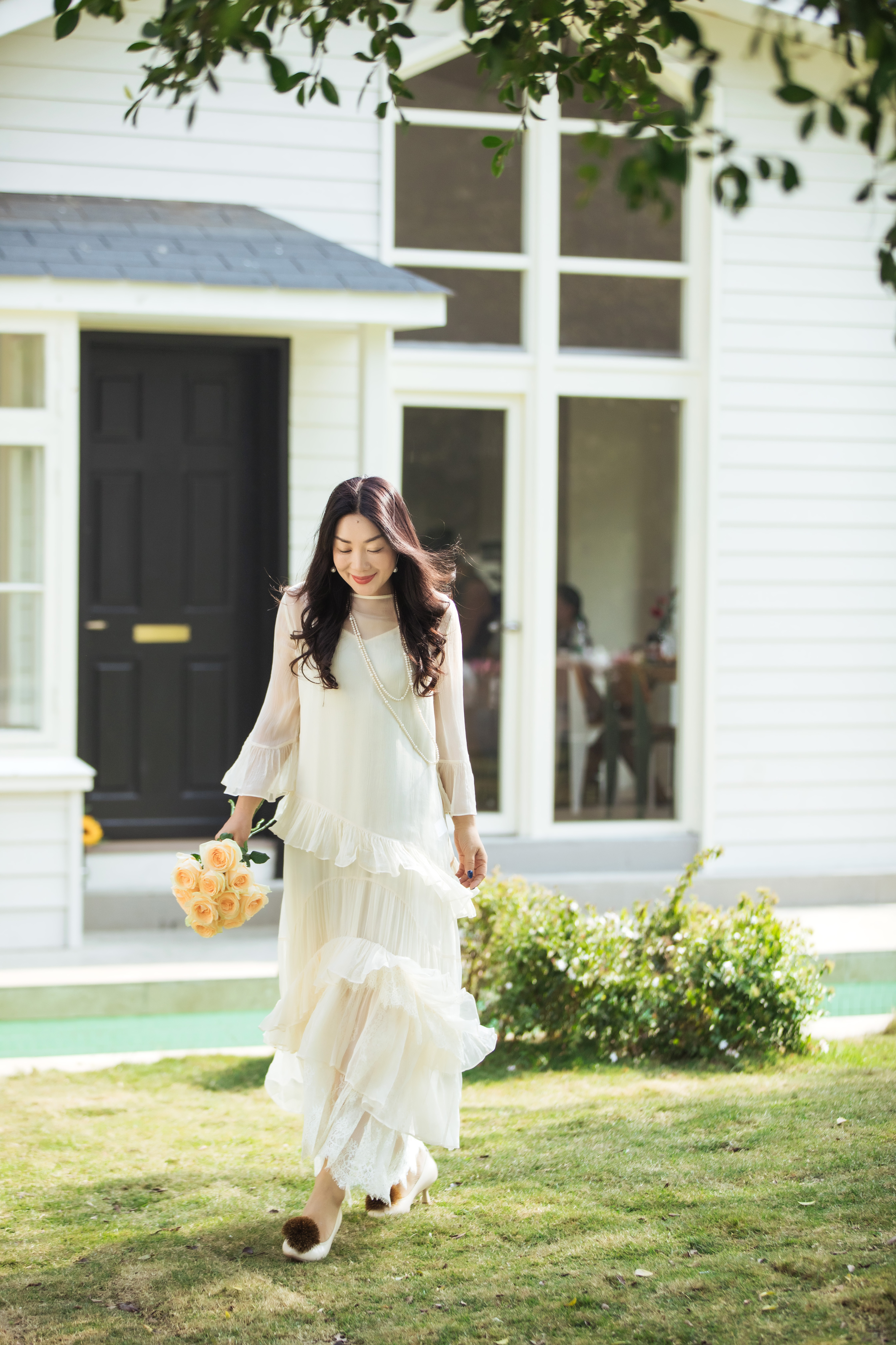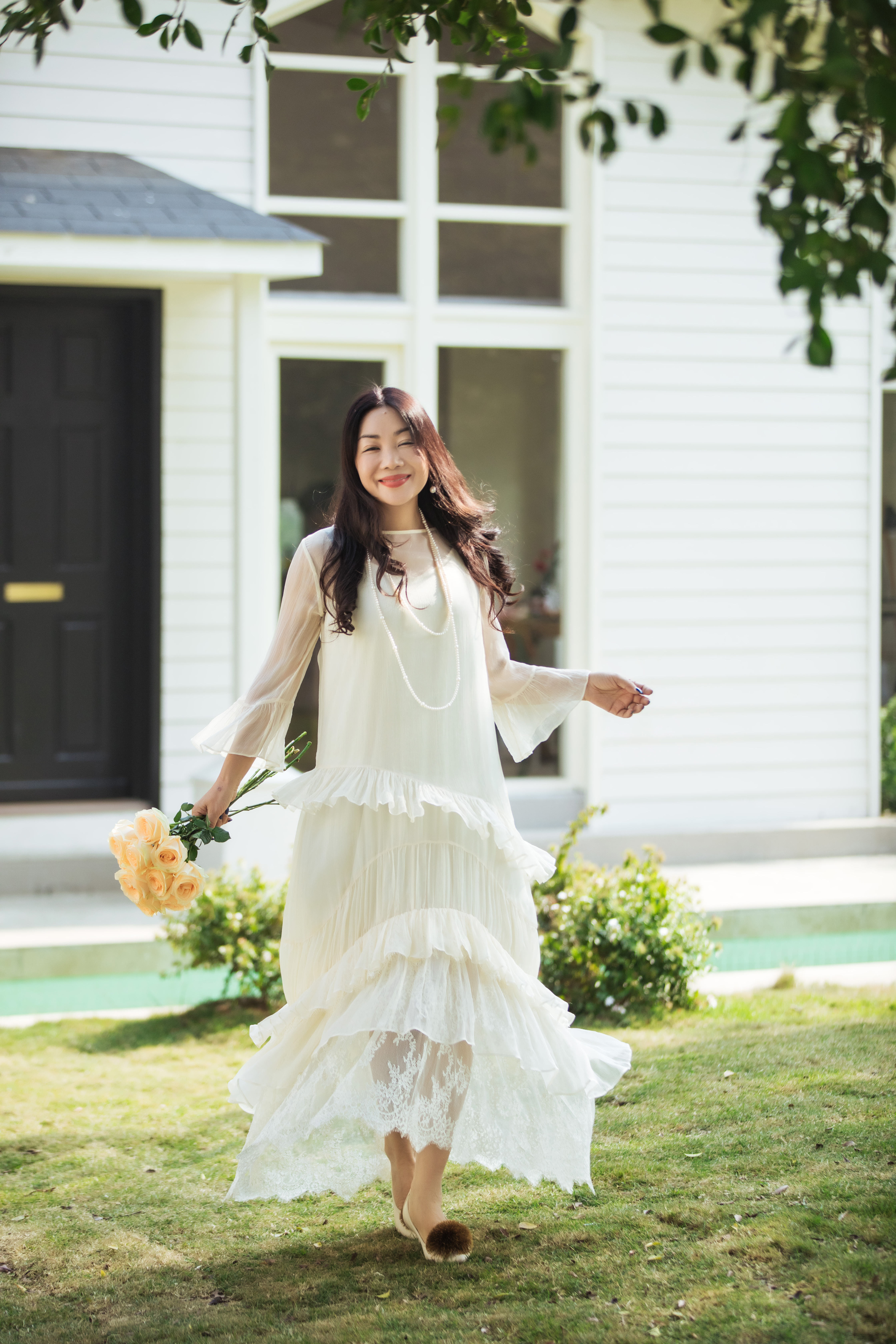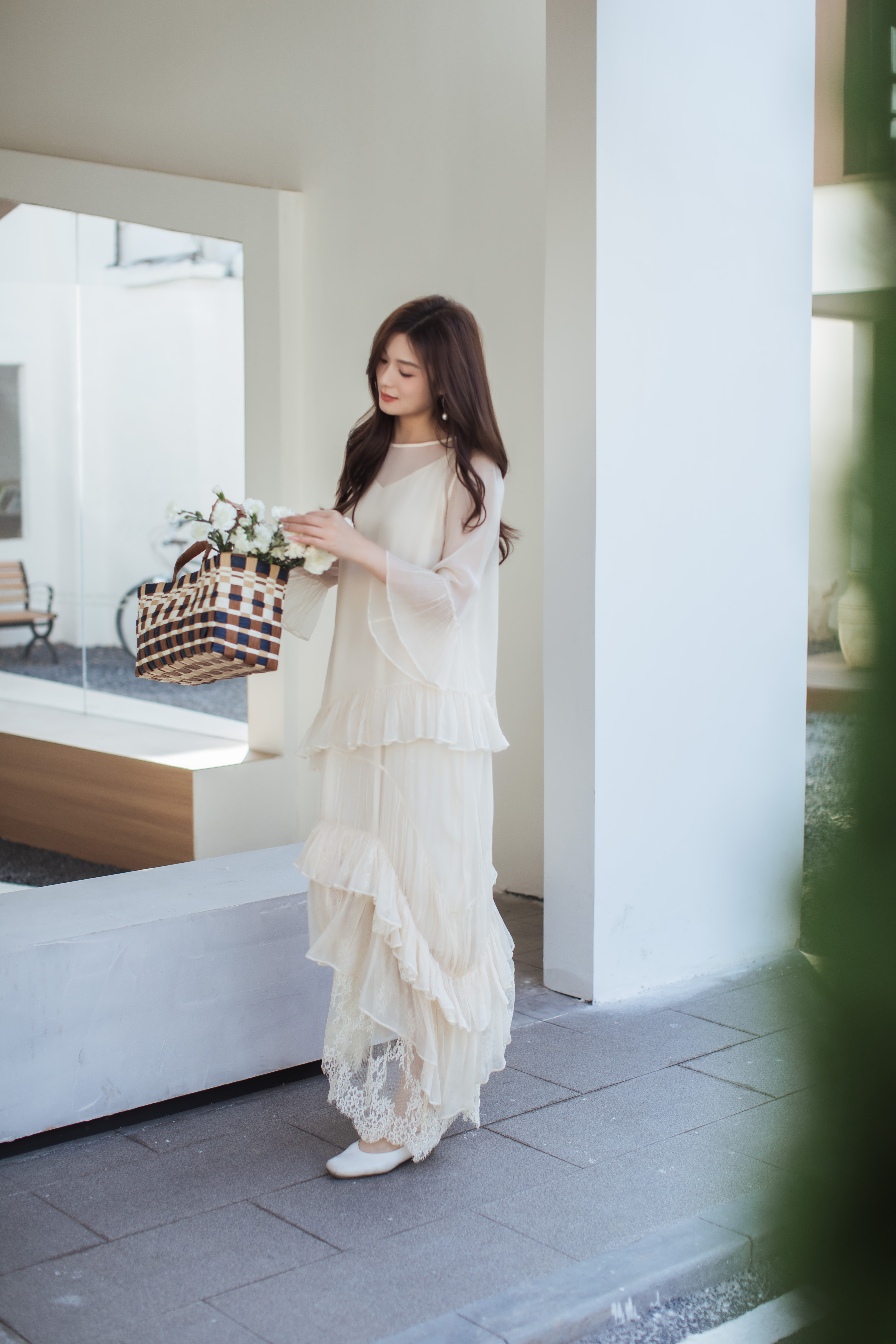 【林栖设计小店】叠叠清影|桑蚕丝荷叶边仙气2026春新款真丝连衣裙两件套1961176