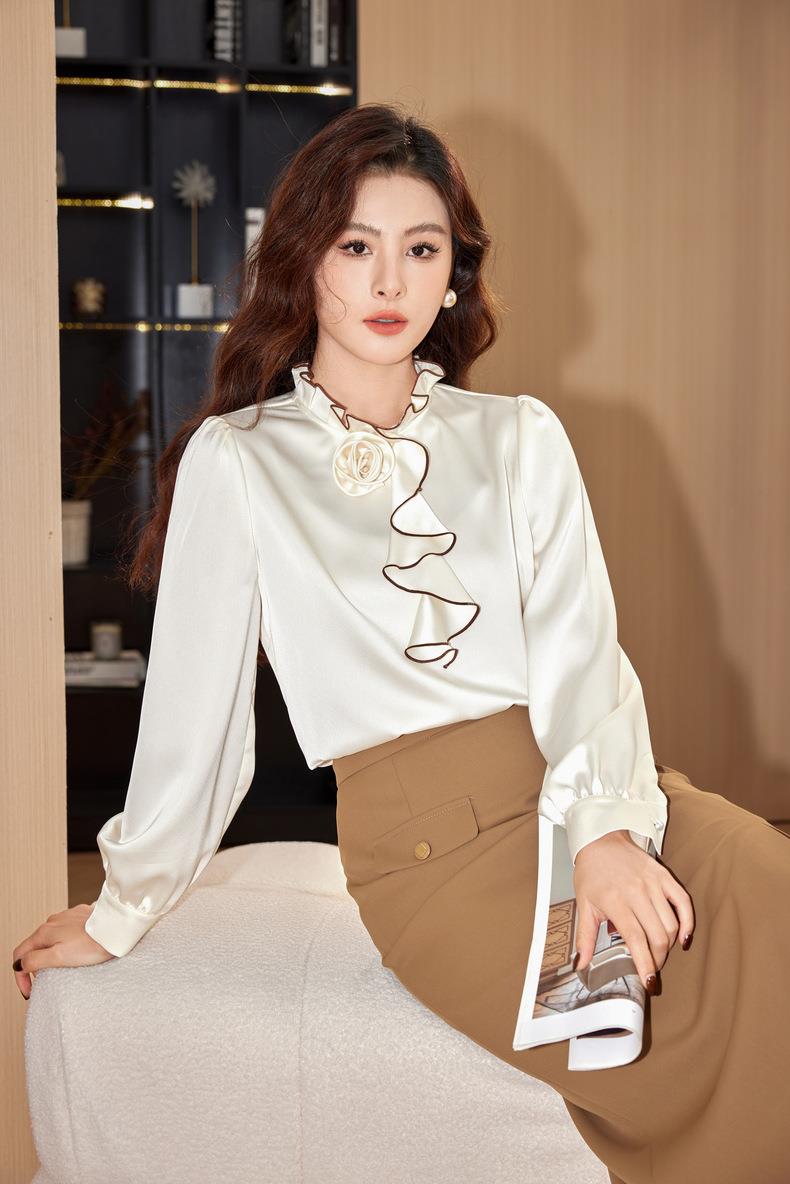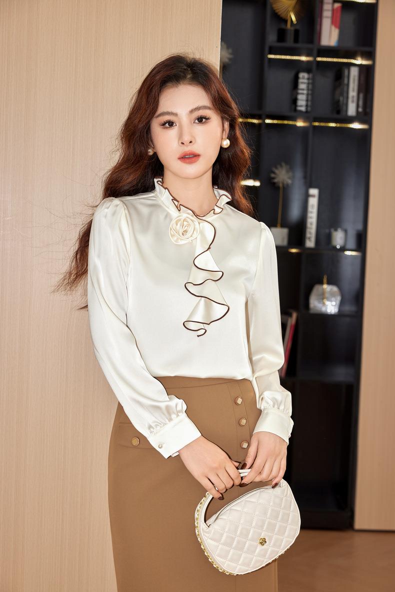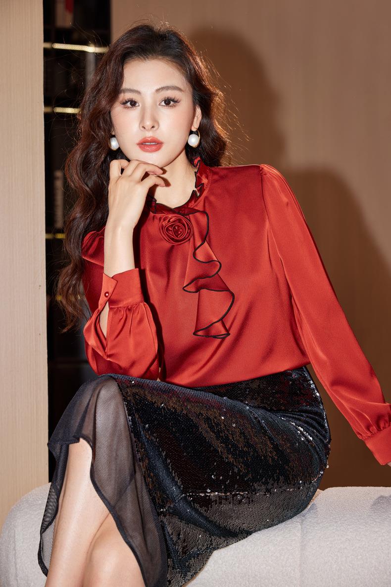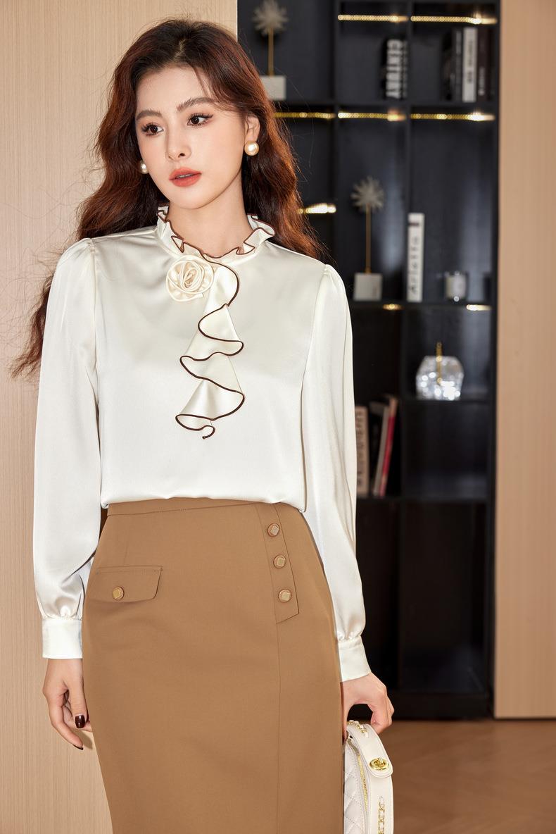 立领缎面雪纺衫女上衣2024春装新款洋气小衫长袖女衬衣8887