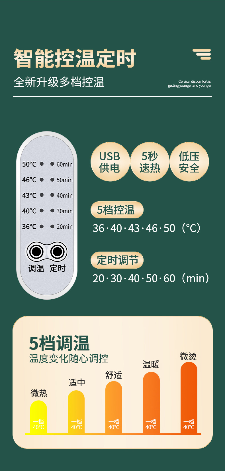 普艾源 智能控温电加热护颈随身保暖发热家用艾草包 艾绒搭配草本 多部位可佩戴