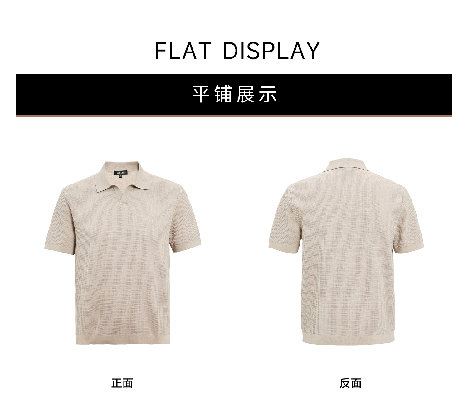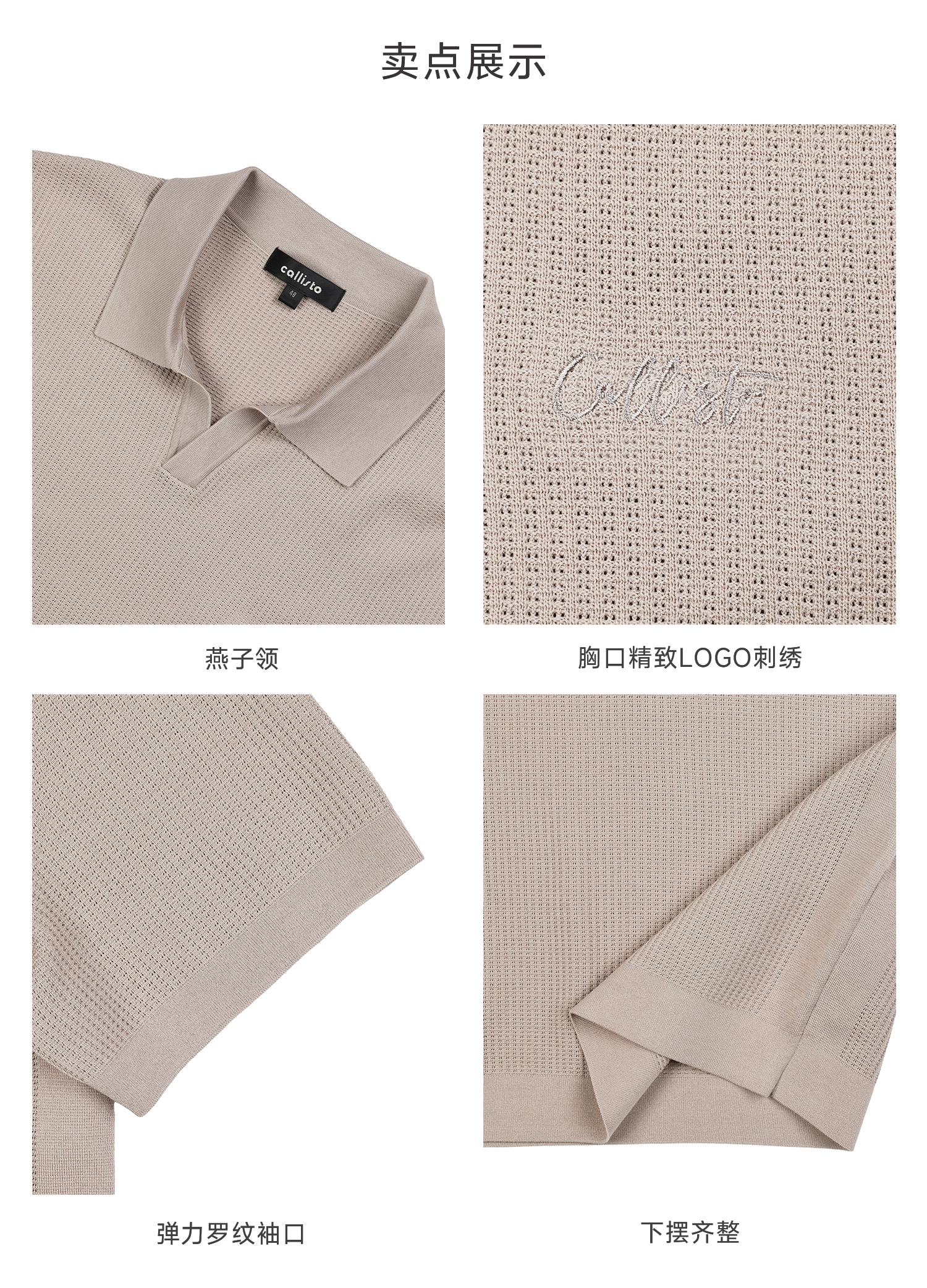 callisto卡其燕子领长绒棉弹力T恤