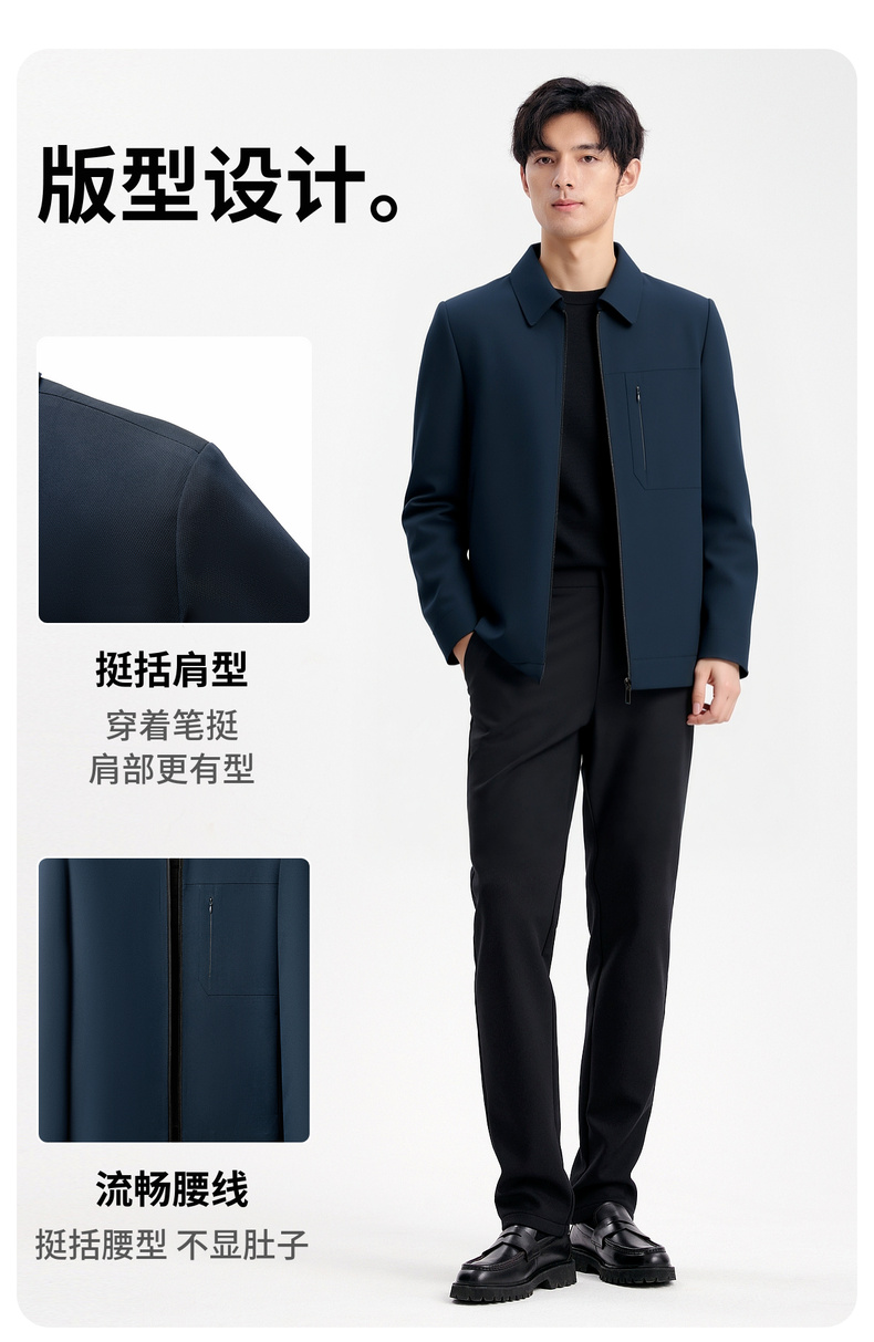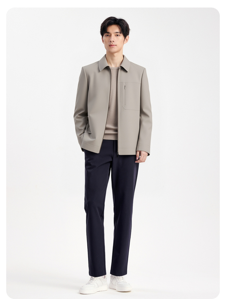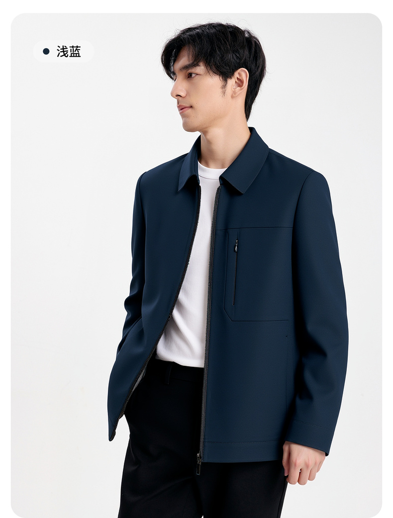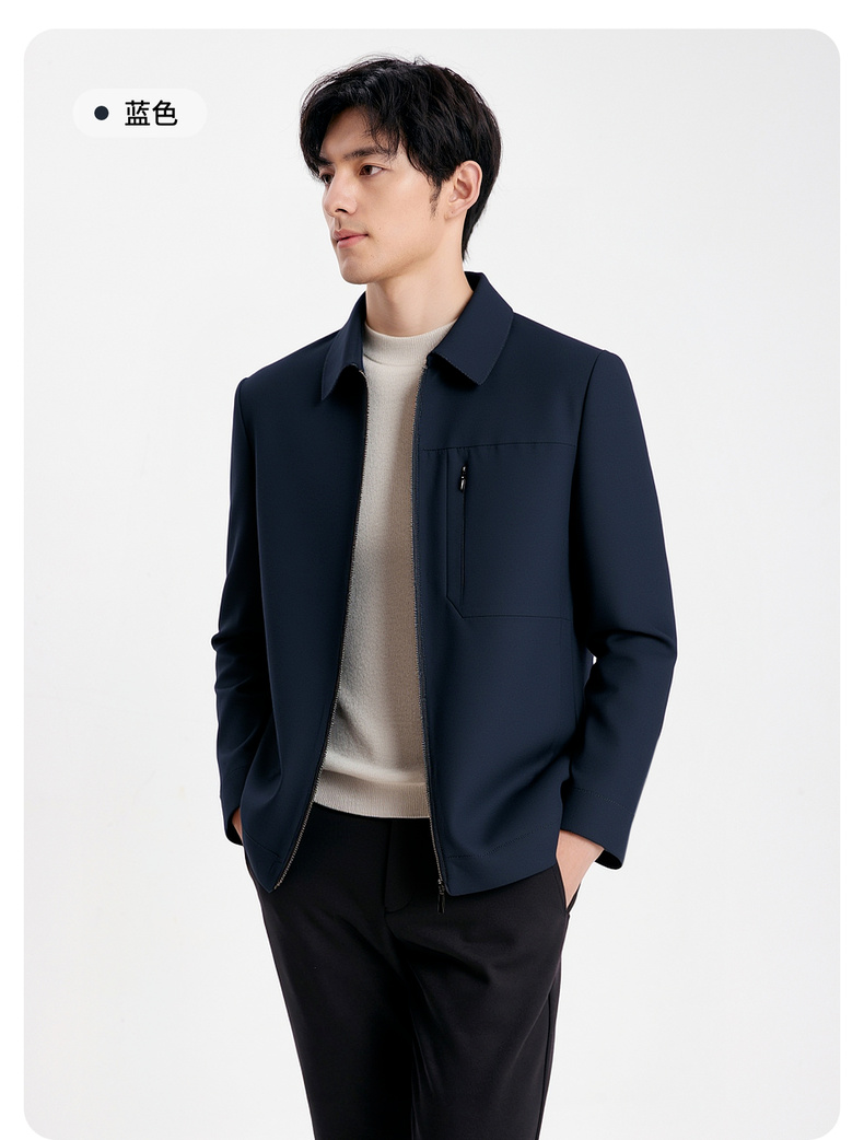 圣得西男士轻商务通勤翻领夹克2025秋季新款行政风合体易搭外套
