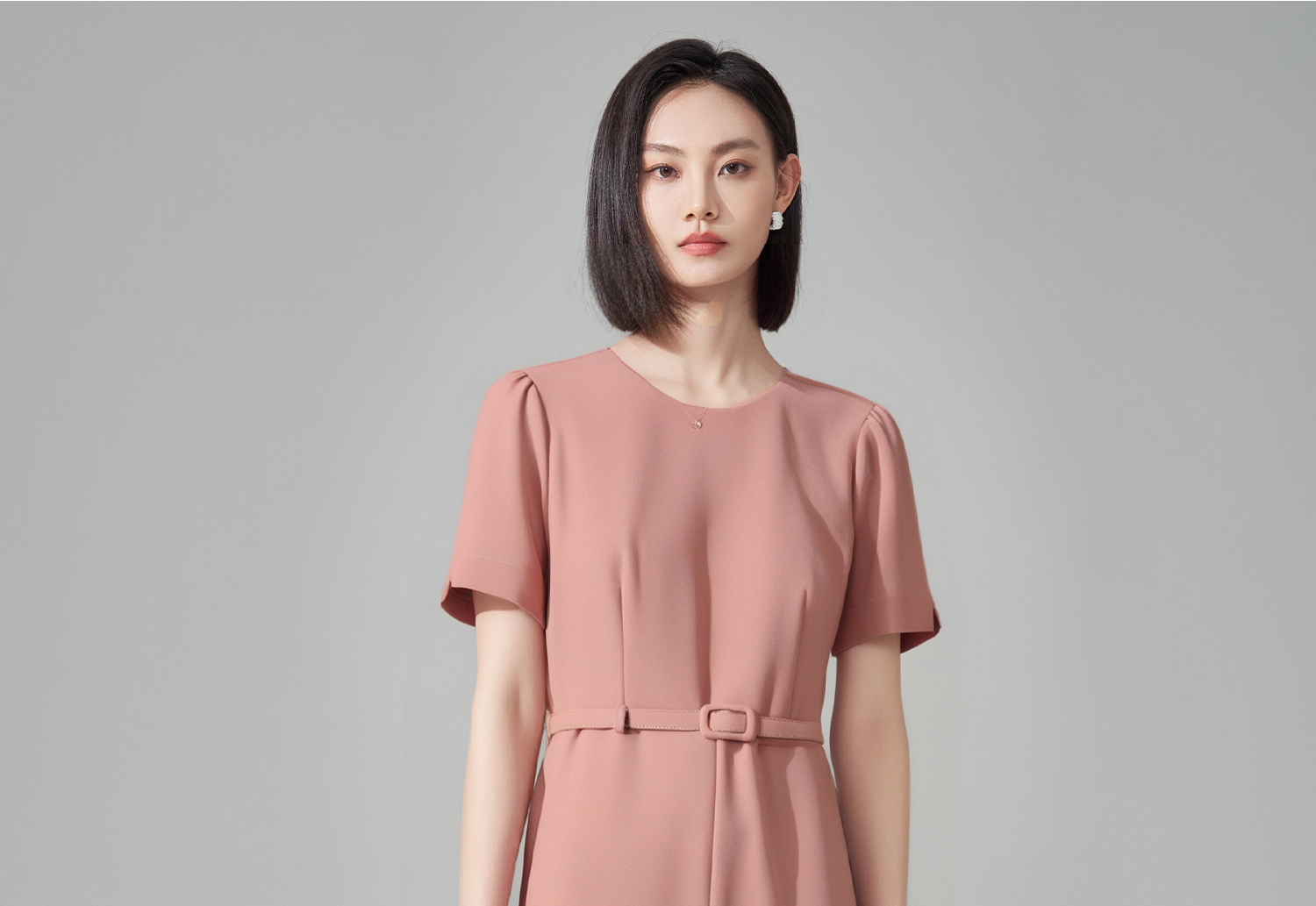 剩S/M/L 米思阳2025夏季新款气质优雅粉色连衣裙时尚大气正装裙子女1113