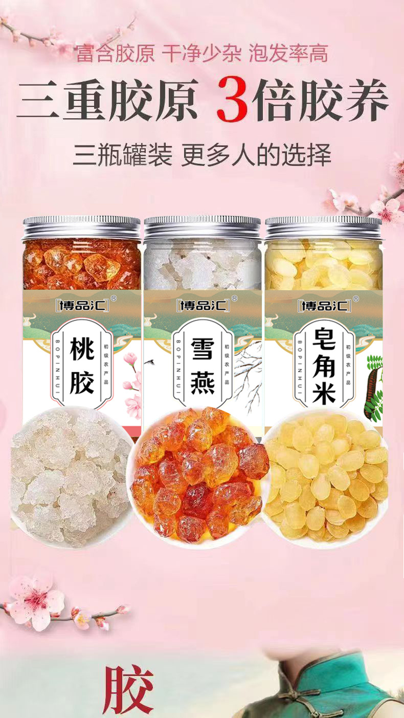 【胶原三宝❗️桃胶+雪燕+皂角米】天然三重胶原,天然无熏硫只臻选真实材料,高倍泡发,香甜软糯,Q弹不松散, 燕窝银耳伴侣拉丝雪燕 桃花泪桃胶QQ