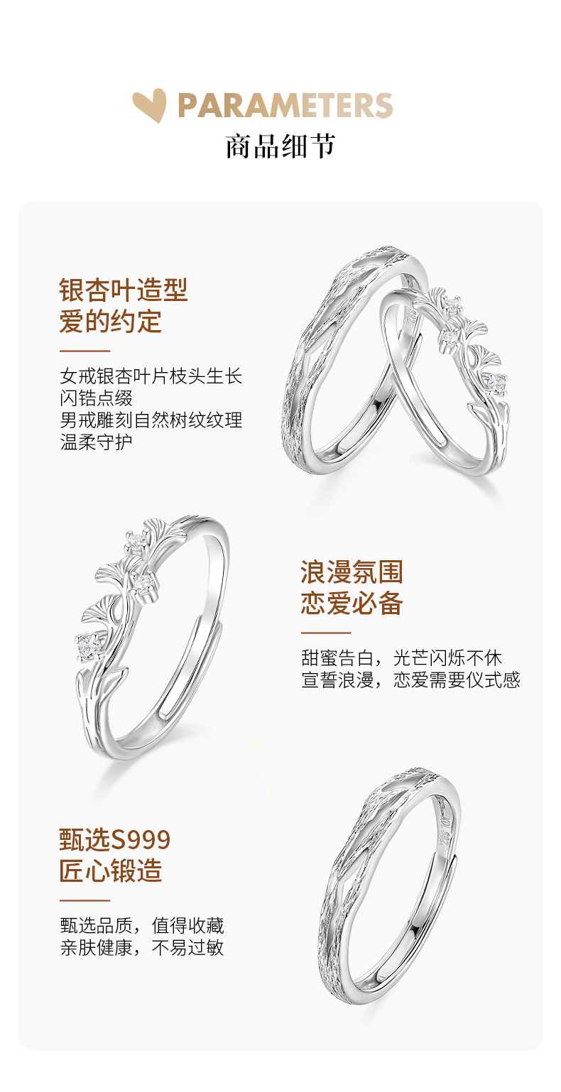 【999足银】卡蒂罗KADER 小杏运情侣对戒 幸好有你轻奢小众质感日常百搭温柔甜美高级感可调节一对 恋爱频率钟爱久久