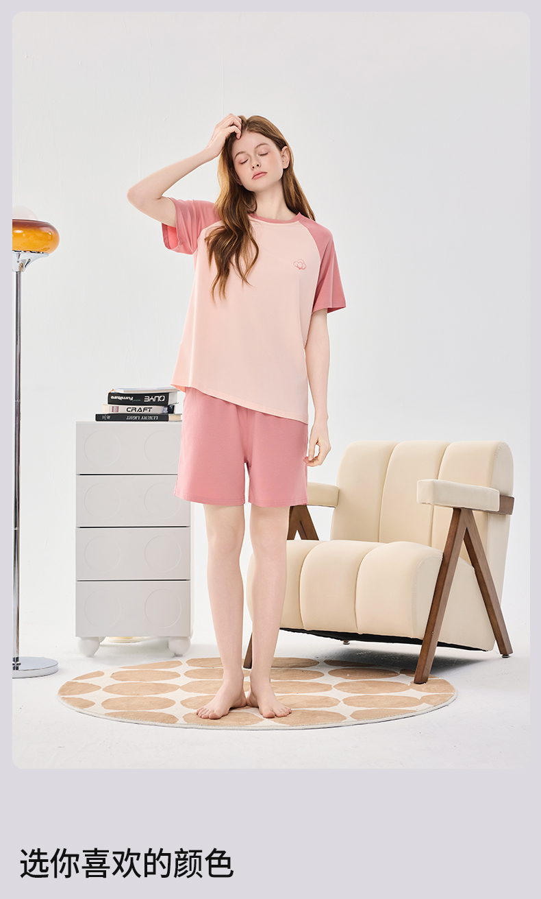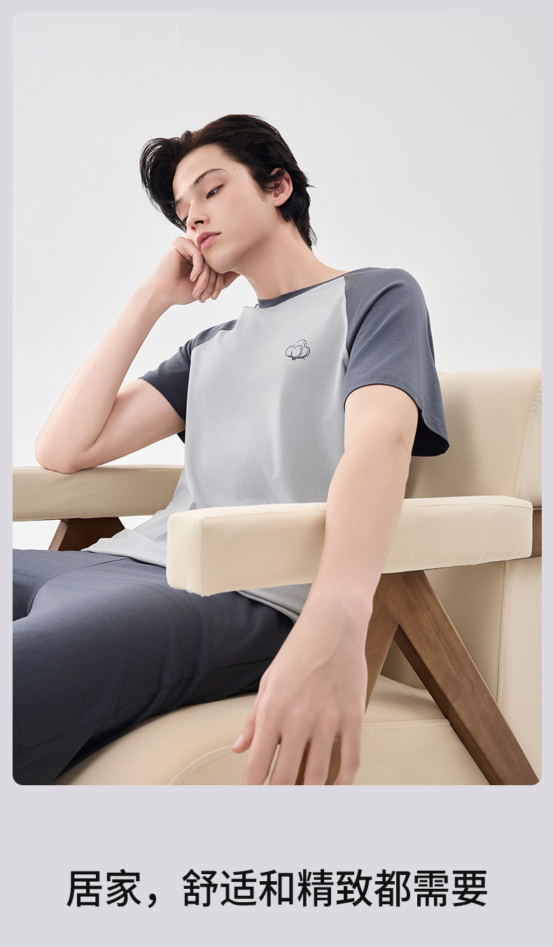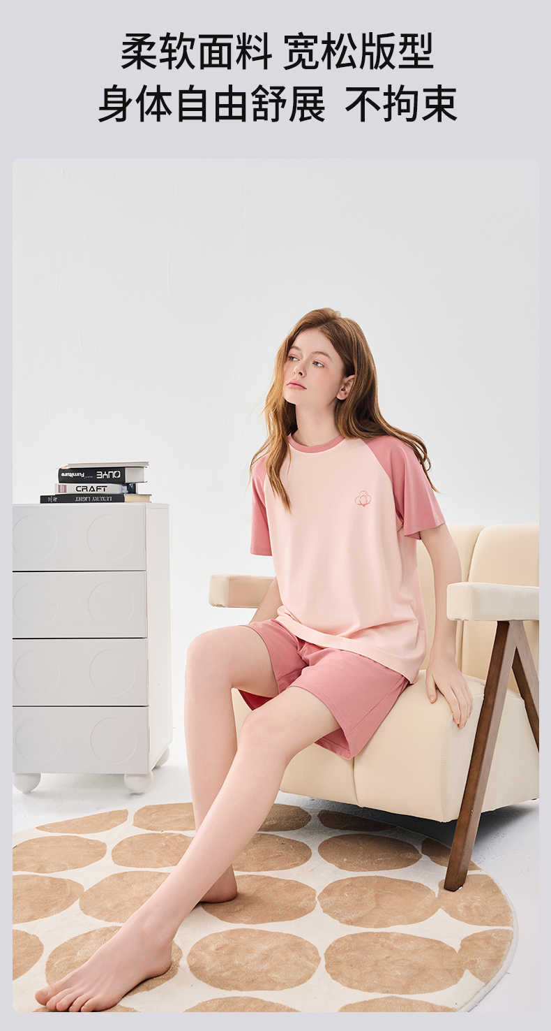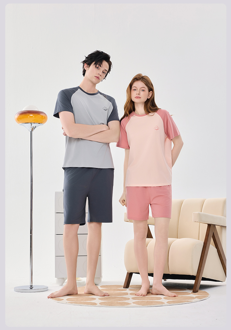 限时9折【棉花烫印短袖短裤】A类 柔软面料 宽松版型 亲肤透气 保持肌肤干爽DKM989B-CC