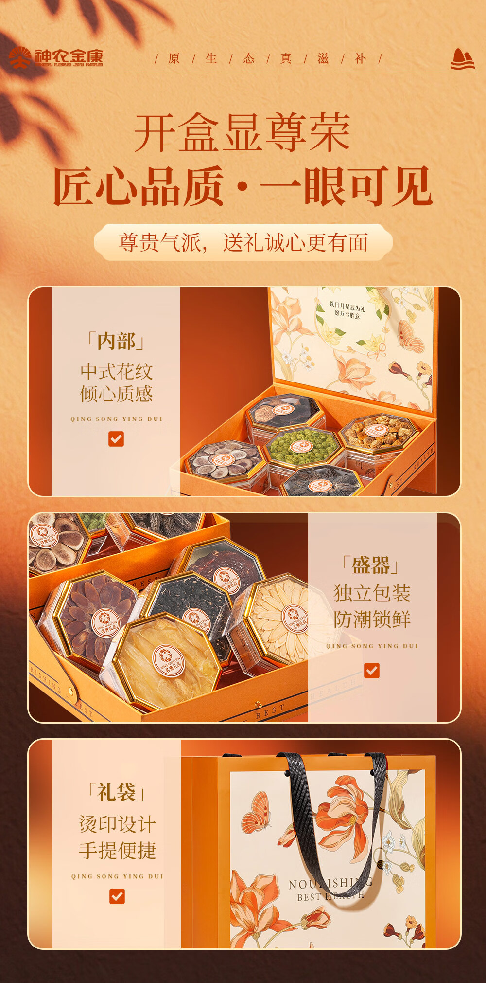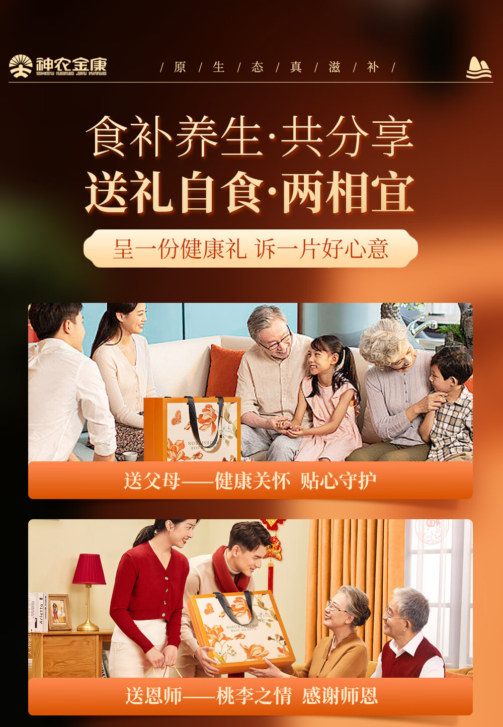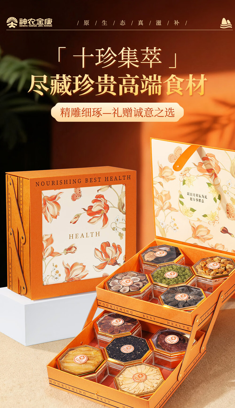 神农金康 人参鹿茸石斛西洋参鱼胶十拼礼盒318克滋补营养品补品送礼送长辈
