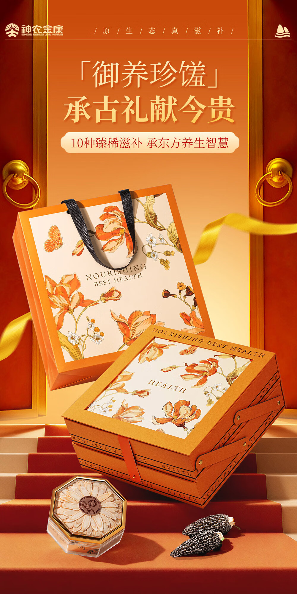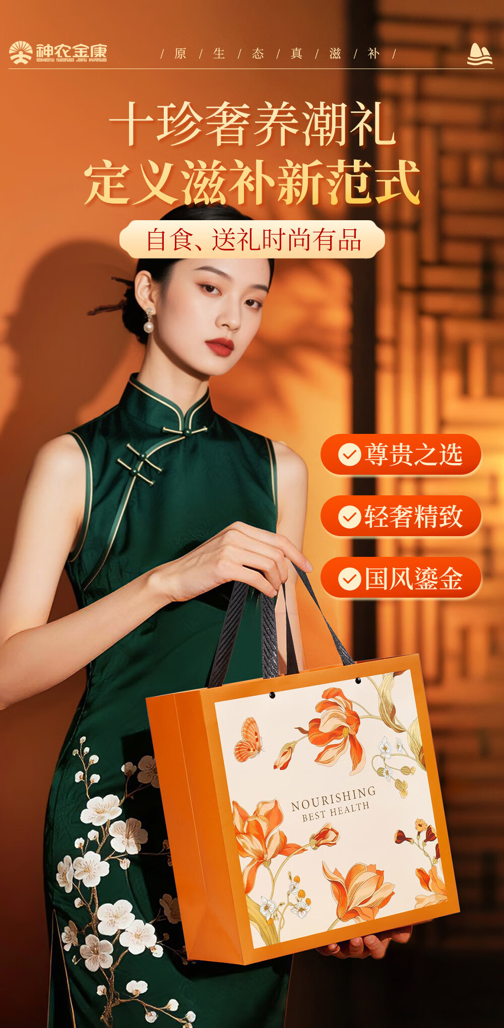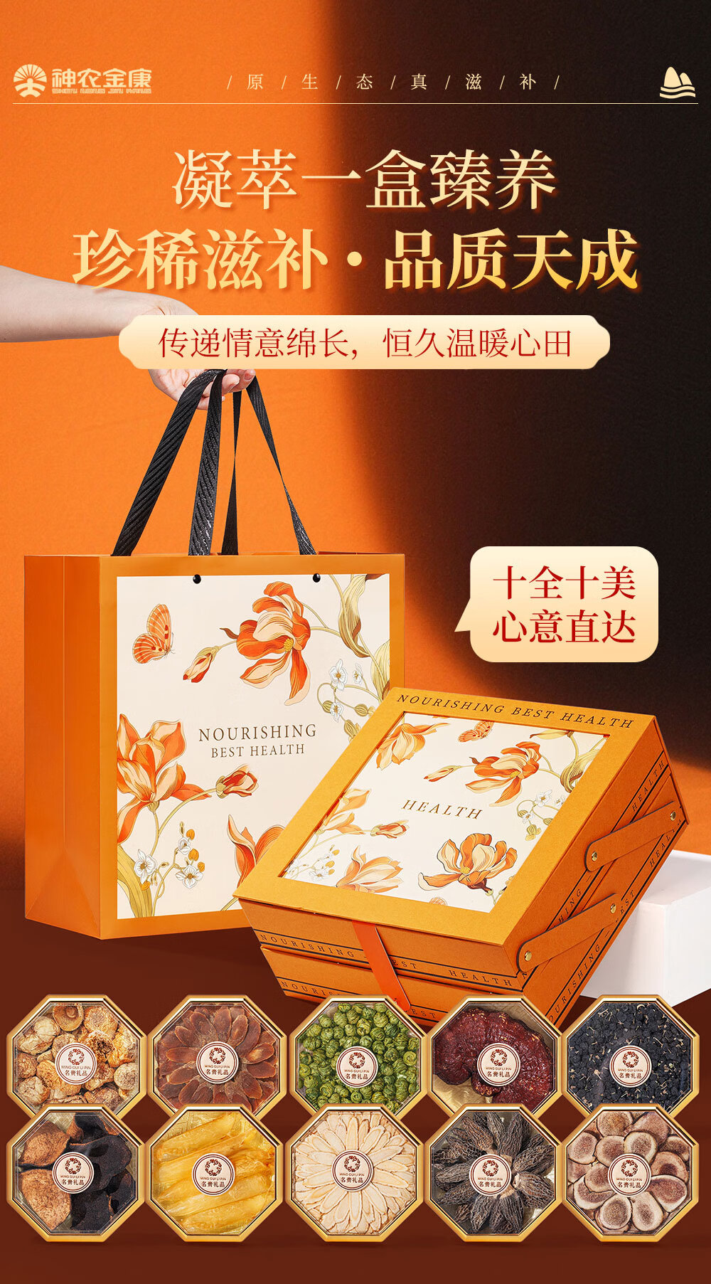 神农金康 人参鹿茸石斛西洋参鱼胶十拼礼盒318克滋补营养品补品送礼送长辈