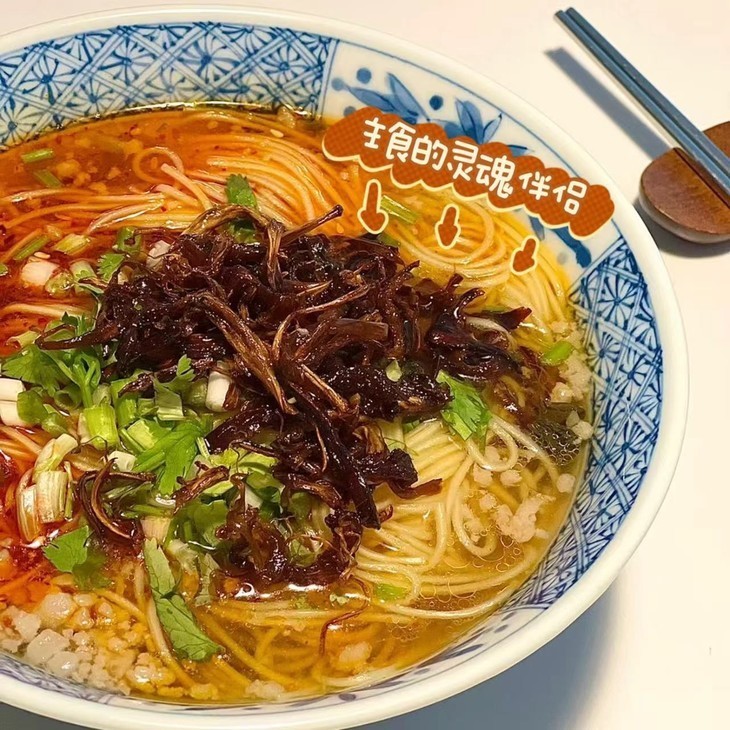 下饭下菜拌面都是一绝的,夹上一筷子鸡枞,滴上三五滴油,一碗普普通通的清汤面,也变得“肉香”四溢~