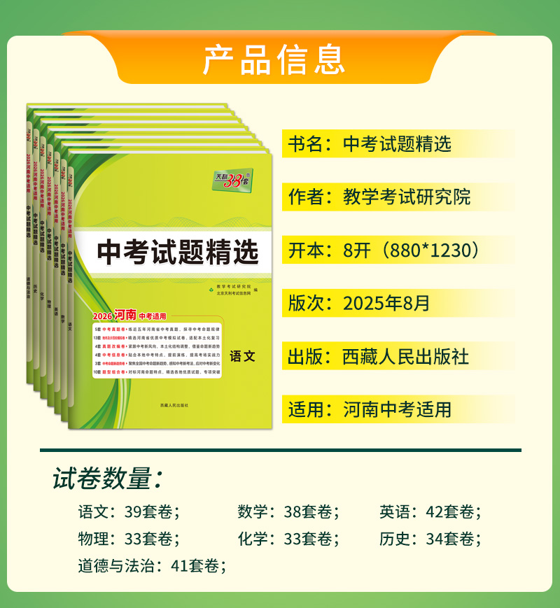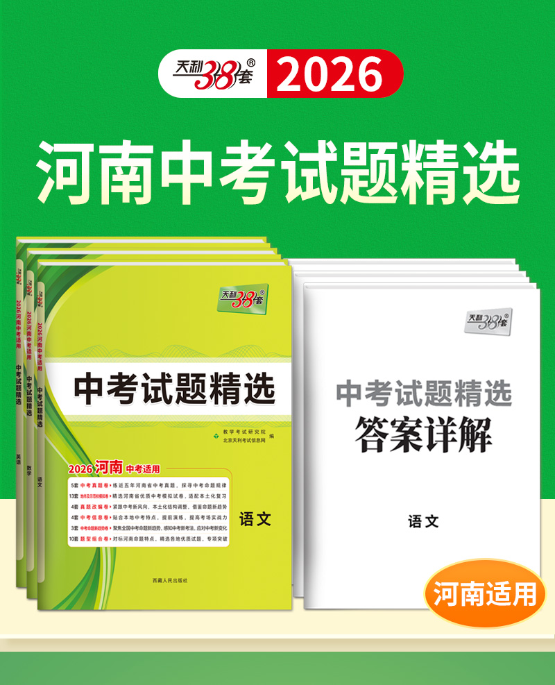 天利38套 2026河南中考试题精选 语文 数学 英语 物理 化学 历史 道德与法治