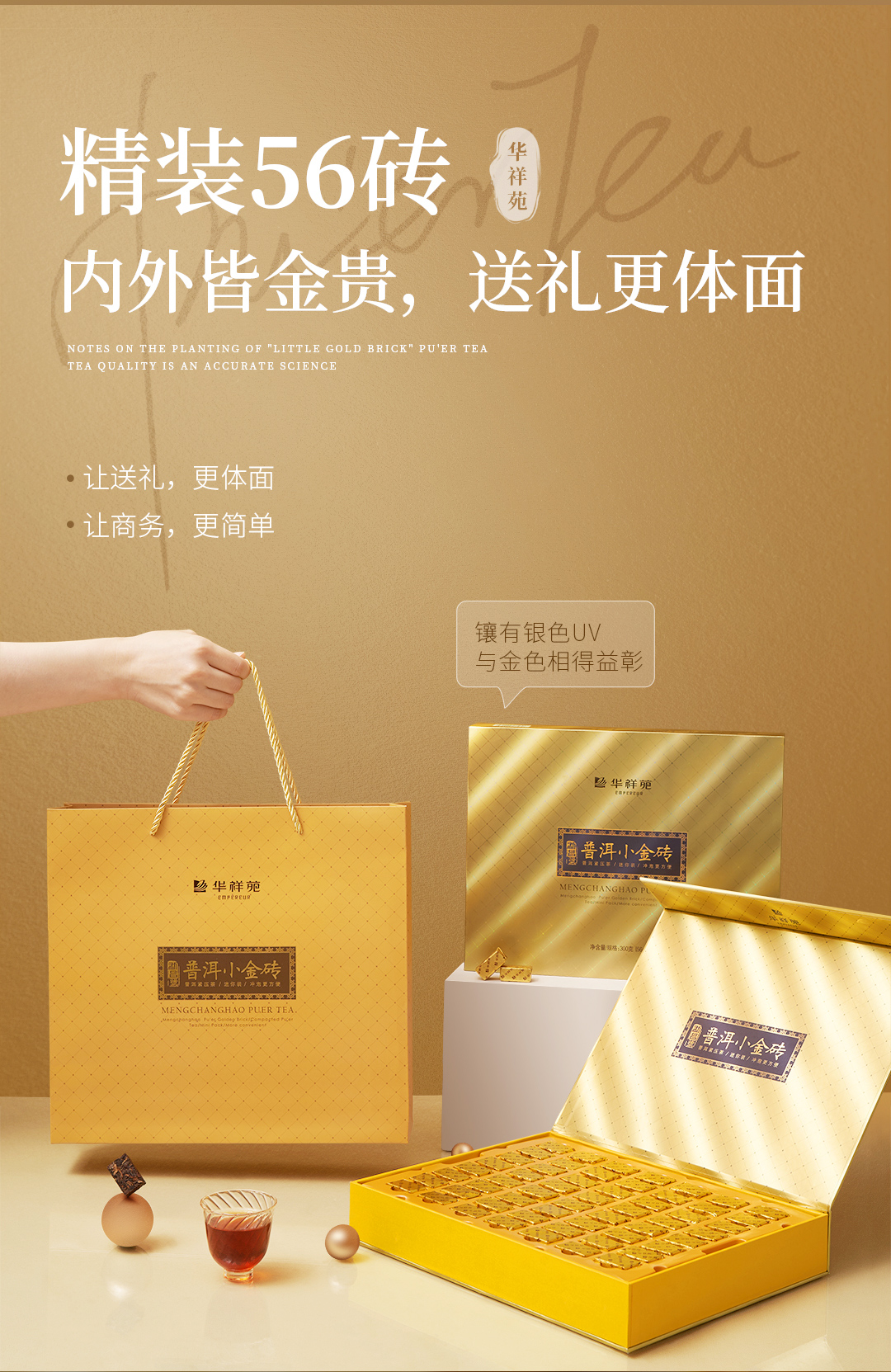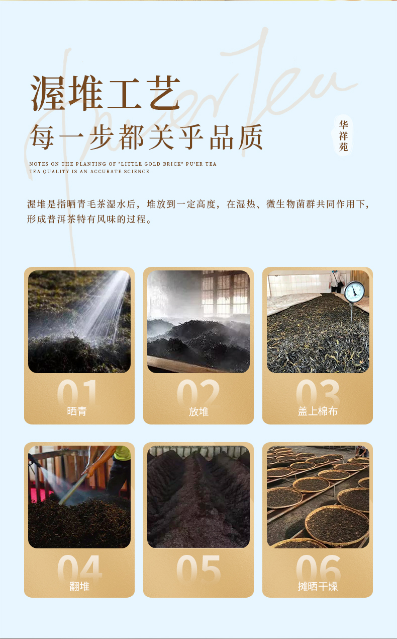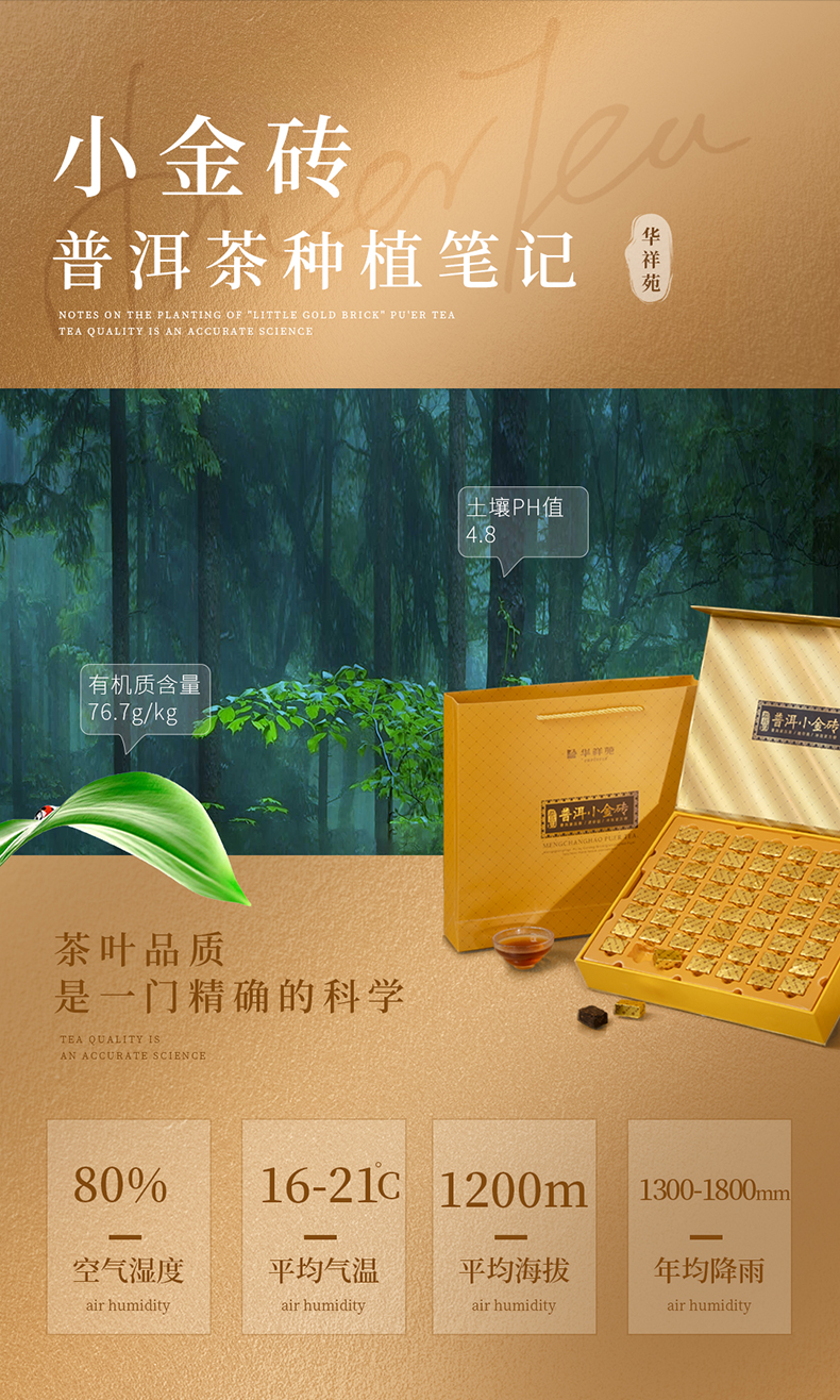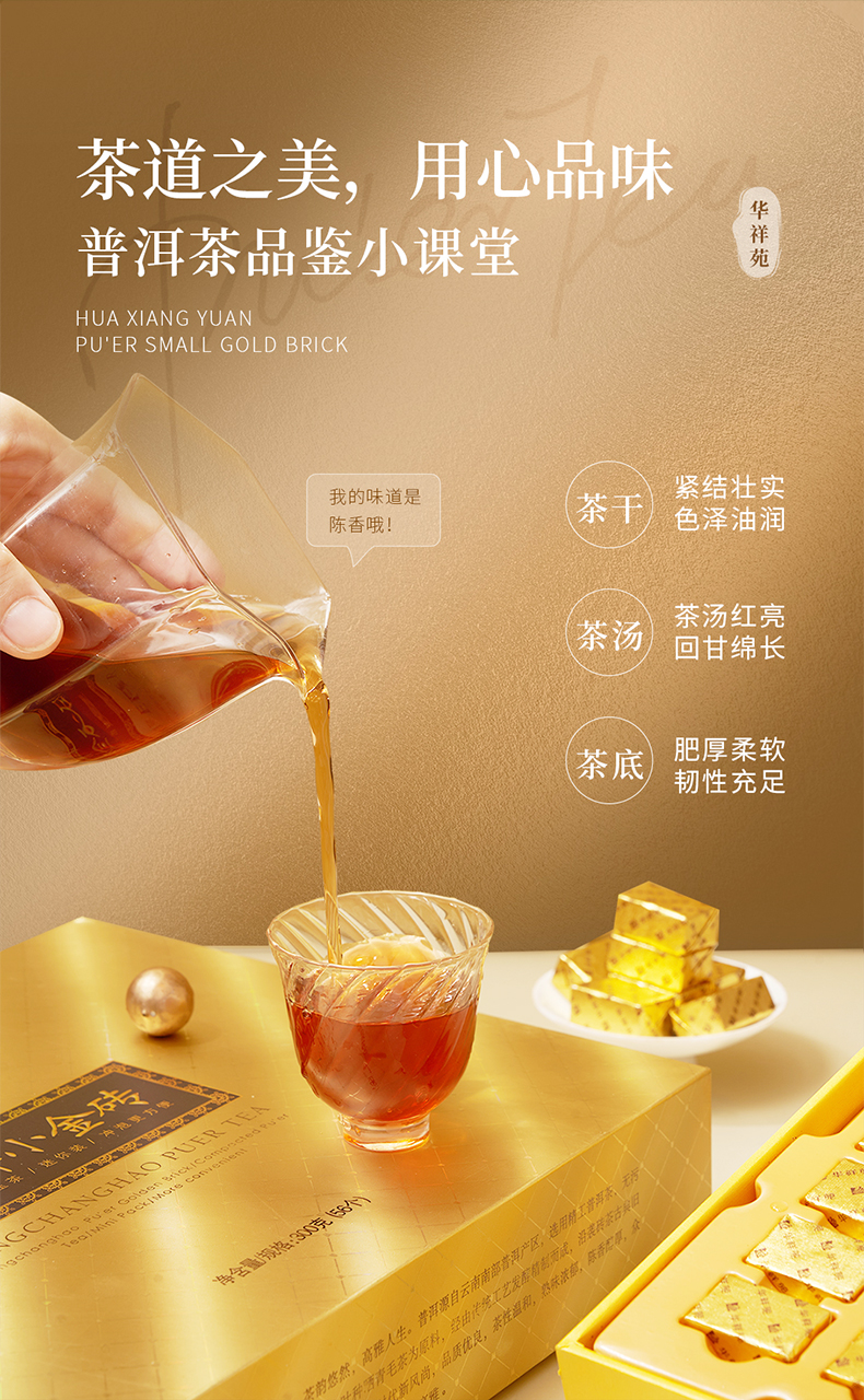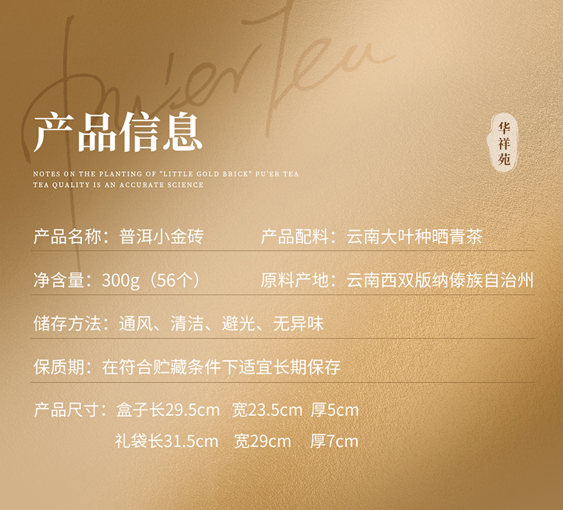华祥苑 普洱熟茶 小金砖 3年陈普洱茶 茶叶 礼盒 300g