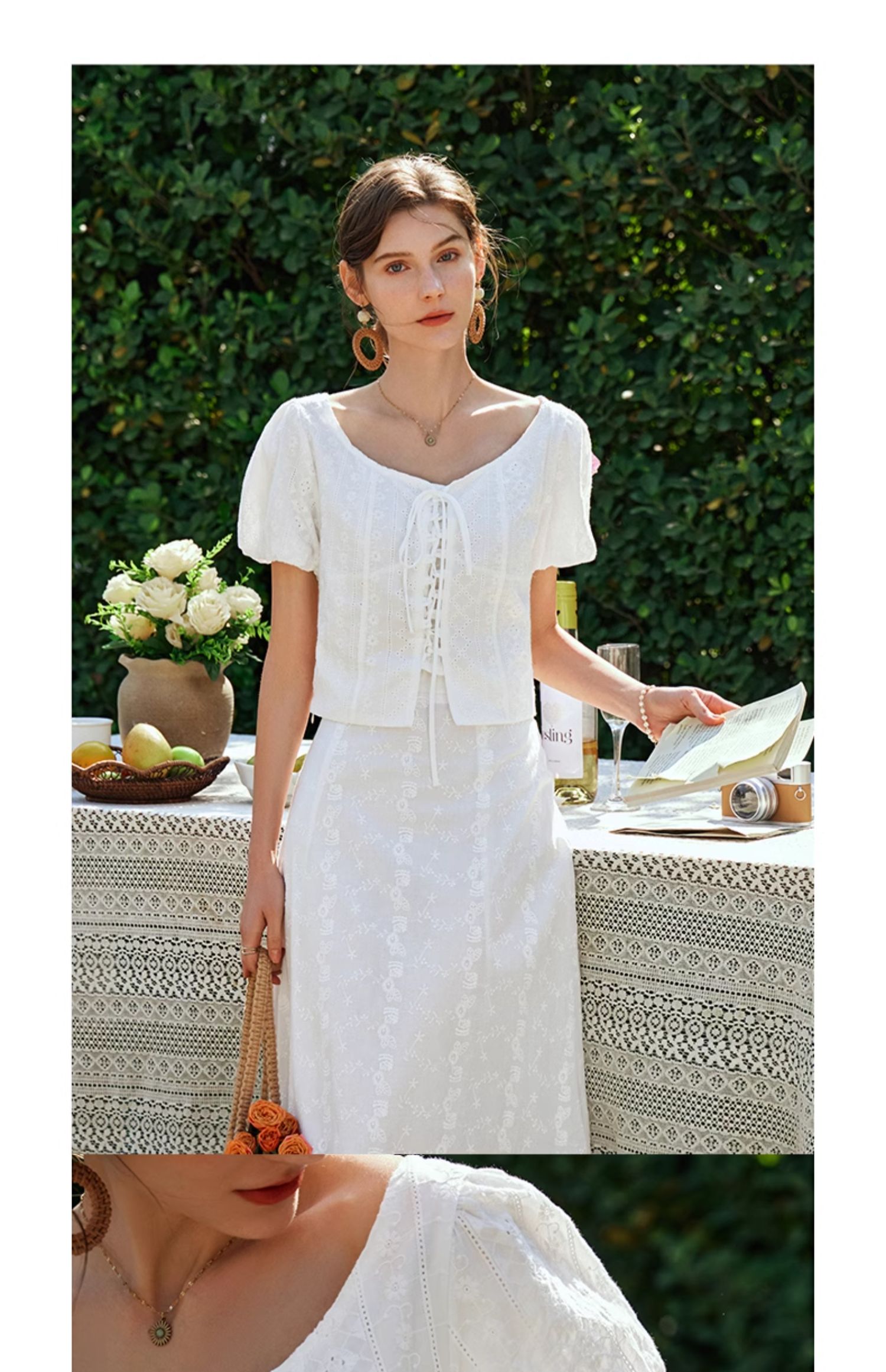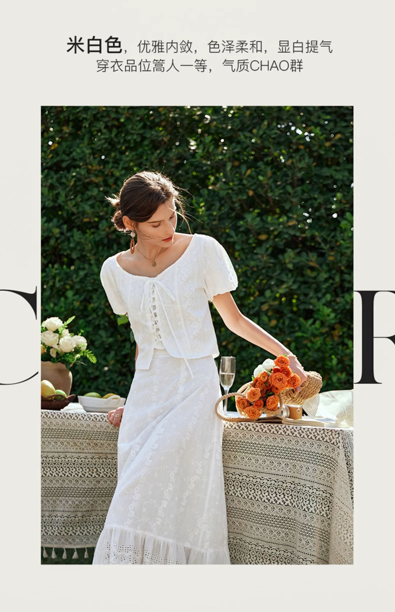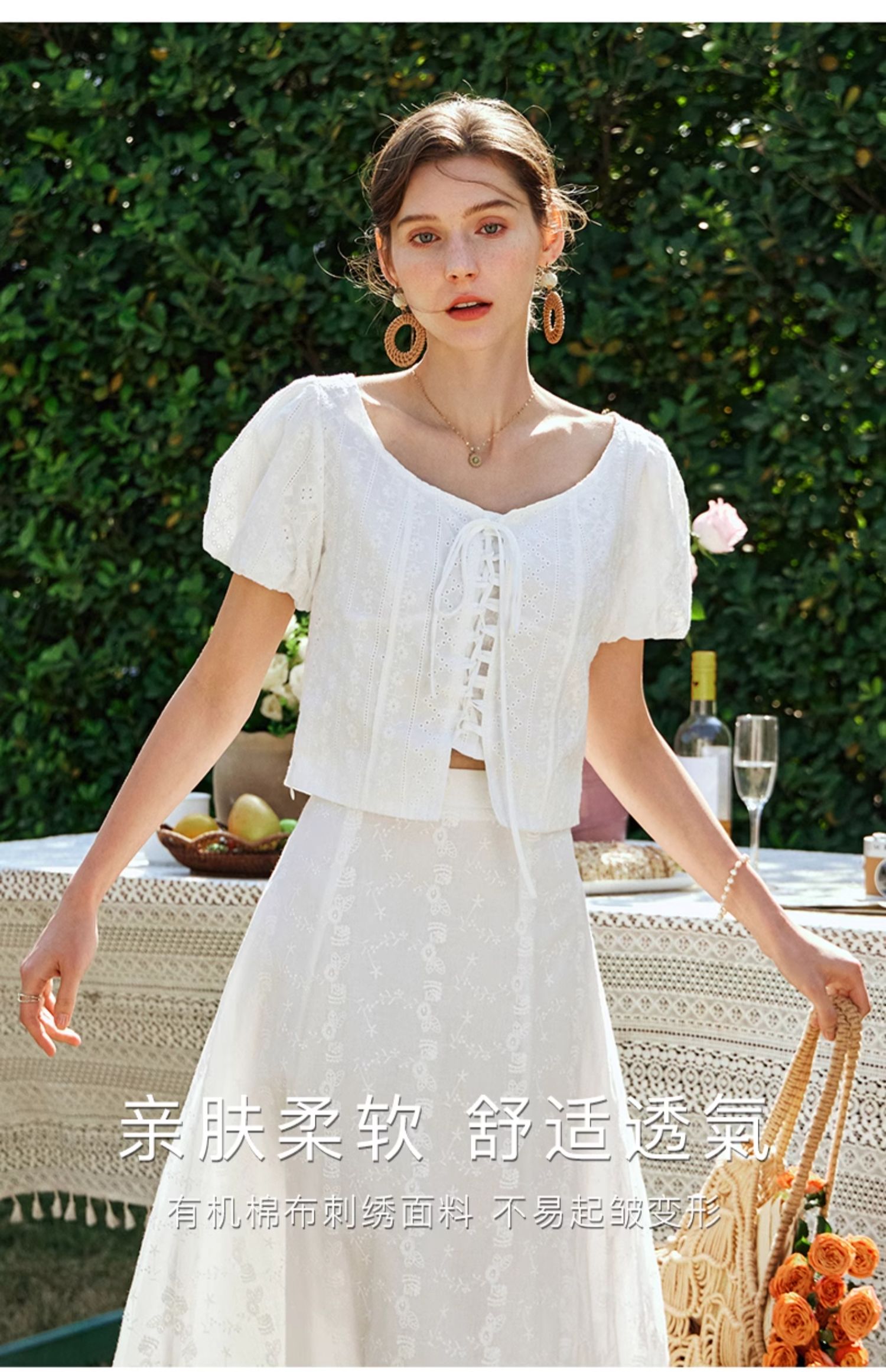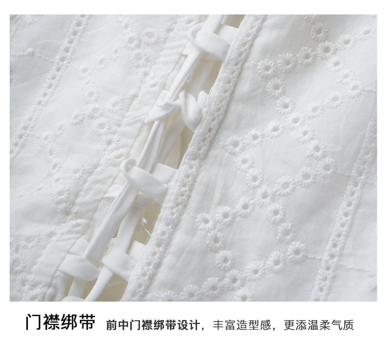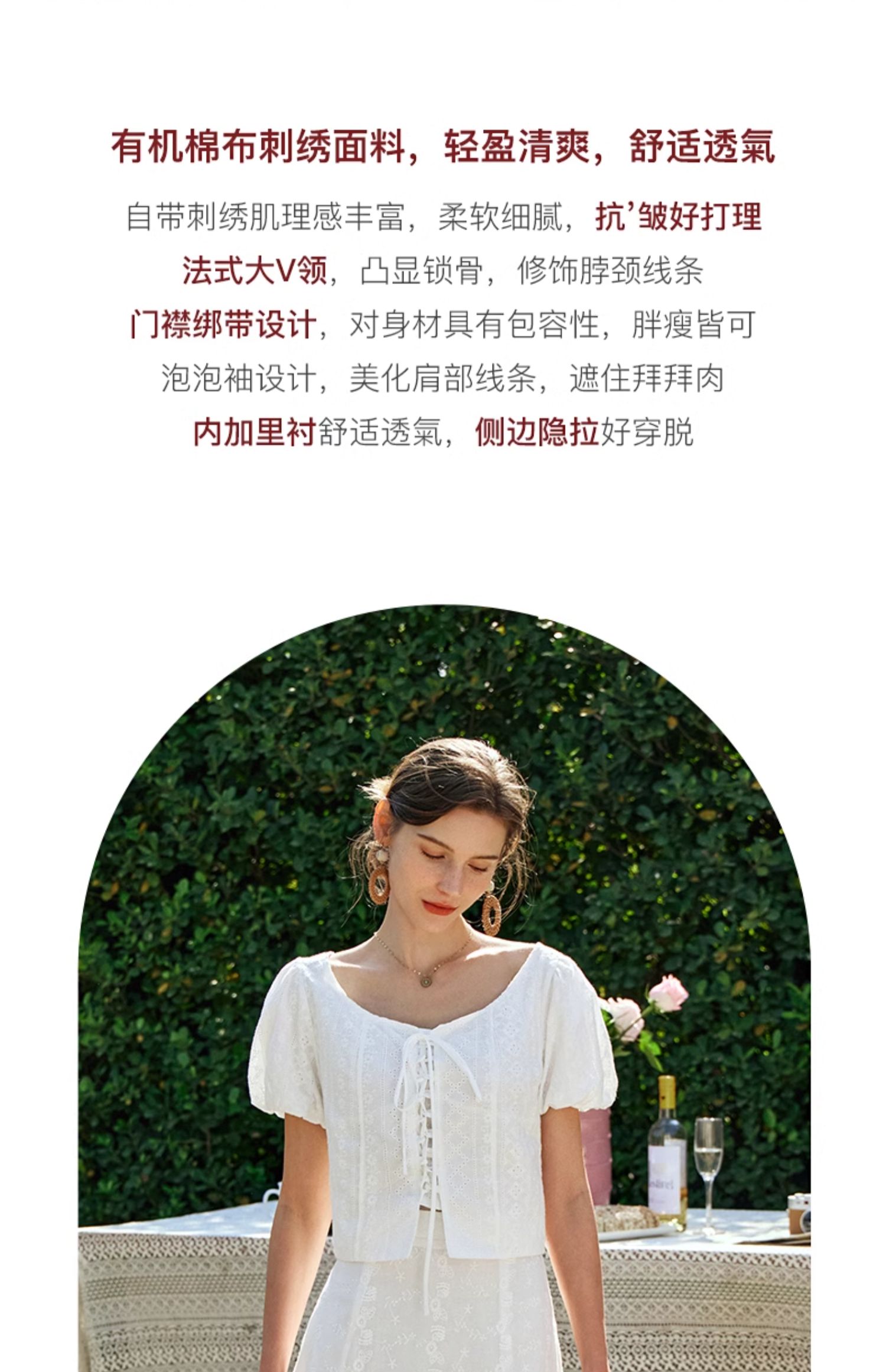 OLrain欧芮儿法式白色雪纺衫女春季2024新款V领小众刺绣甜美小衫