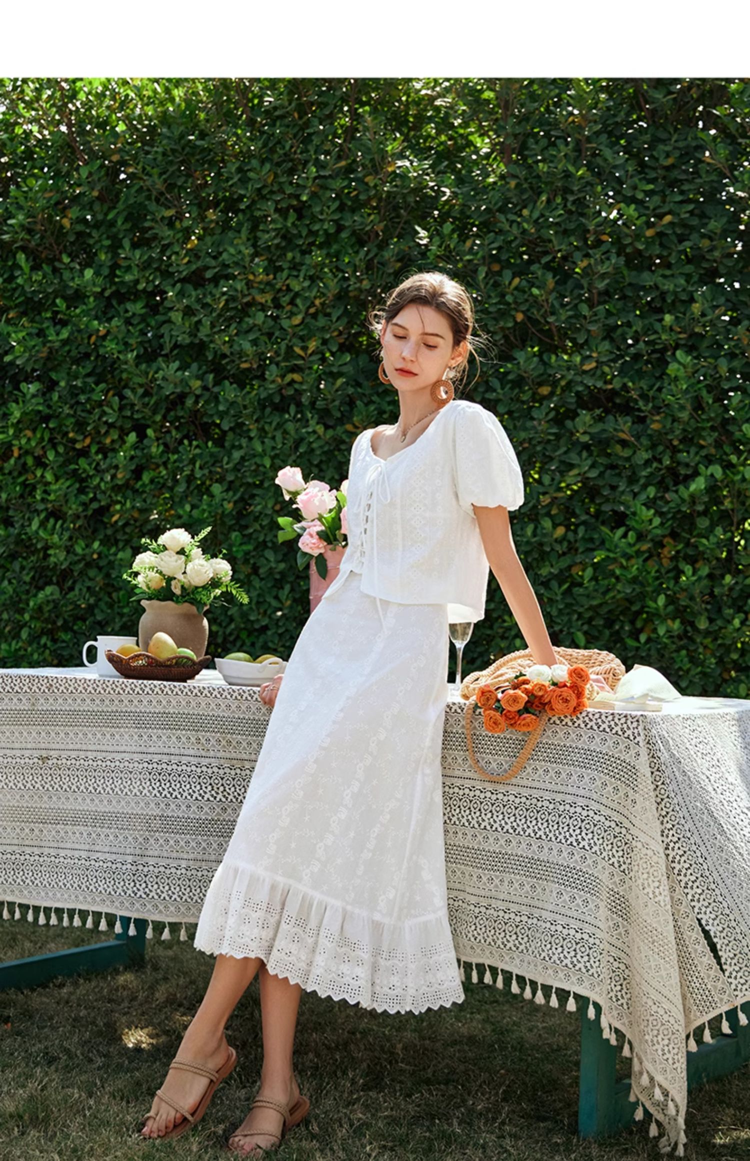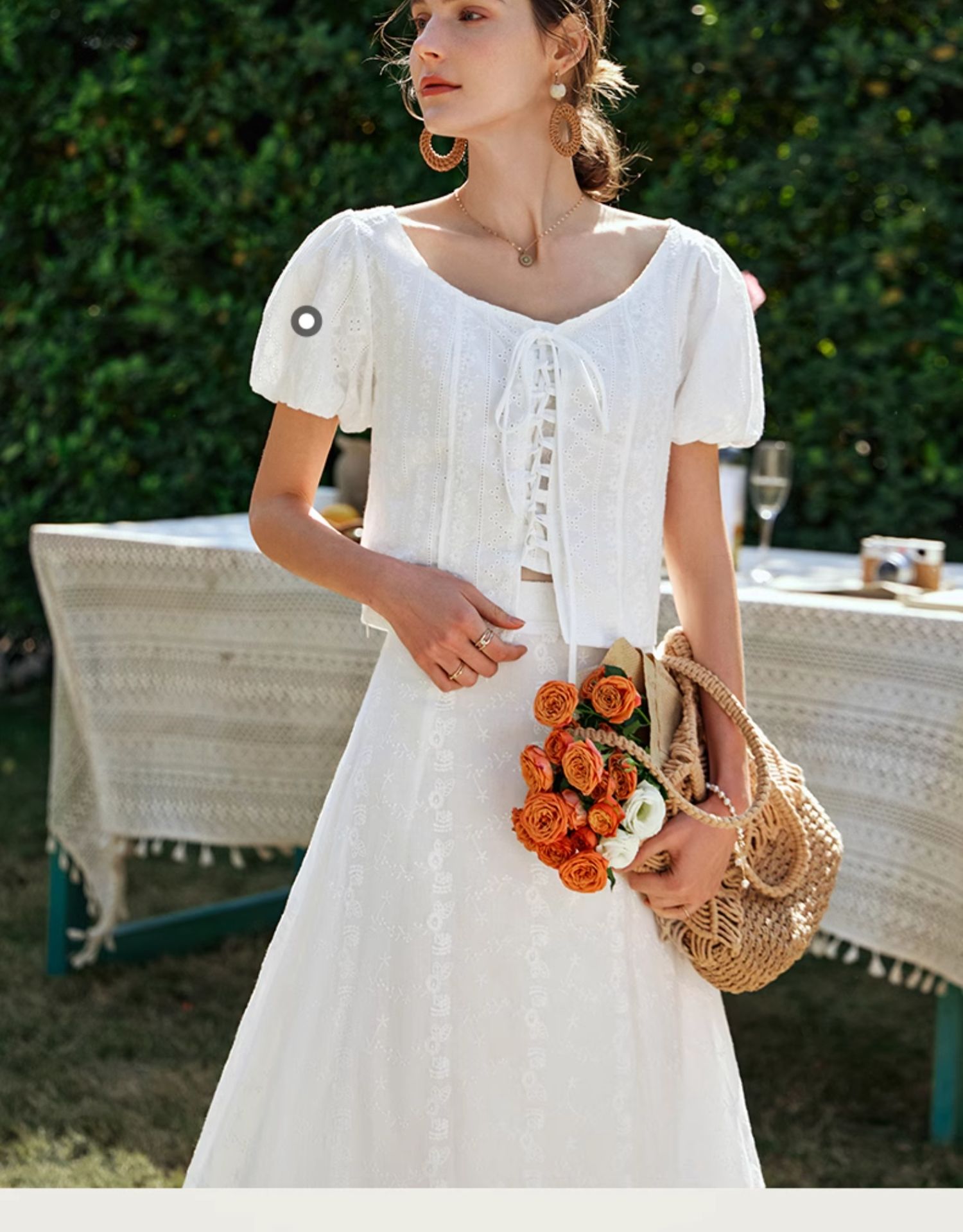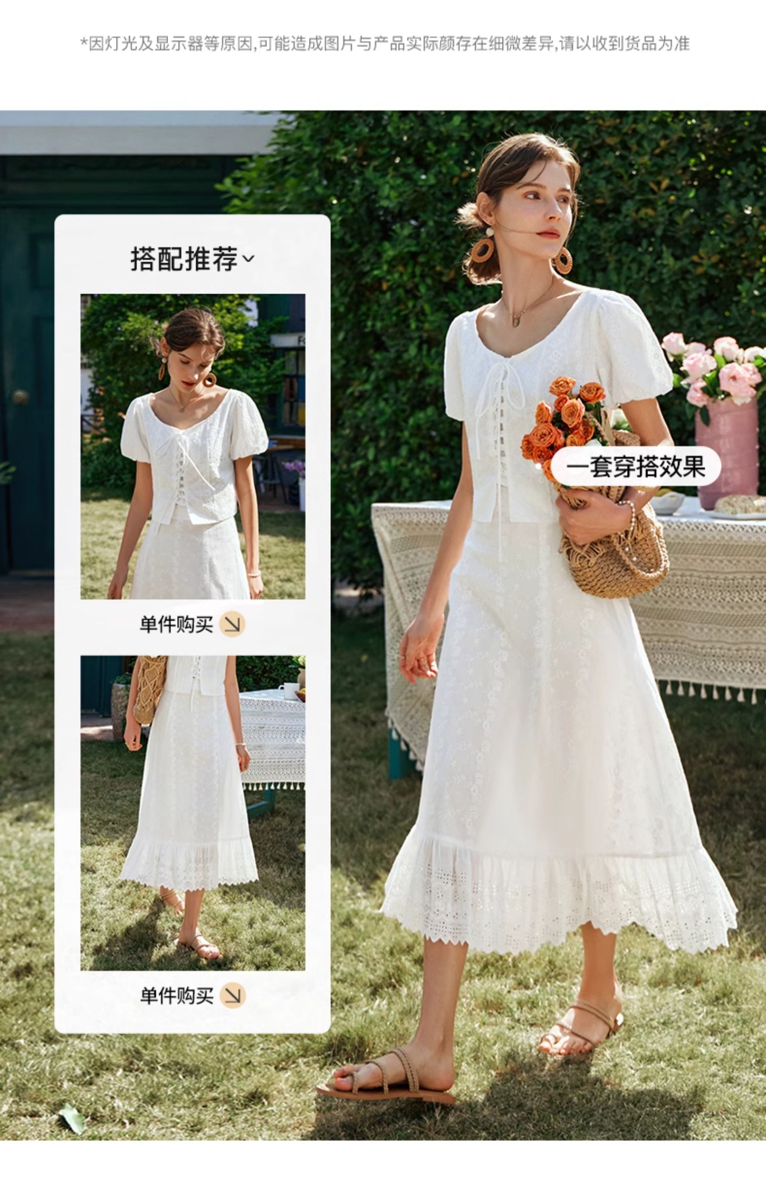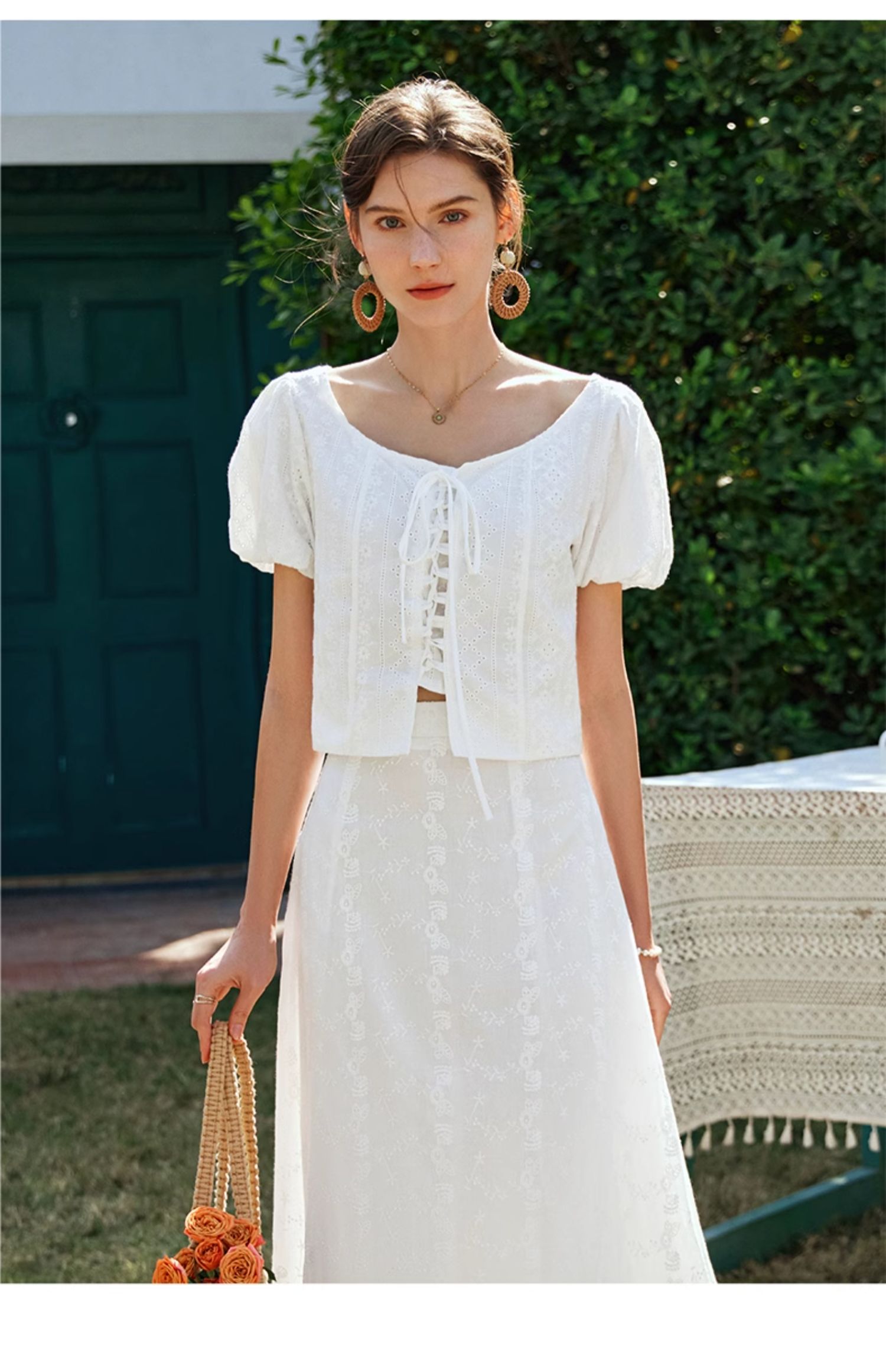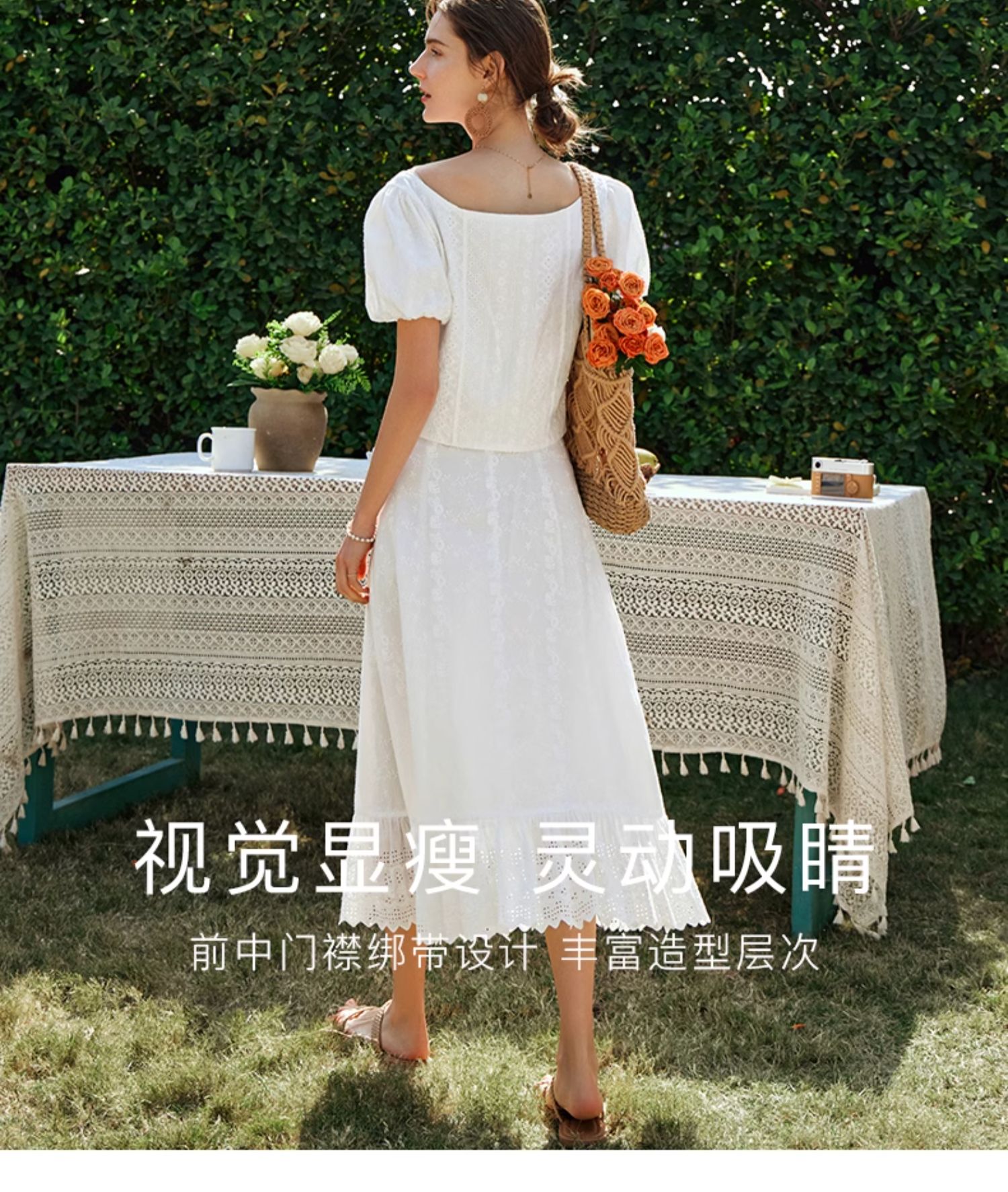 OLrain欧芮儿法式白色雪纺衫女春季2024新款V领小众刺绣甜美小衫