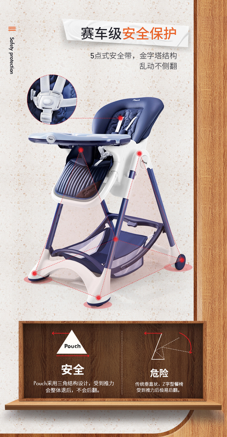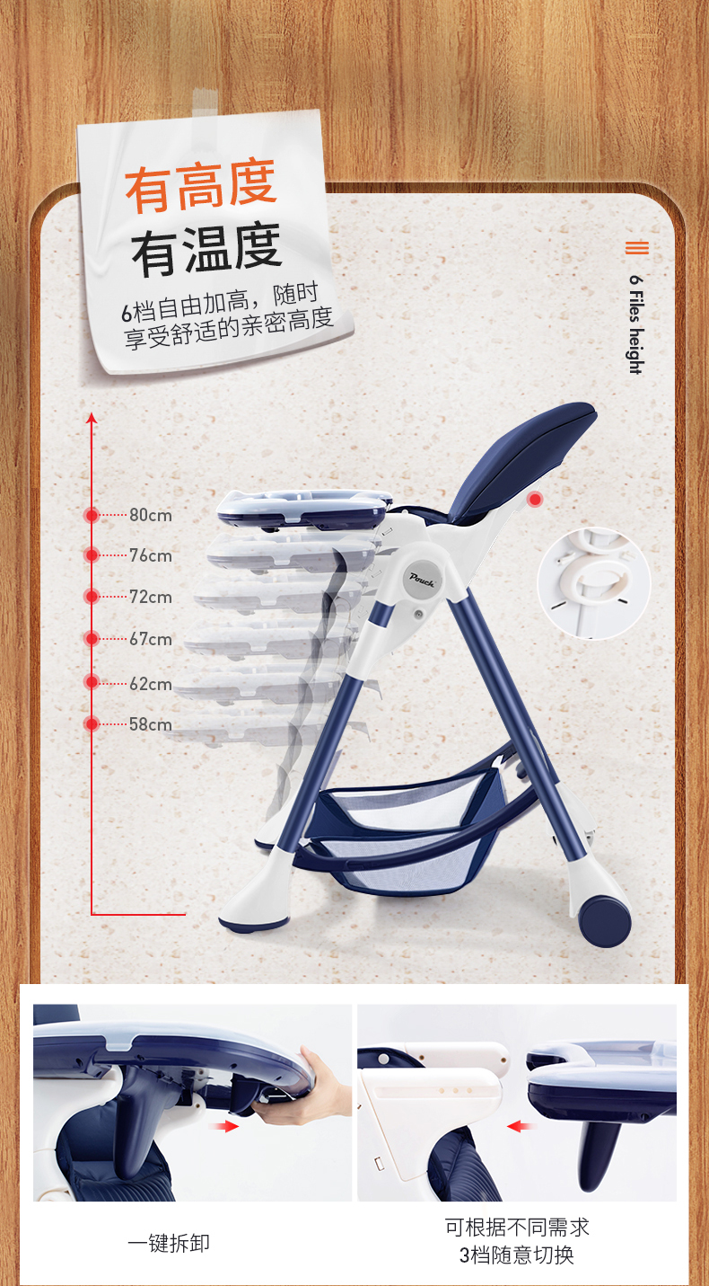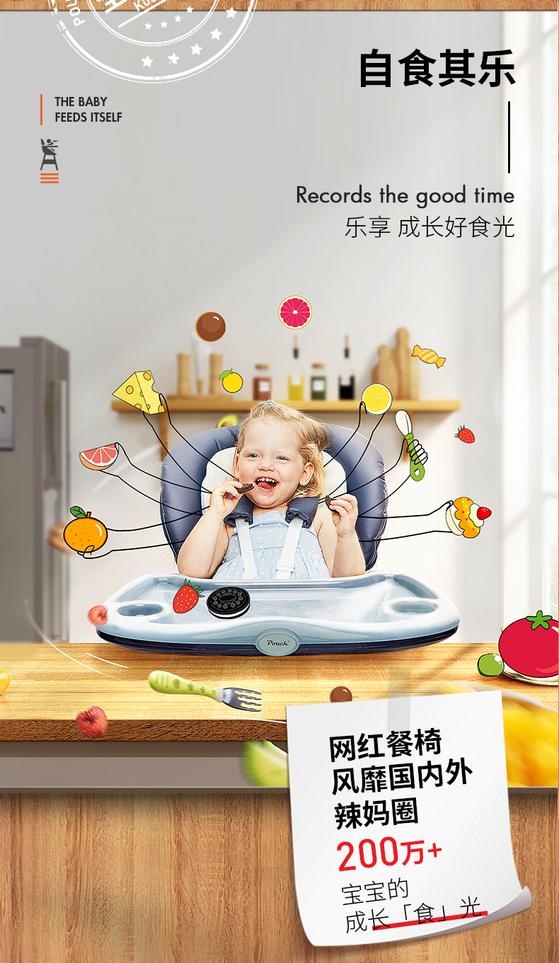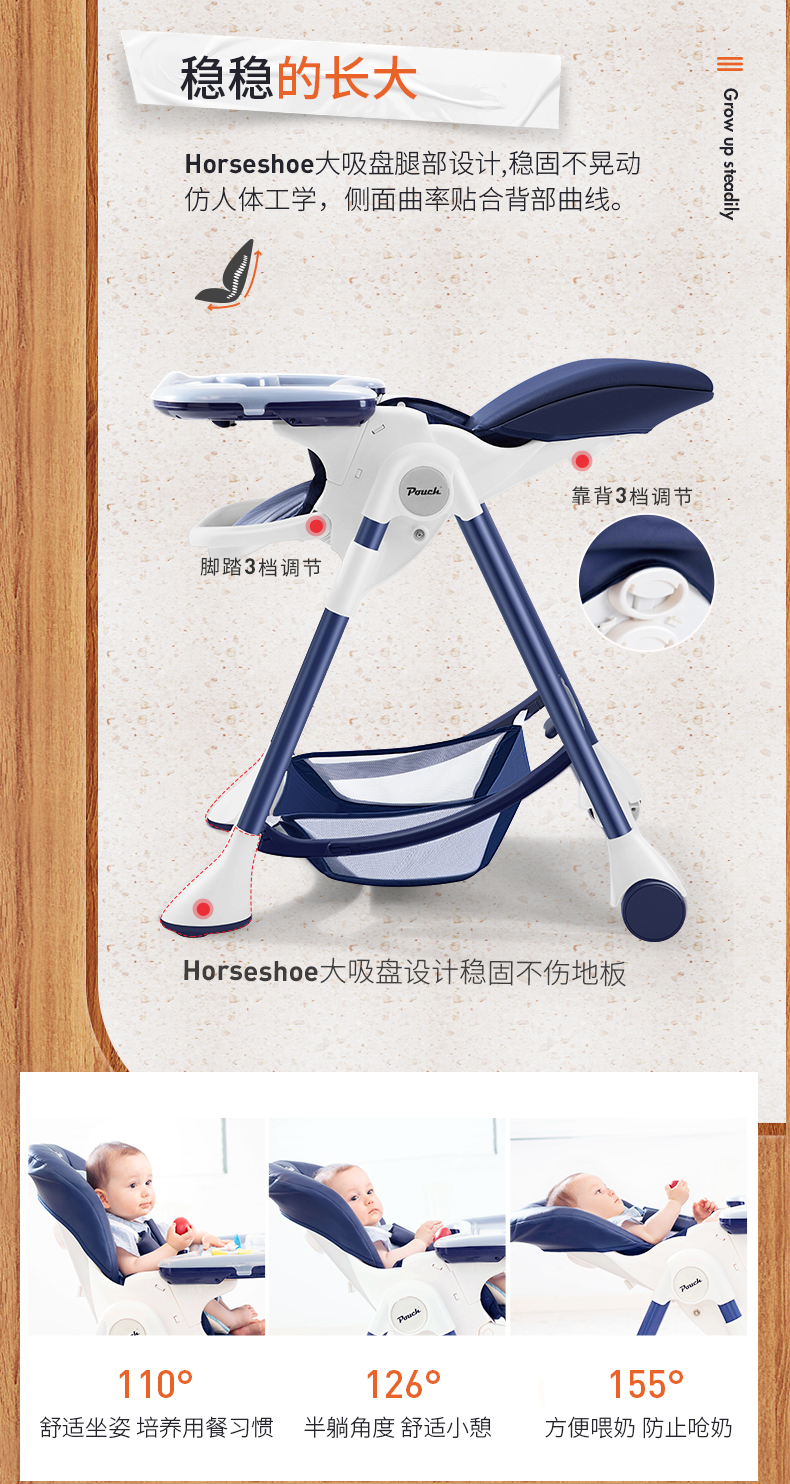 Pouch K05plus宝宝餐椅儿童多功能婴儿餐椅可折叠便携式座椅桌椅FX