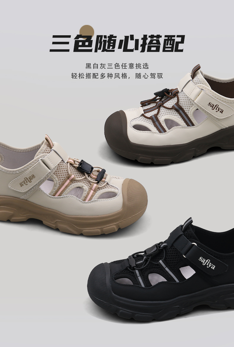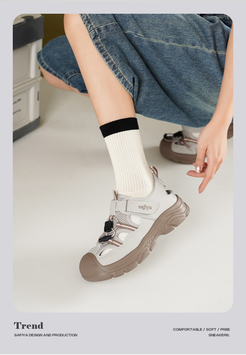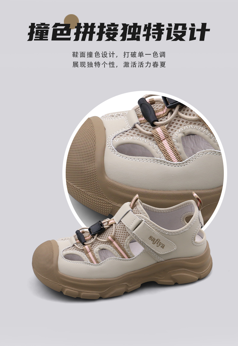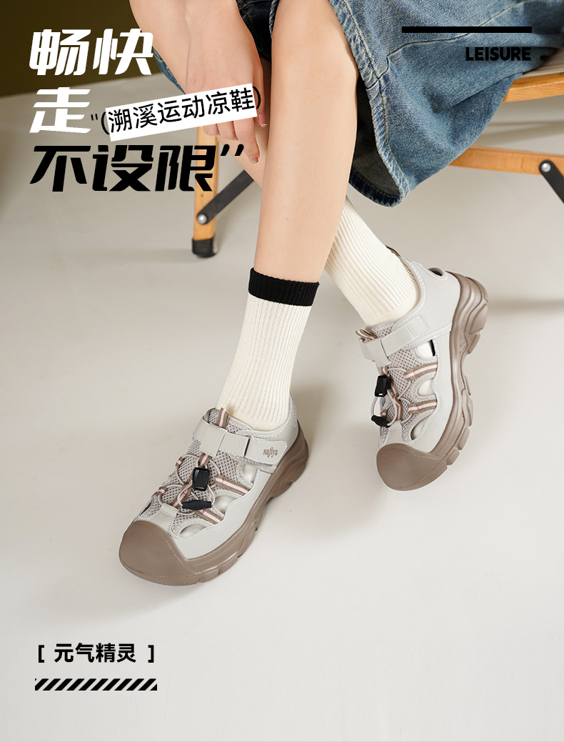 Safiya/索菲娅2025春时尚魔术贴外穿撞色休闲丑萌溯溪运动凉鞋 SFD1112417