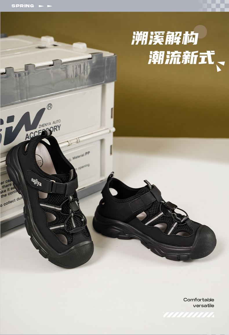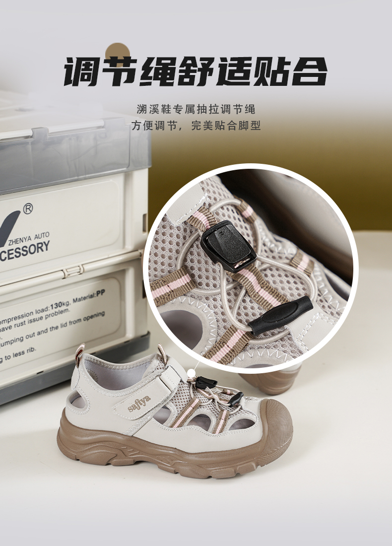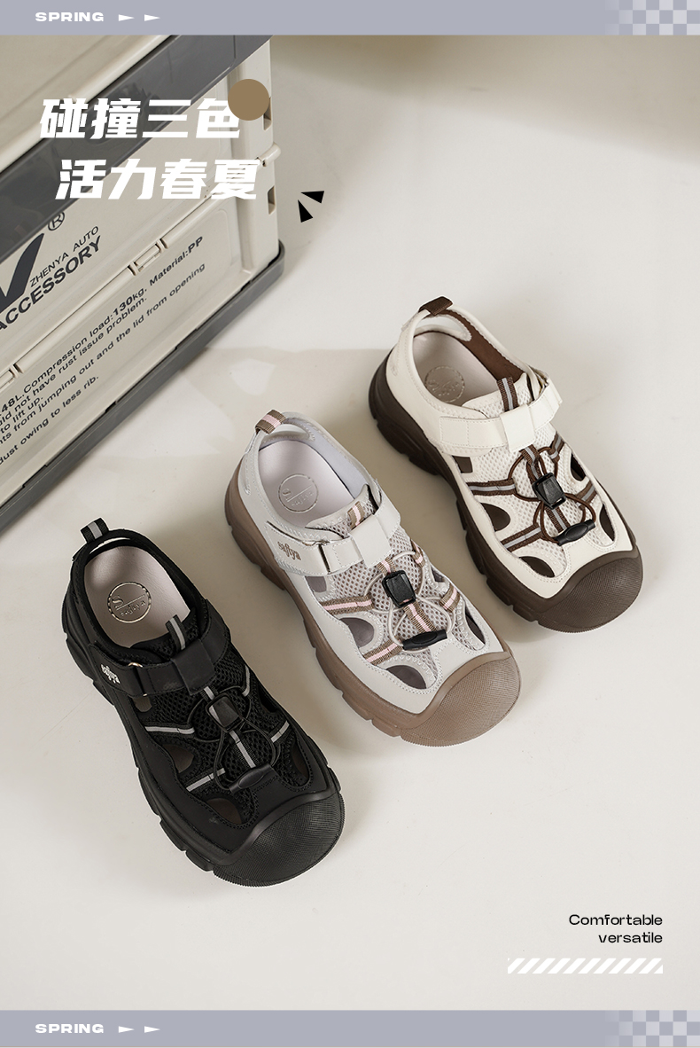 Safiya/索菲娅2025春时尚魔术贴外穿撞色休闲丑萌溯溪运动凉鞋 SFD1112417
