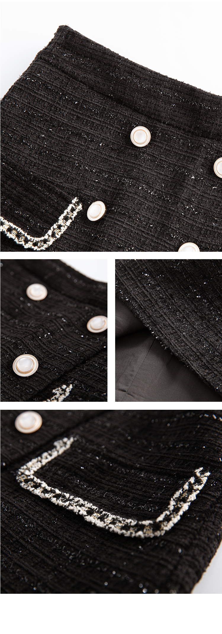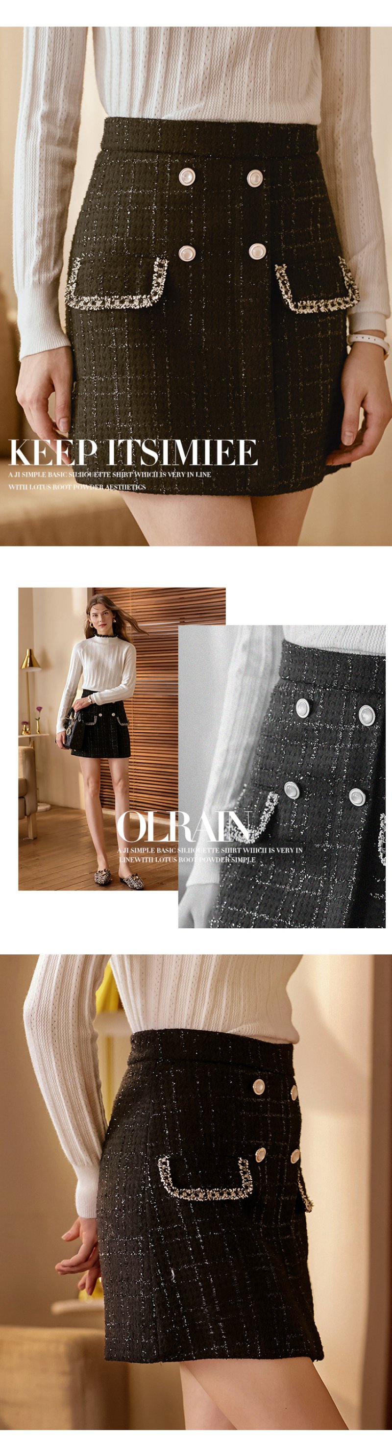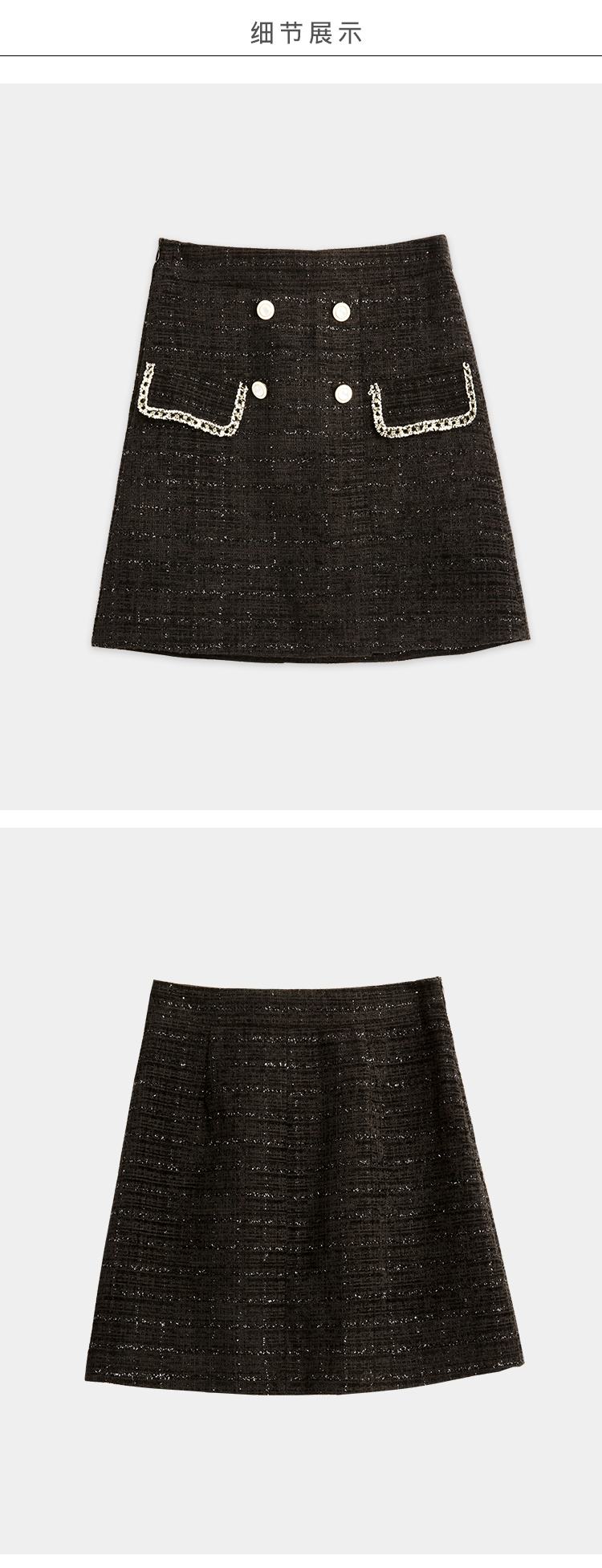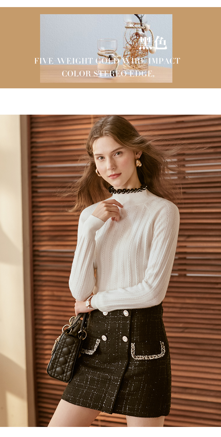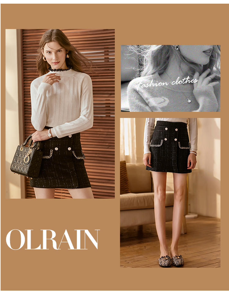 欧芮儿轻熟型高腰半身裙女新款编织修身A字短裙小黑裙