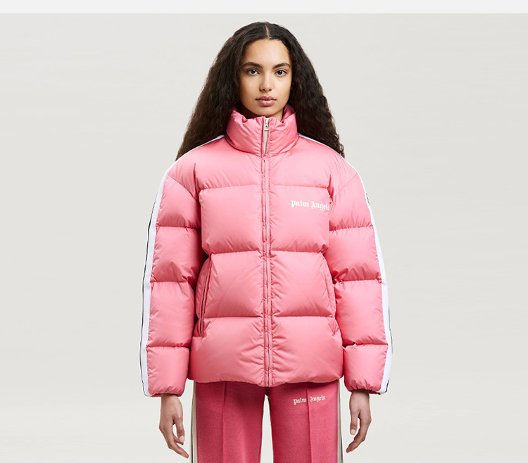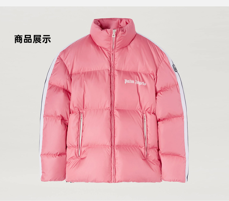 PALM ANGELS 棕榈天使 女士字母徽标印花侧条纹绗缝羽绒服 粉色 PWED014F22FAB001 3001