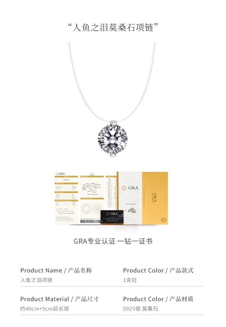 【1克拉自由】明星同款莫桑钻“人鱼之泪”~锁骨项链,blingbling简约高级大气,火彩质感光泽都不输真钻!