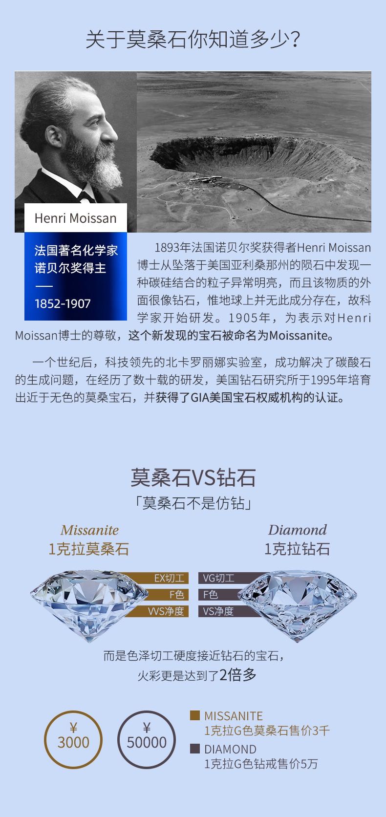 认准 D色、VVS1净度的优质莫桑钻,劣质的会发蓝发雾!
