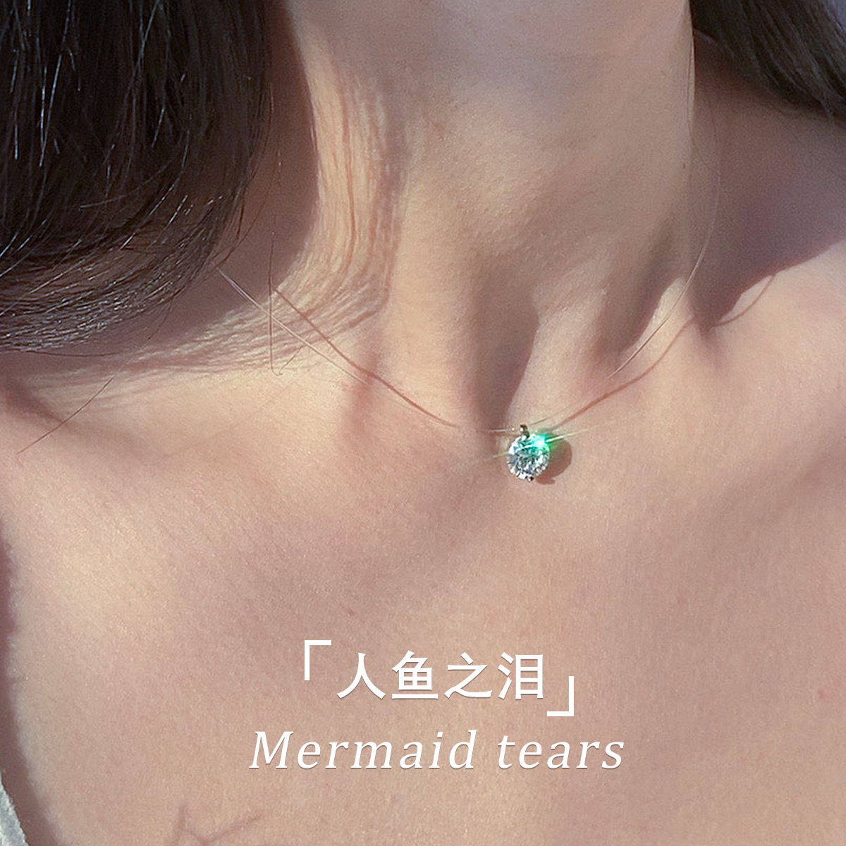 【品名】SHE.U明星同款克拉人鱼之泪锁骨项链