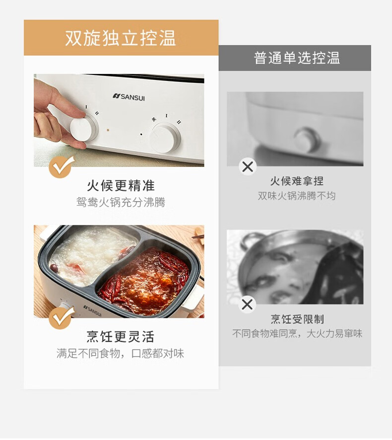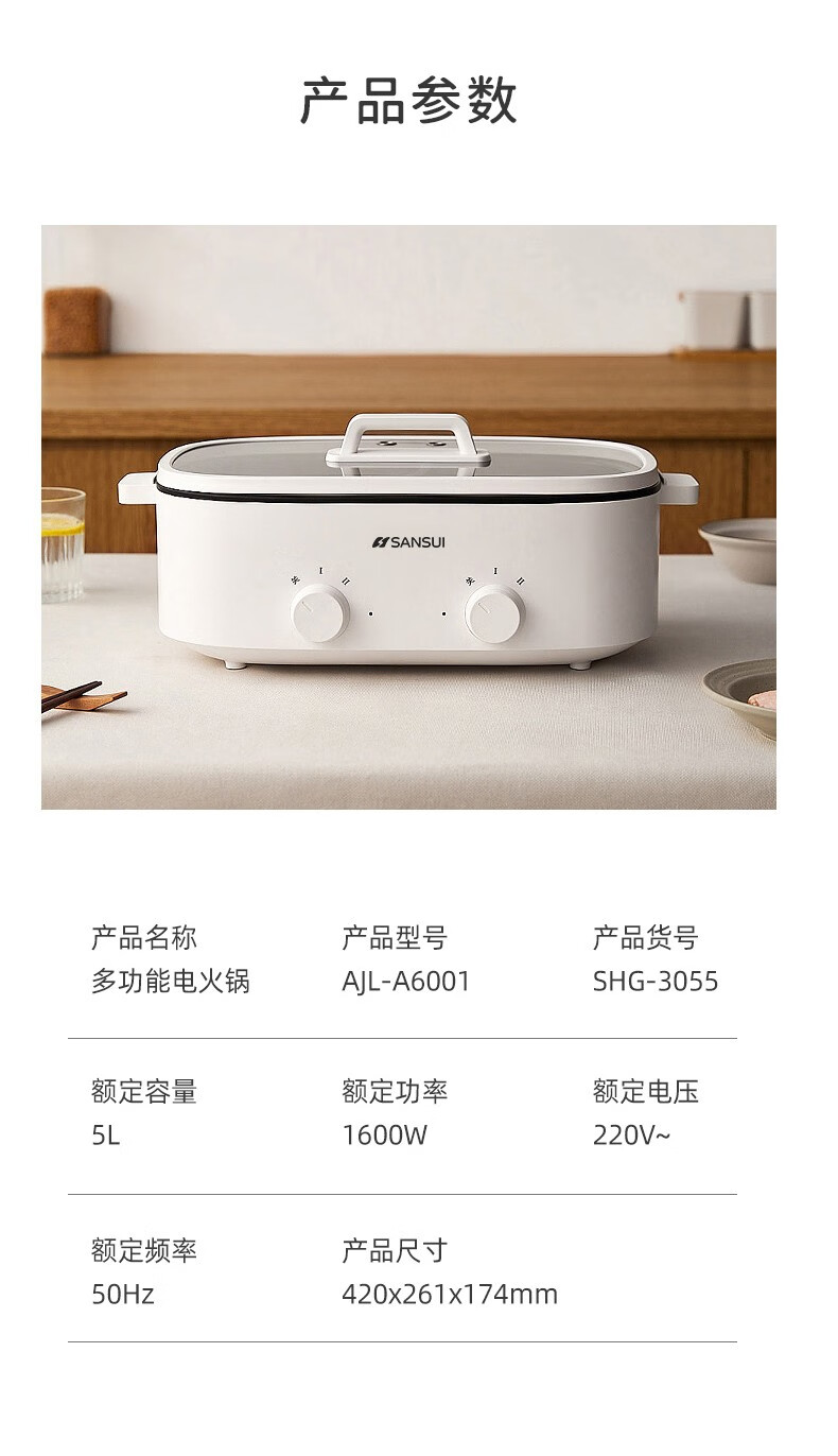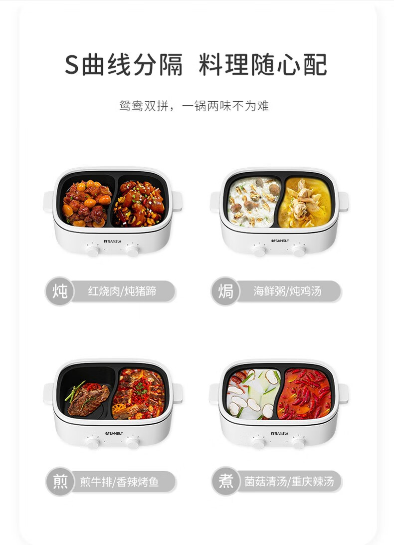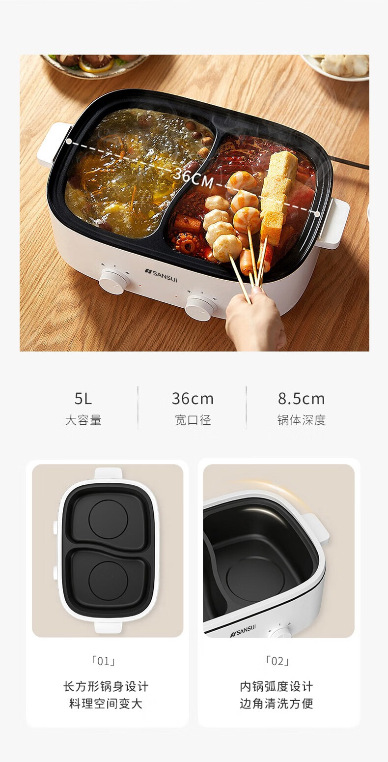 山水(SANSUI)5L多功能鸳鸯电火锅(双旋钮控温)SHG-3055
