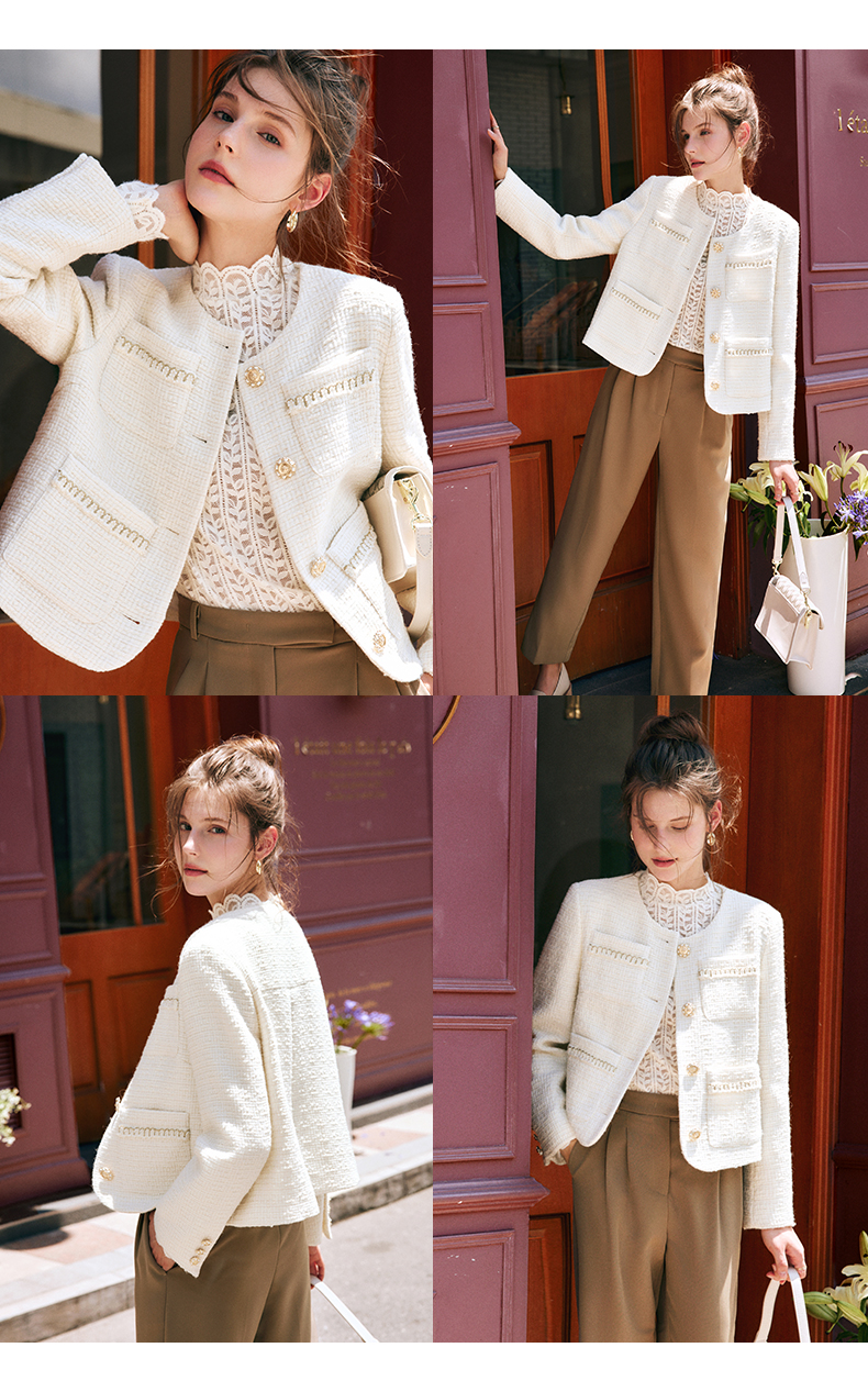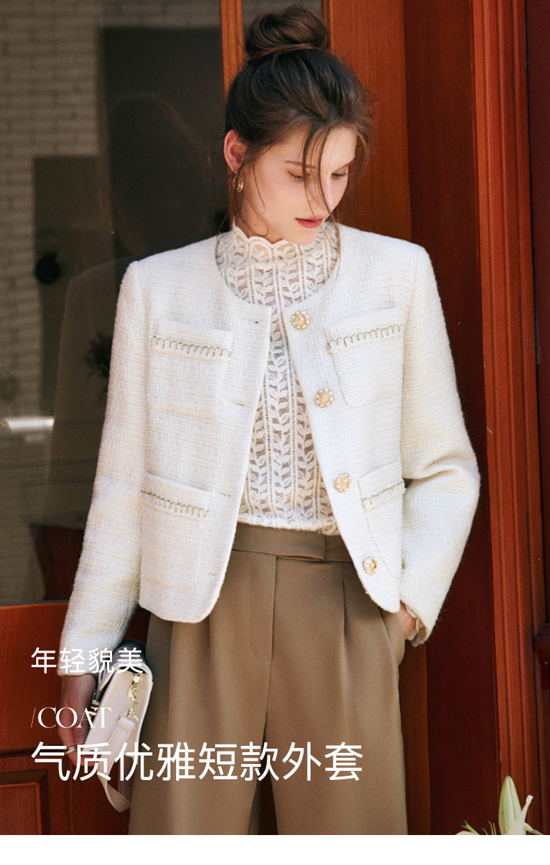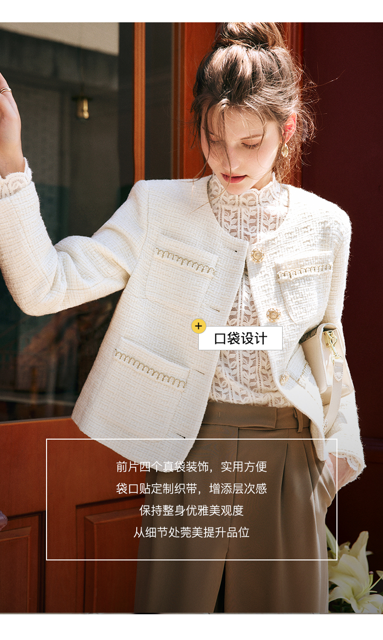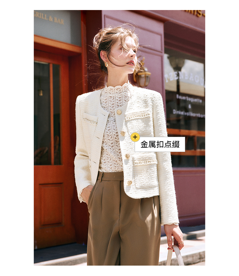 OLrain欧芮儿法式小香风短外套女秋季2022新款宽松气质粗花呢上衣